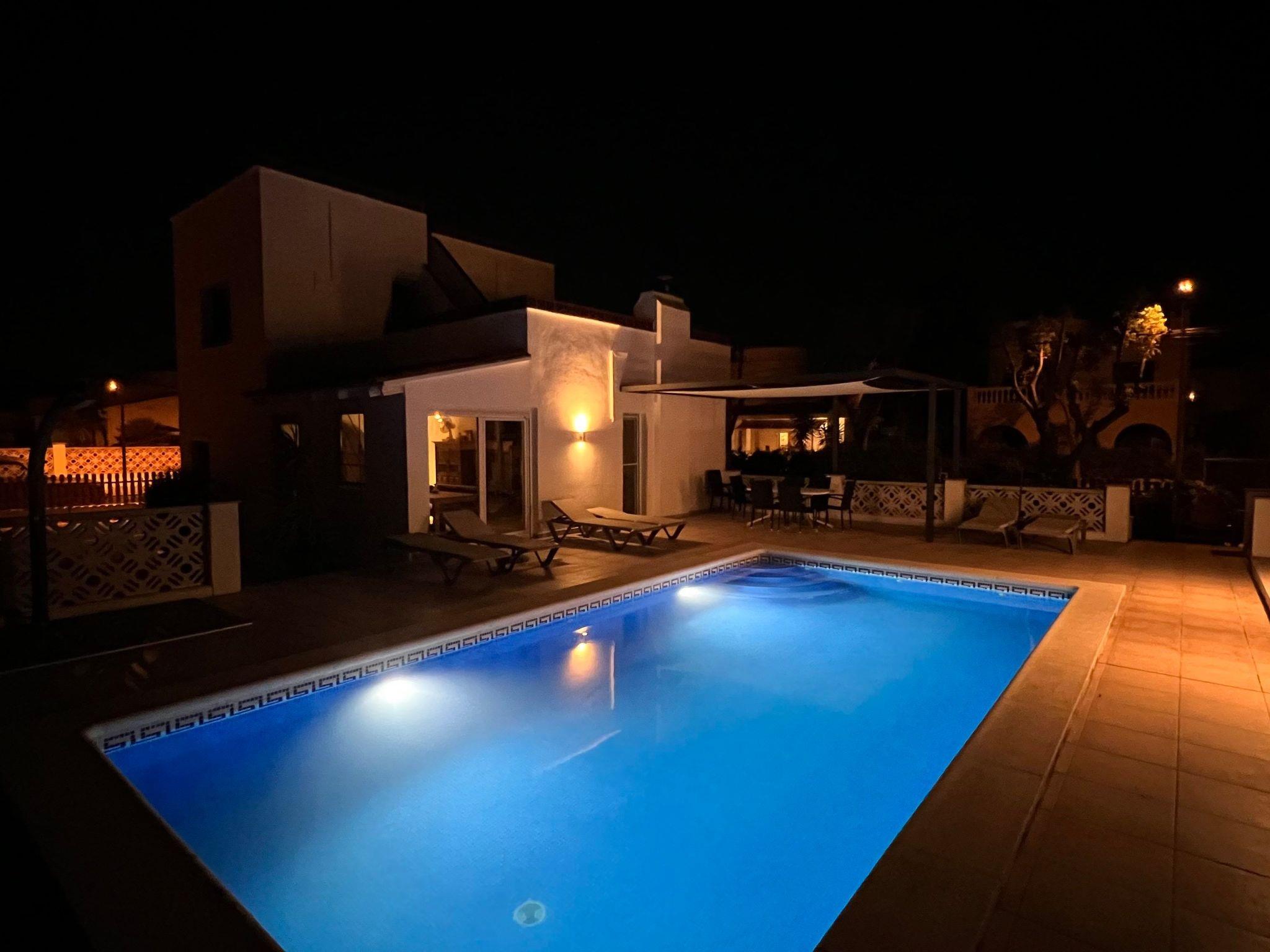 Our house got a new dress in 2023 and now shines again in new splendour. It has 3 bedrooms, a large open kitchen, living room, dining room, 2 bathrooms with shower and toilet, a large pool (8×4m 110-170cm deep), several large terraces, WLAN, LED smart TV, music system with Bluetooth and a Samsung tablet and is located in a quiet, central location, only a few minutes walk from the beach or boulevard. The kitchen leaves nothing to be desired (2 refrigerators with freezer compartment, coffee machine (filter coffee), Nespresso machine, dishwasher, toaster, kettle, oven, ceramic hob and microwave), in the bathroom there is also a tumble dryer and a washing machine. All bedrooms, the living room and dining room are equipped with air conditioning and mosquito screens, and all rooms can be darkened with roller blinds.