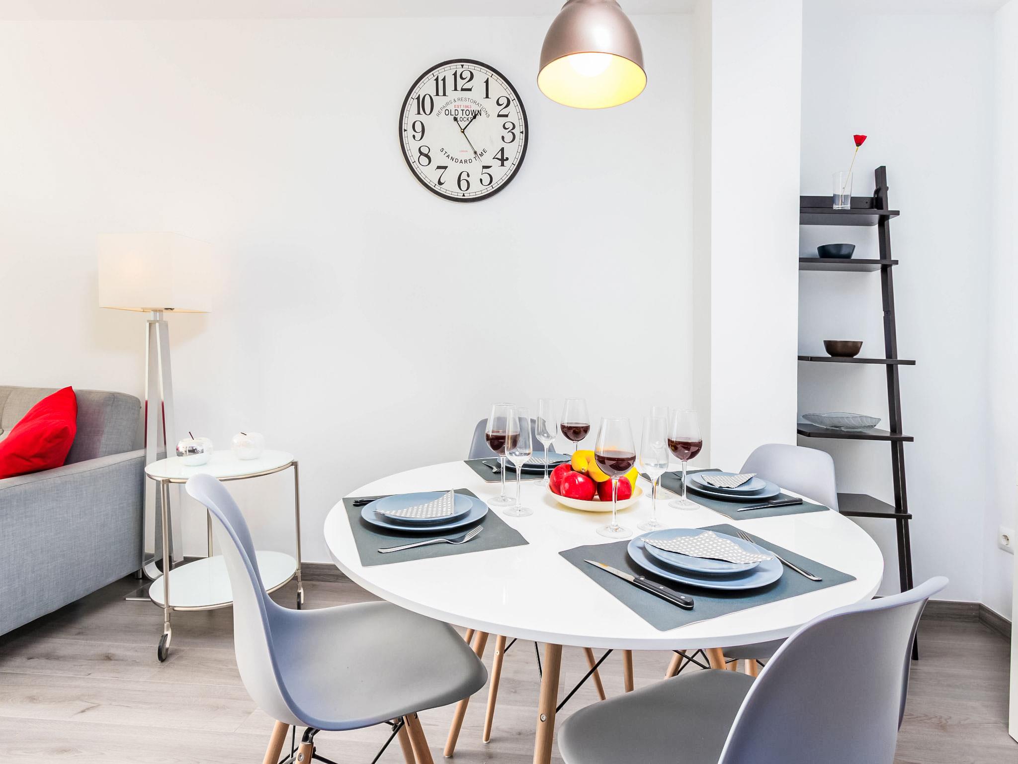 2-room apartment 37 m2 on 2nd floor. Bright, fully renovated in 2017, practical and modern furnishings: living/dining room with 1 double sofabed, dining table, kitchen corner and satellite TV (flat screen). 1 room with 1 french bed. Kitchenette (2 ceramic glass hob hotplates, microwave). Shower/WC. No heating option. Beautiful view of the garden. Facilities: washing machine. Internet (WiFi, free). Please note: TV only FR. HUTG026472 // Reg. Nr.: ESFCTU000017020000179070000000000000000000HUTG0264725