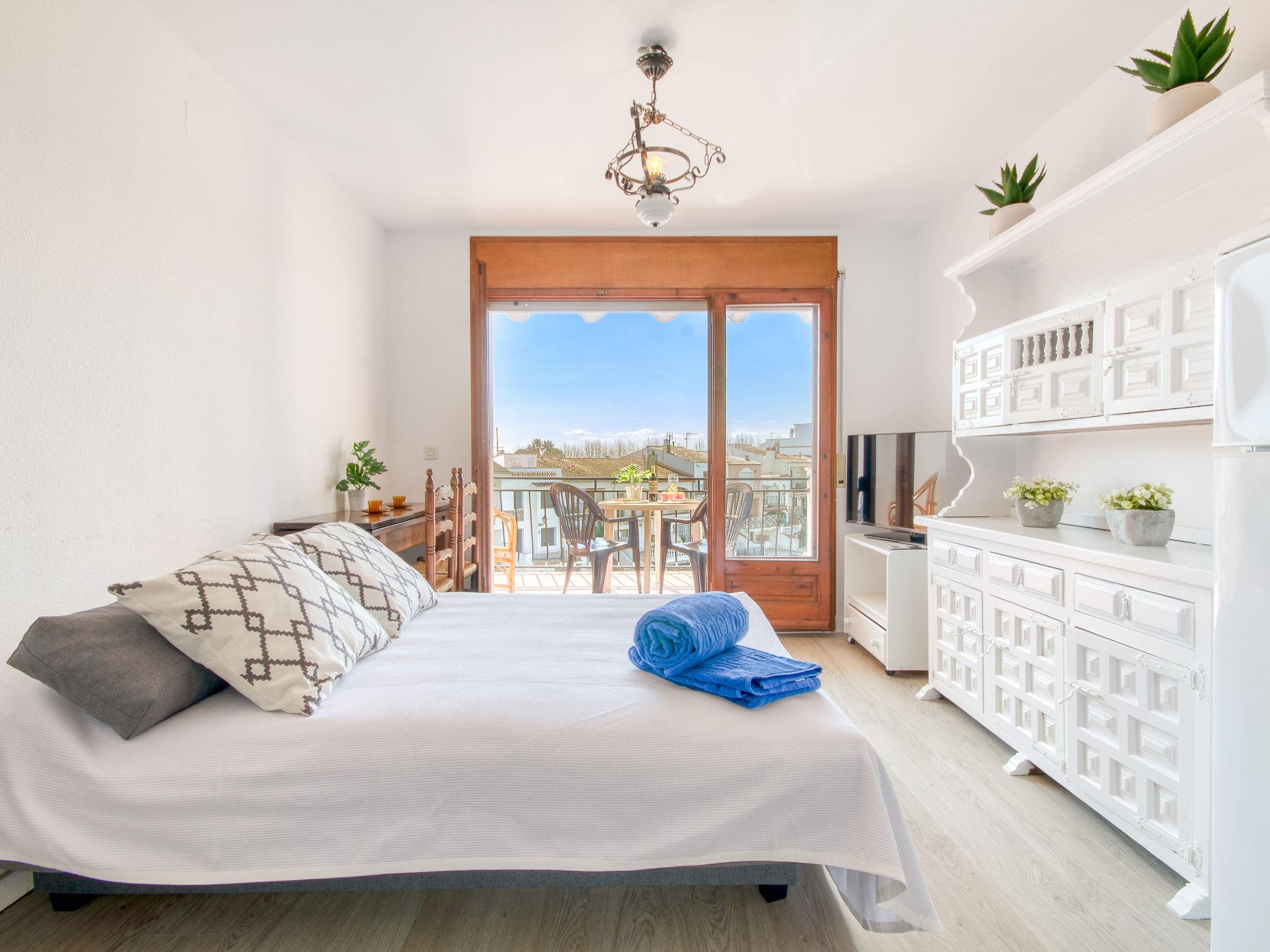 1-room studio 25 m2. Bright, practical and comfortable furnishings: living/sleeping room with 1 double sofabed (140 cm, length 190 cm), dining table, satellite TV, digital TV and flat screen. Exit to the terrace. Kitchenette (2 gas rings, toaster, microwave, electric coffee machine). Shower/WC. Terrace 10 m2. Terrace furniture. Very beautiful view of the canal. Facilities: washing machine, iron, hair dryer. Please note: non-smokers only. Maximum 1 small pet/ dog allowed. TV only ES, FR, DE. No lift. This apartment does NOT have WIFI. HUTG-013940 // Reg. Nr.: ESFCTU00001702000014168800000000000000000HUTG-0139408