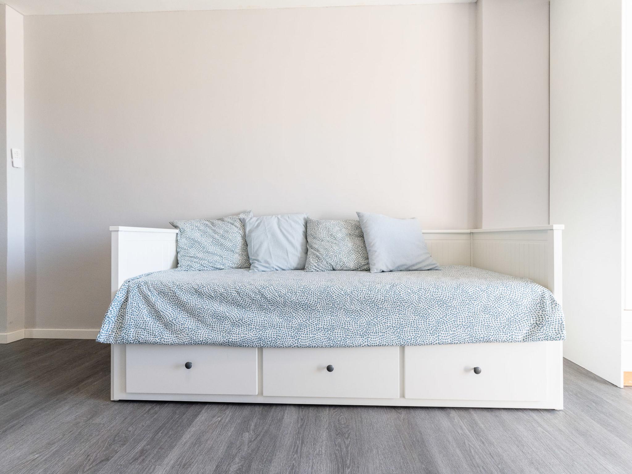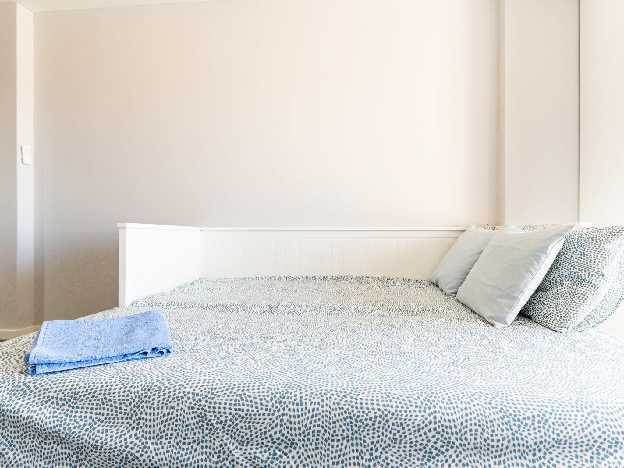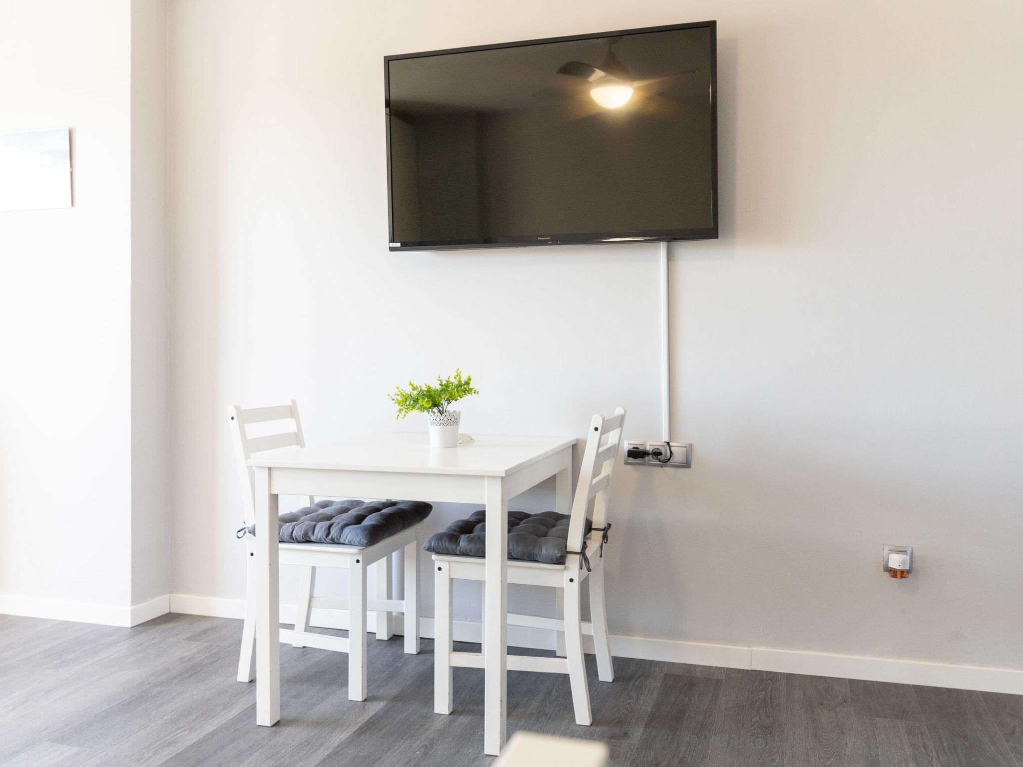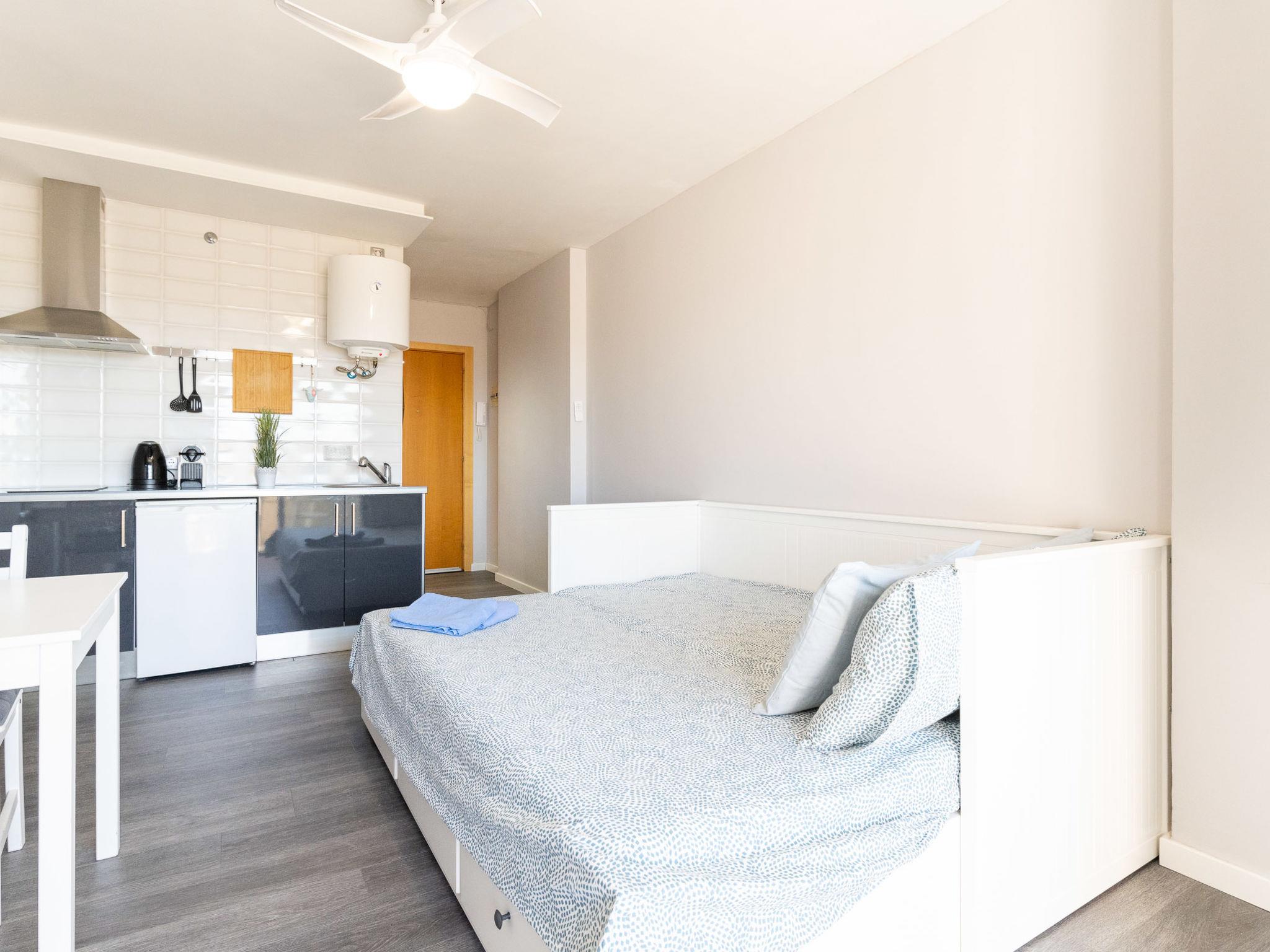 1-room studio 25 m2 on 11st floor. Comfortable furnishings: living/sleeping room with 1 double sofabed (2 x 90 cm, length 190 cm), digital TV, flat screen, air conditioning, fan and forced-air heating. Exit to the balcony, west facing position. Kitchenette (2 ceramic glass hob hotplates, kettle, microwave, electric coffee machine). Shower/WC. Small balcony. Balcony furniture. Facilities: iron, hair dryer. Internet (WiFi, free). Please note: maximum 1 pet/ dog allowed. TV only ES. HUTG-063433 // Reg. Nr.: ESFCTU00001702000019266600000000000000000HUTG-0634332