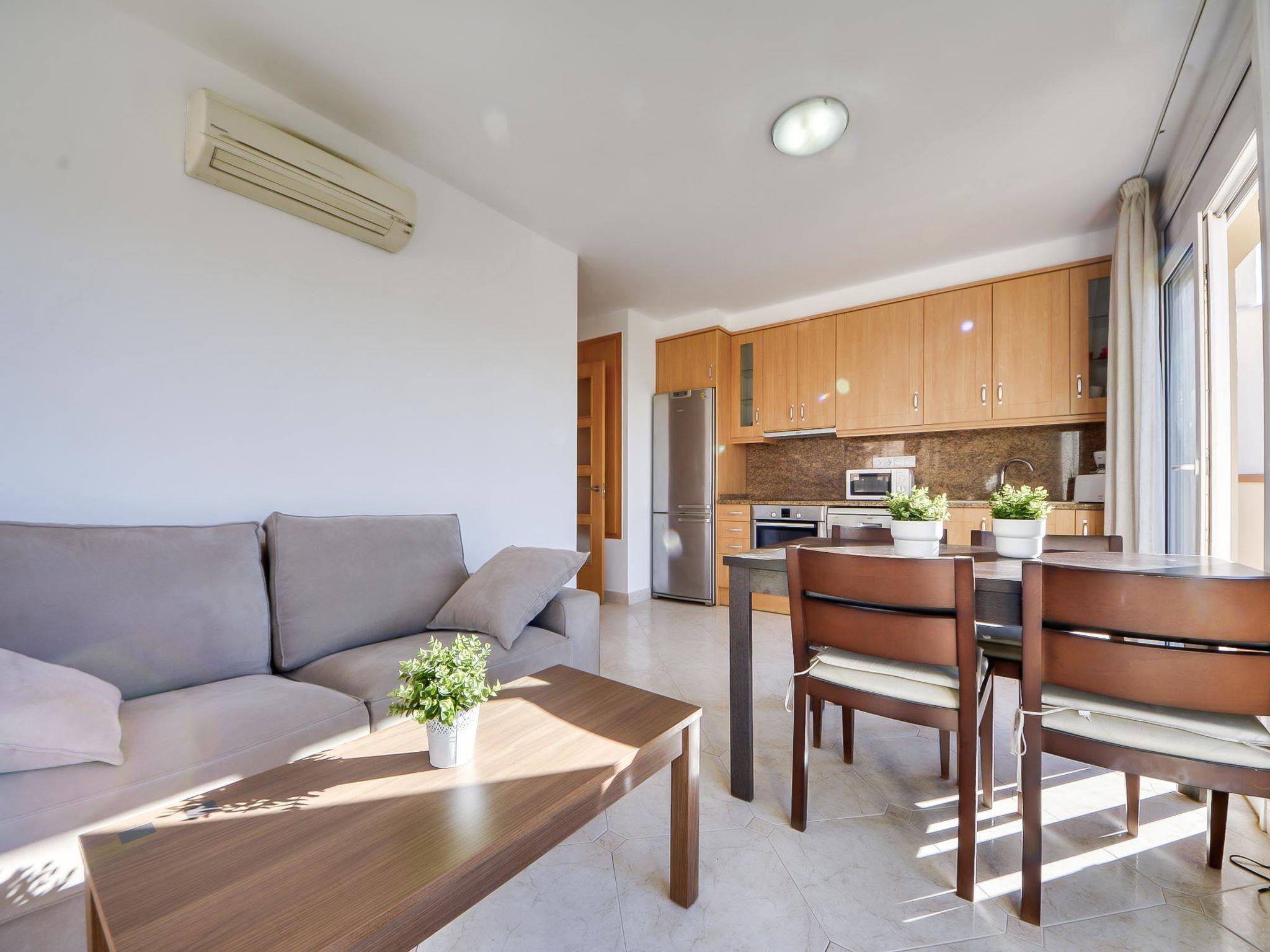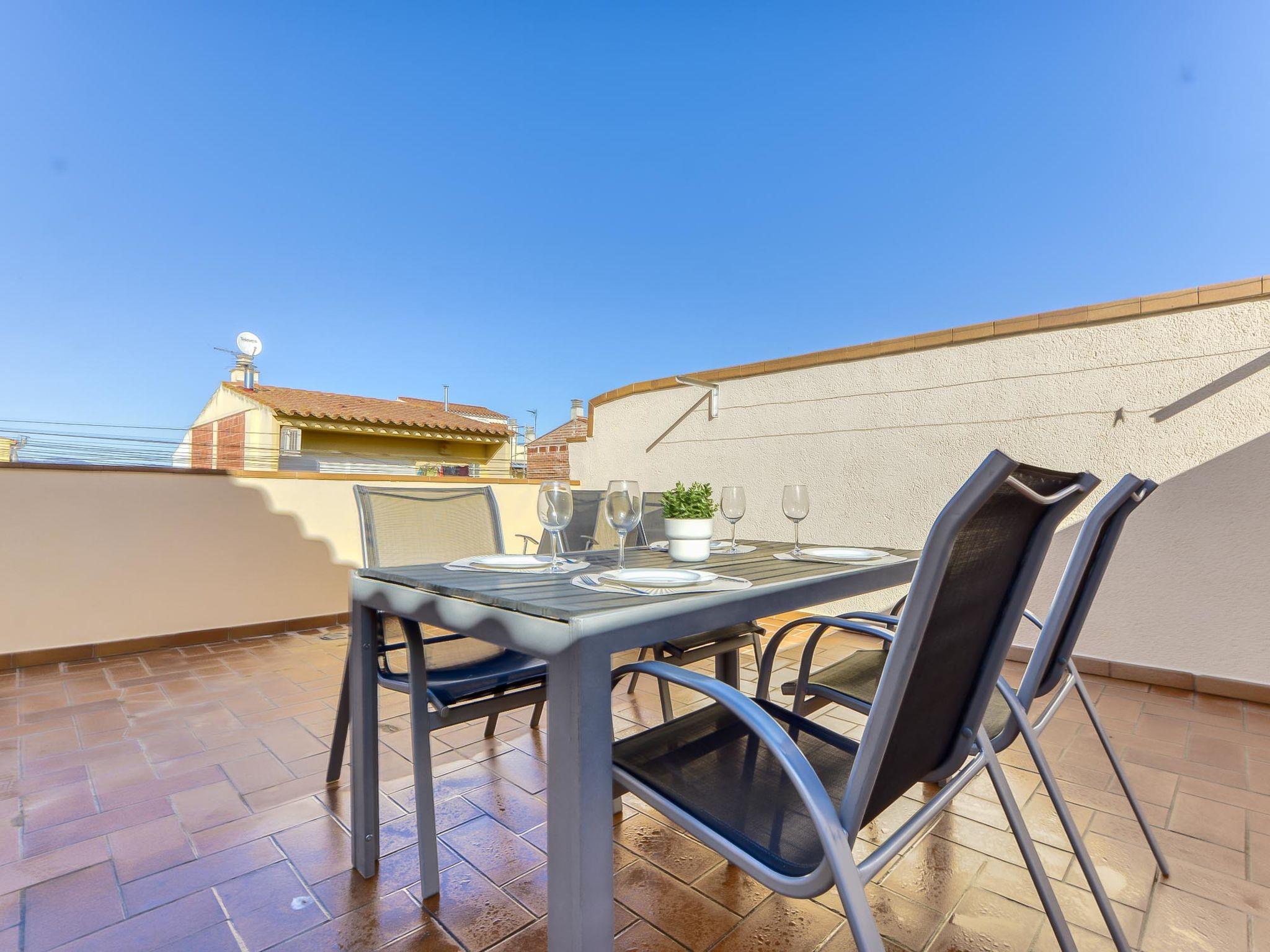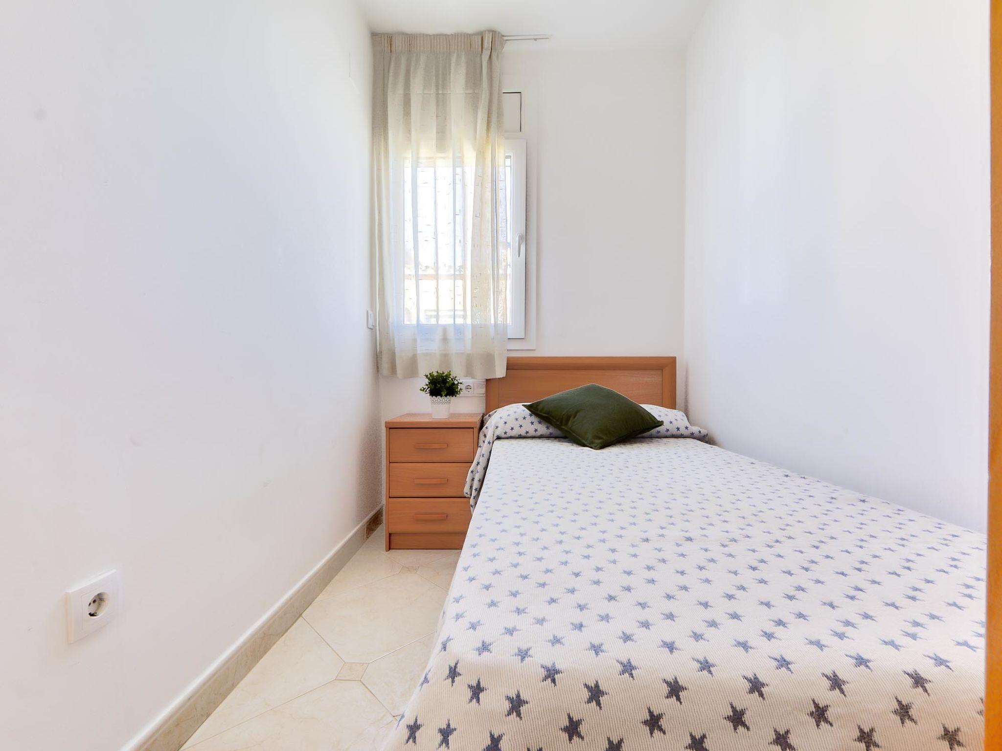 3-room terraced house 60 m2. Spacious and bright, comfortable and modern furnishings: upper floor: living/dining room with 1 bed, digital TV, flat screen, air conditioning and forced-air heating. 1 room with 1 french bed. 1 room with 1 bed (90 cm). Open kitchen (oven, dishwasher, 3 ceramic glass hob hotplates, microwave). Shower/WC. Terrace 35 m2. Terrace furniture. Facilities: washing machine. Internet (WiFi, free). Parking (fenced). Please note: maximum 1 pet/ dog allowed. TV only ES. HUTG010846 // Reg. Nr.: ESFCTU000017020000124148000000000000000000HUTG0108469