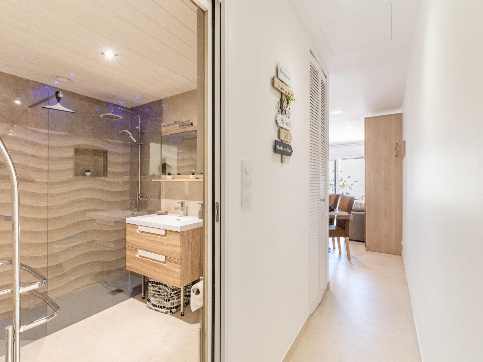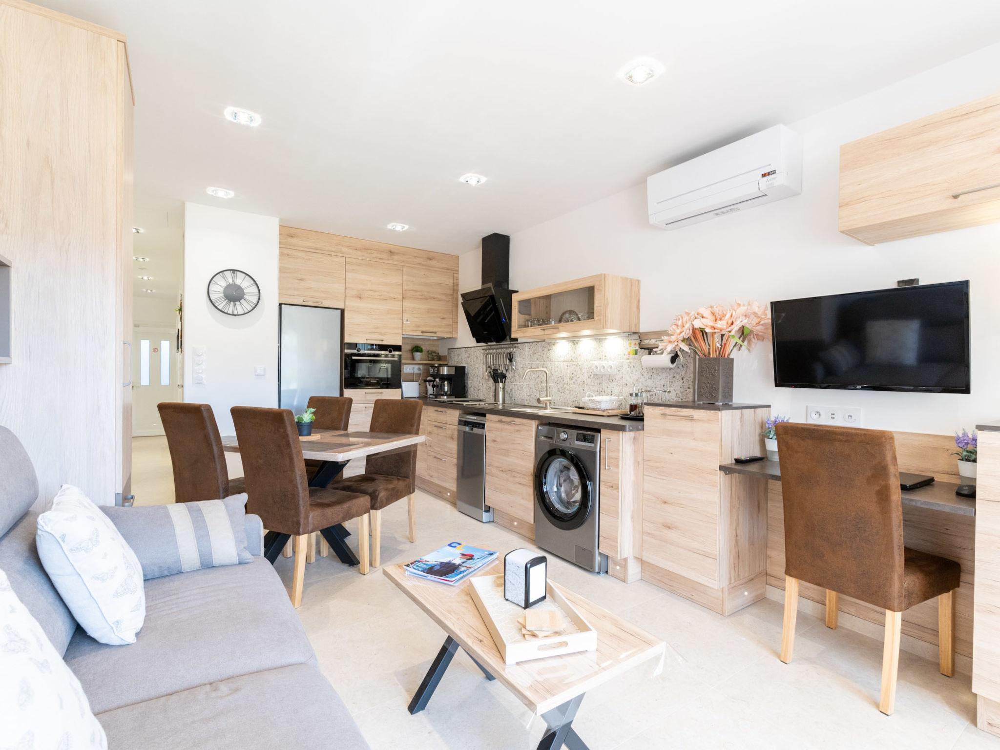 2-room apartment 45 m2, on the ground floor, south facing position. Bright, renovated in 2023, comfortable and cosy furnishings: living/dining room with 1 double sofabed (140 cm, length 190 cm), kitchen corner, satellite TV, flat screen, air conditioning and forced-air heating. Exit to the patio, to the swimming pool, south facing position. 1 room with 1 french bed (150 cm, length 190 cm), air conditioning, forced-air heating and electric shutters. Open kitchen (oven, dishwasher, 2 induction hot plates, toaster, kettle, microwave, freezer, grill, electric coffee machine). Shower/WC. Natural stone floors. Patio 25 m2. Terrace furniture, electric barbecue, deck chairs, sitting area. Very beautiful view of the lake, the swimming pool and the garden. Facilities: washing machine, iron, children's high chair, baby cot, hair dryer. Internet (WiFi, free). Parking space n 14. Please note: non-smokers only. TV only FR. No lift. HUTG053847