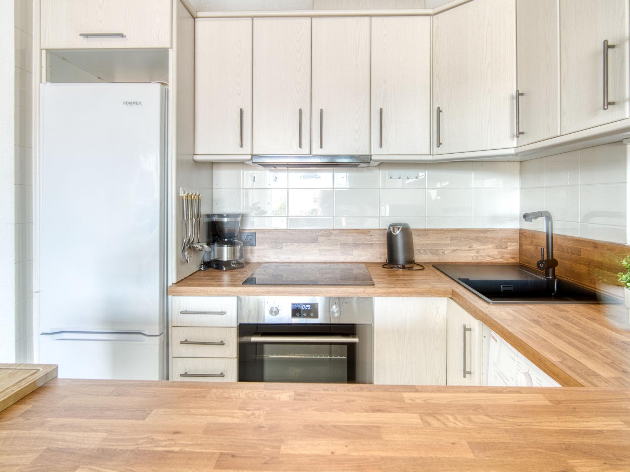 2-room apartment 40 m2 on 3rd floor. Practical and comfortable furnishings: living/dining room with 1 double sofabed (160 cm, length 190 cm), satellite TV and digital TV (flat screen), air conditioning and forced-air heating. Exit to the balcony. 1 room with 1 french bed (140 cm, length 190 cm), fan. Kitchen (oven, 4 ceramic glass hob hotplates, toaster, kettle, microwave, freezer, electric coffee machine). Bath/WC. Terrace 7 m2. Terrace furniture. Very beautiful panoramic view of the lake. Facilities: washing machine, iron, hair dryer. Please note: TV only FR, DE, ES. No lift. HUTG-069704-12 // Reg. Nr.: ESFCTU000017020000199436000000000000000000HUTG0697040