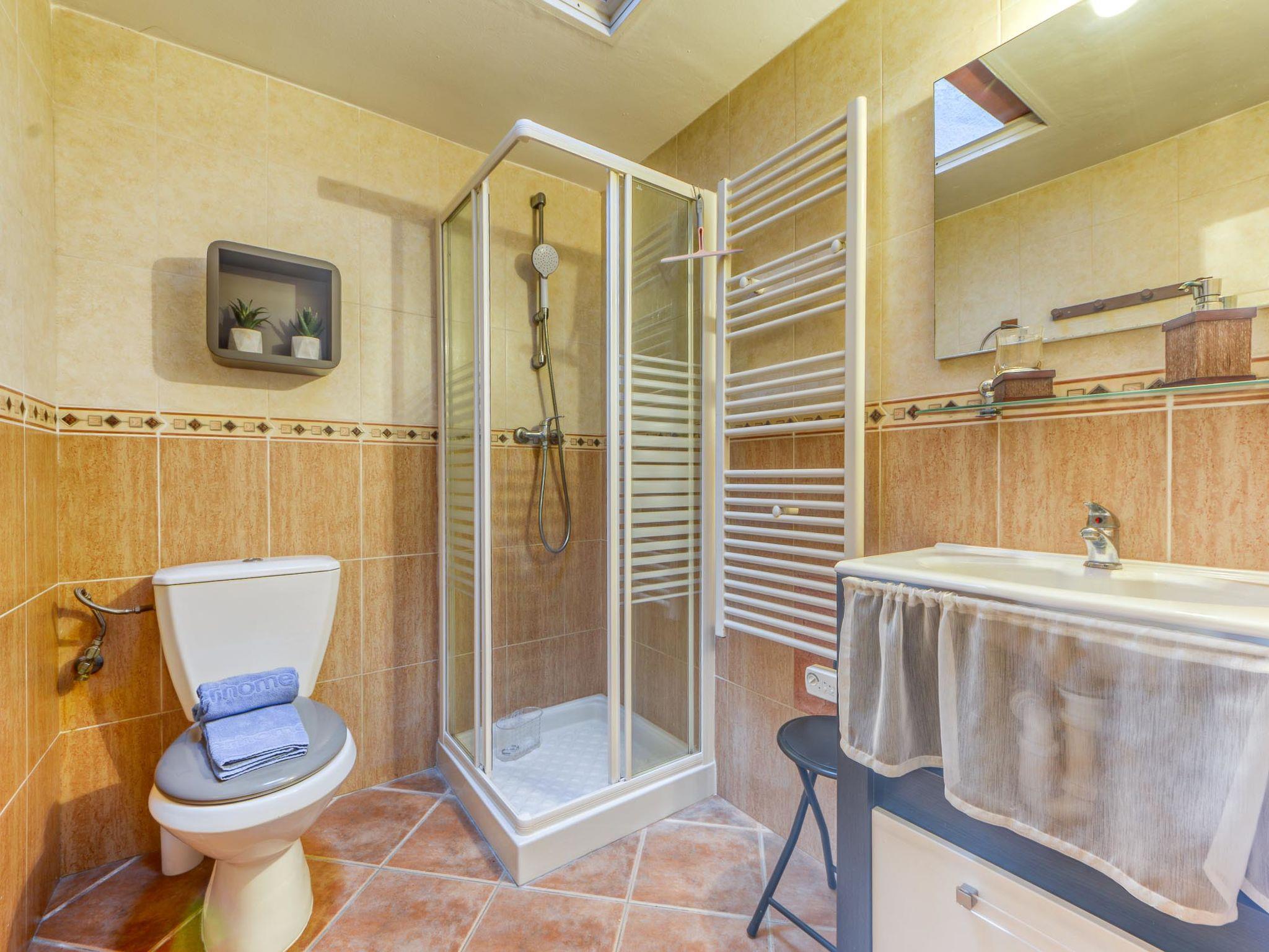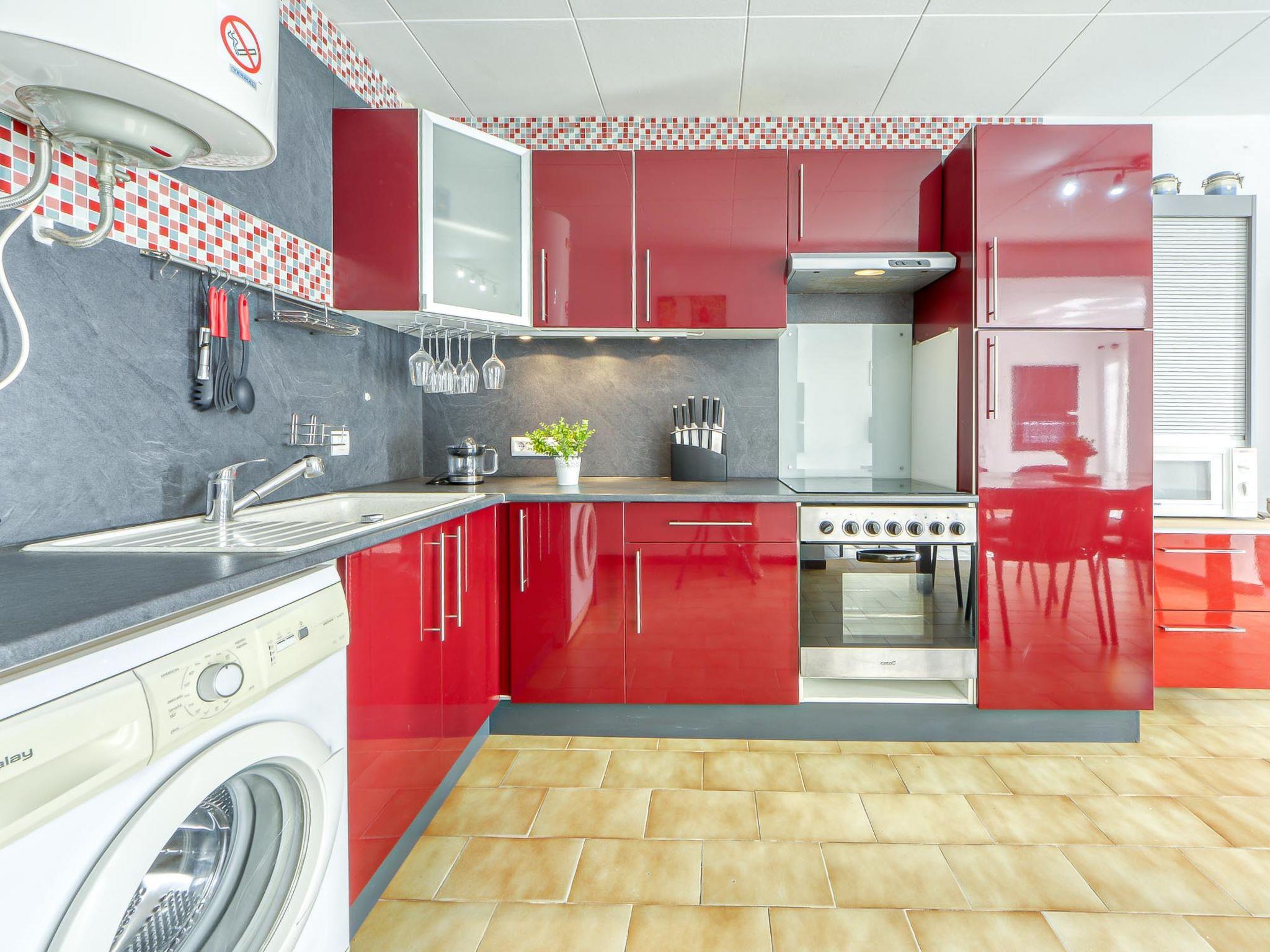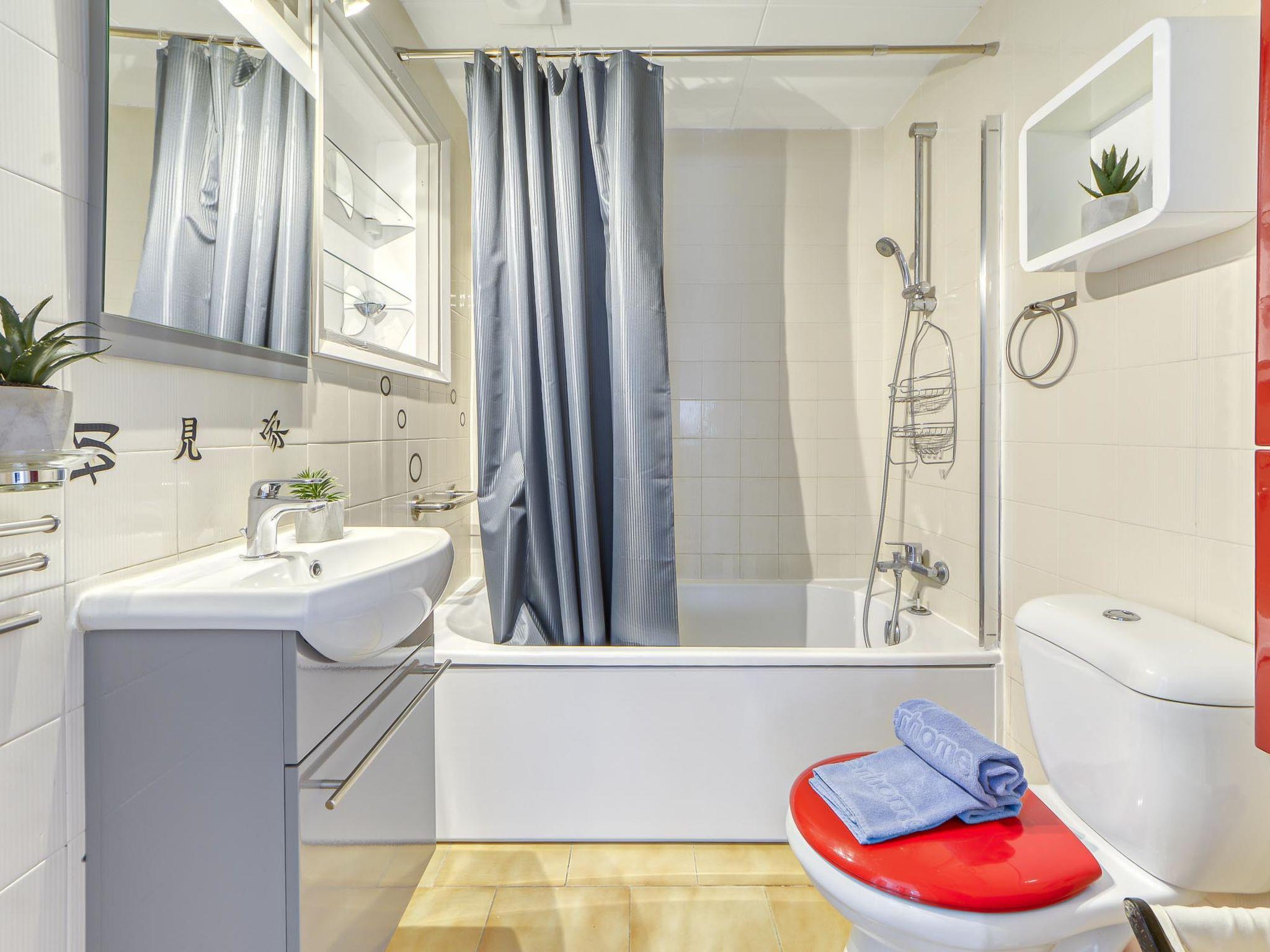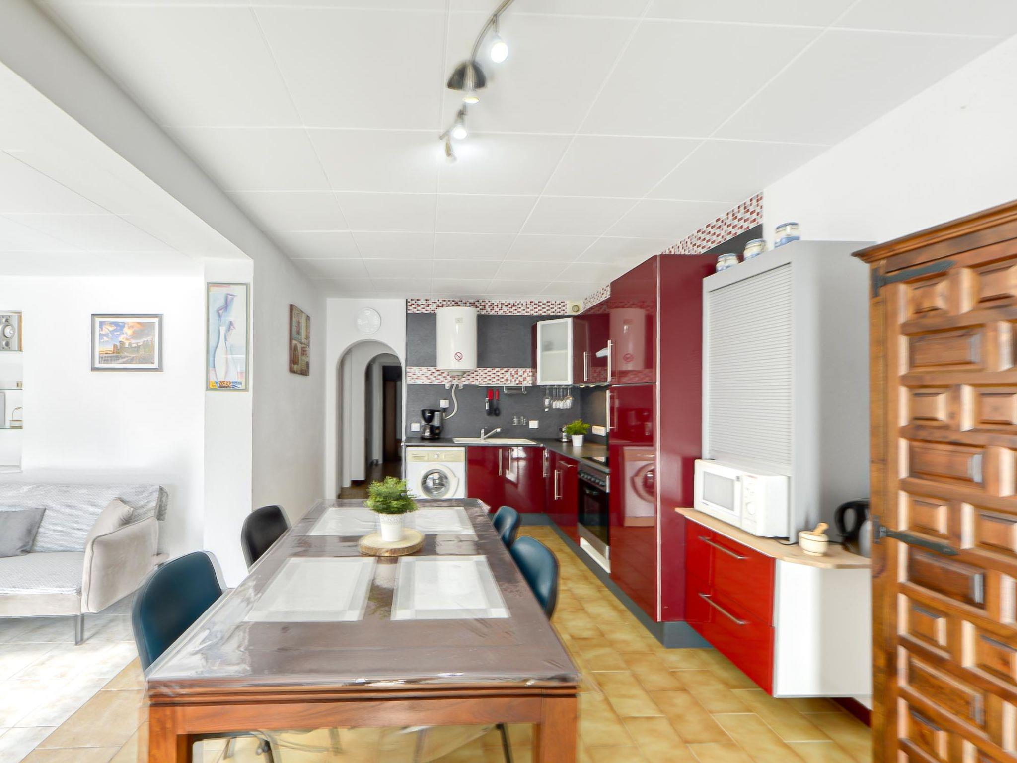3-room house 90 m2. Spacious and bright, practical furnishings: living/dining room with satellite TV (flat screen). Exit to the terrace. 1 large room with 1 french bed (150 cm, length 190 cm), shower/WC, air conditioning and forced-air heating. 1 room with 1 french bed (150 cm, length 190 cm), air conditioning and forced-air heating. Open kitchen (oven, dishwasher, 4 ceramic glass hob hotplates, toaster, kettle, microwave, freezer, electric coffee machine) with dining table. Bath/WC. Large terrace 45 m2. Terrace furniture. Facilities: washing machine, iron, baby cot, hair dryer. Internet (WiFi, free). Parking (2 cars). Please note: non-smoking house. Maximum 1 small pet/ dog allowed. TV only FR, DE, ES. HUTG-073938 // Reg. Nr.: ESFCTU00001702000016017700000000000000HUTG-073938-611