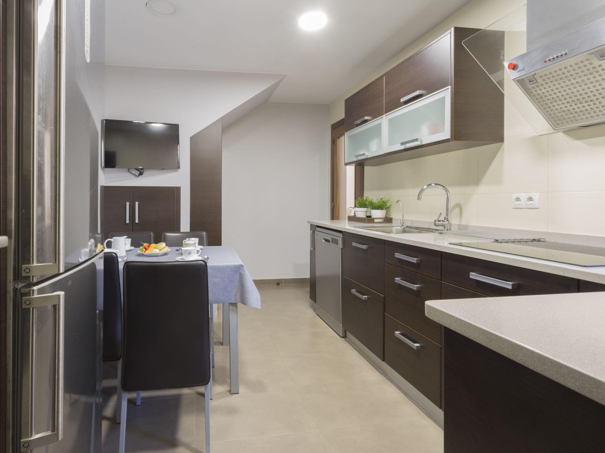 4-room terraced house 88 m2 on 2 levels. Comfortable and cosy furnishings: living/dining room with dining table, digital TV, flat screen, gas heating, air conditioning and forced-air heating. Exit to the terrace. Kitchen (dishwasher, 3 induction hot plates, microwave, freezer, electric coffee machine). Shower/WC. Upper floor: 1 room with 1 french bed (135 cm, length 190 cm). 1 children's room with 1 pull-out bed (2 pers. 2 x 90 cm, length 190 cm). 1 children's room with 2 beds (90 cm, length 190 cm). Bath/bidet/WC. Large terrace 20 m2. Terrace furniture, barbecue. Facilities: washing machine, iron, baby cot, hair dryer. Internet (WiFi, free). Please note: suitable for families. TV only ES. HUTG051703
