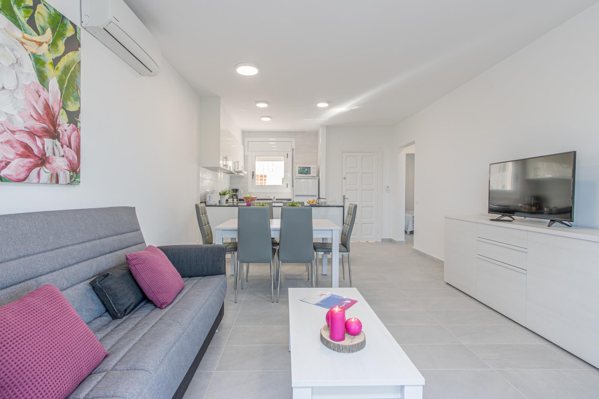 The lejlighed i Empuriabrava har 2 soveværelse(r) og kapacitet til 5 person(er). Bolig på 77 m² komfortabel, ligger i første linje til strand. Er beliggende 50 m fra stranden "Empuriabrava", 200 m fra supermarkedet, 10 km fra vandland, 16 km fra golfbanen "Peralada", 20 km fra togstationen "Ave/Tgv Figueres", 65 km fra lufthavnen "Girona" og er beliggende i en ideel for familier område og tæt ved havet. Tilbyder have, terrassemøbler, indhegnet grund, terrasse, vaskemaskine, grill, strygejern, internet (wifi), altan, varmepumpe, aircondition i stuen og i nogle af soveværelserne, garage, TV, satellit (Sprog: Spansk, Tysk, Fransk). The amerikanske køkken, på keramiske kogeplader, med service og køleskab, mikroovn, ovn, fryser, opvaskemaskine, tallerkener/bestik, køkkenredskaber, kaffemaskine, brødrister og kedel.