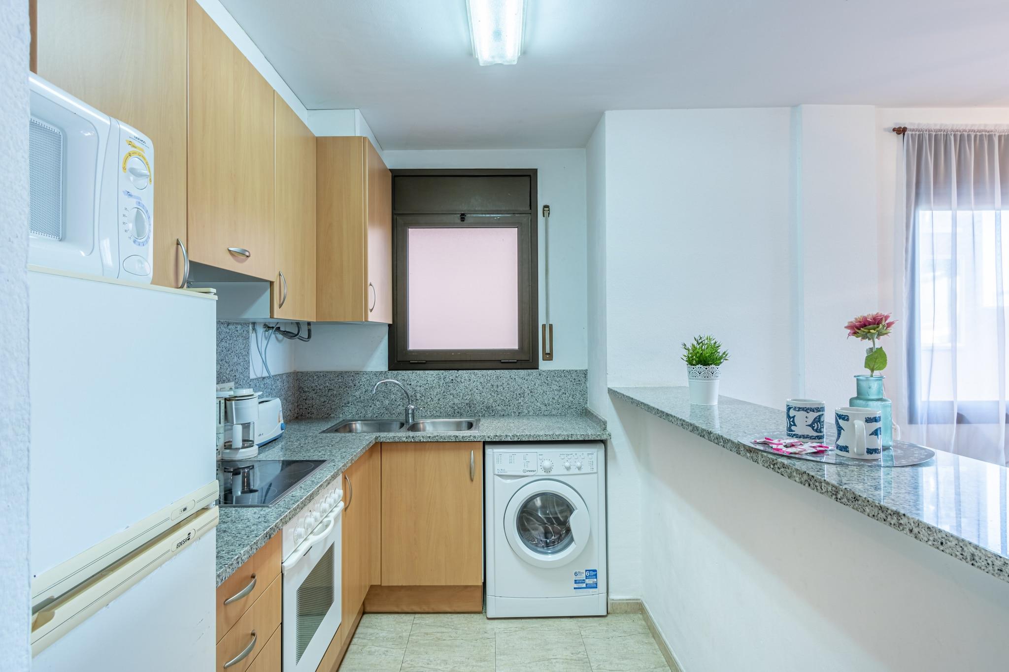 Denne komfortable lejlighed med 2 soveværelser i stueetagen i Empuriabrava tilbyder en afslappende strandferie for op til 6 gæster. Med 65 m² boligareal og direkte havudsigt ligger den kun 50 meter fra sandstranden og 150 meter fra et supermarked, hvilket gør den ideel for familier eller små grupper, der søger bekvemmelighed og kystcharme. Lejligheden ligger i et roligt, familievenligt område med nem adgang til lokale faciliteter. Indvendigt har lejligheden et soveværelse med dobbeltseng, et soveværelse med to enkeltsenge og en dobbelt sovesofa i opholdsstuen. Det åbne køkken er fuldt udstyret med keramisk kogeplade, ovn, mikrobølgeovn, opvaskemaskine, vaskemaskine, tørretumbler og kaffemaskine. Gæsterne kan nyde en privat terrasse med havemøbler, satellit-tv, Wi-Fi og aircondition i stuen og nogle soveværelser. Bygningen har også elevator og overdækket parkering (mod et ekstra gebyr). Komplekset tilbyder adgang til fire fælles pools i sommersæsonen (15. juni til 15. september) mod et ekstra gebyr. Kæledyr er velkomne efter anmodning, og lejligheden har gode forbindelser til nærliggende attraktioner såsom Peralada Golf (16 km), Figueres AVE/TGV-station (20 km) og Girona Lufthavn (65 km). Med sin uovertrufne beliggenhed ved stranden og praktiske faciliteter er denne lejlighed et godt valg til en afslappende ferie på Costa Brava.