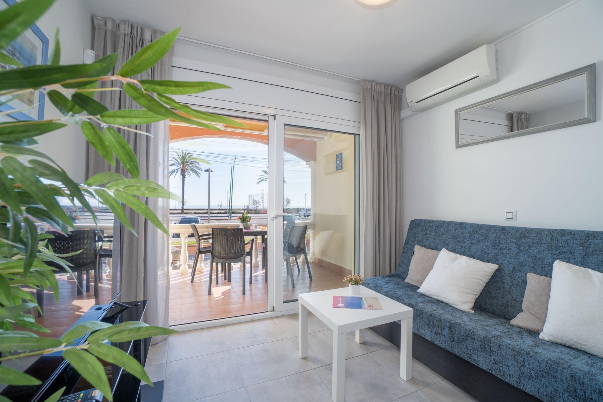 Denne moderne og komfortable lejlighed med 1 soveværelse i Empuriabrava er ideel til par eller små familier og har plads til op til 4 gæster. Med et boligareal på 40 m² og direkte havudsigt ligger den kun 50 meter fra sandstranden og 300 meter fra et supermarked. Lejligheden ligger i et fredeligt, familievenligt område og tilbyder en afslappende kystferie med alt, hvad der er nødvendigt for et behageligt ophold. Lejligheden har et soveværelse med dobbeltseng og en dobbelt sovesofa i opholdsstuen. Det åbne køkken er fuldt udstyret med keramisk kogeplade, mikrobølgeovn, køleskab, fryser, opvaskemaskine, kaffemaskine, brødrister og elkedel. Gæsterne kan nyde en privat terrasse med havemøbler, satellit-tv, Wi-Fi og aircondition i stuen. Der er også vaskemaskine og udendørs parkering for ekstra bekvemmelighed. Lejligheden har en perfekt beliggenhed for at udforske Costa Brava og ligger 16 km fra Peralada Golf, 20 km fra Figueres AVE/TGV-stationen og 65 km fra Girona Lufthavn. Kæledyr er velkomne efter anmodning, og ejendommen accepterer ikke ungdomsgrupper, hvilket sikrer en rolig og afslappende atmosfære. Med sin beliggenhed ved stranden og praktiske faciliteter er denne lejlighed et godt valg til en ferie ved havet i Empuriabrava.