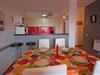 På 1. etage: (åbent køkken(kogeplade(glaskeramisk), elkedel, kaffemaskine, ovn, mikrobølgeovn, køle-fryseskab, ), stue / spisestue(dobbeltsovesofa, Fjernsyn, spisebord), soveværelse(enkeltseng, enkeltseng), soveværelse(dobbeltseng), badeværelse(badekar med bruser, håndvask)) Havemøbler, vaskemaskine, klimaanlæg, terrasse, swimmingpool(deles med andre gæster), strygejern, luft til luft-varmepumpe