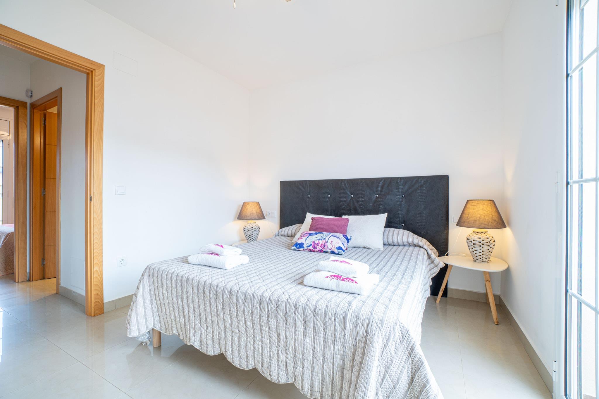 , , Stue(dobbeltsovesofa, Fjernsyn(parabol), spisebord), åbent køkken(kogeplade(glaskeramisk), elkedel, brødrister, kaffemaskine, ovn, mikrobølgeovn, opvaskemaskine , køle-fryseskab, Stavblender, ), soveværelse(dobbeltseng), soveværelse(dobbeltseng), badeværelse(bruser), toilet(toilet), Havemøbler, vaskemaskine, balkon, varme(central), klimaanlæg, terrasse, parkering, strygejern