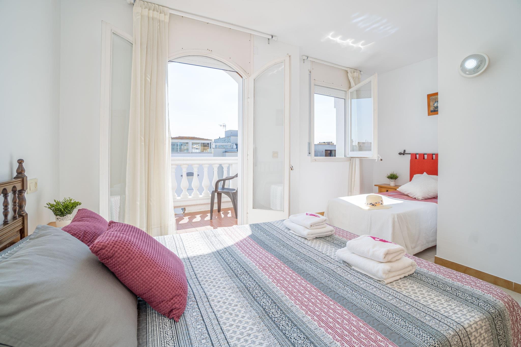 Denne rummelige lejlighed med 3 soveværelser i Empuriabrava tilbyder 84 m² boligareal og har plads til op til 7 gæster. Beliggende kun 400 meter fra sandstranden og 1 km fra et supermarked, er den ideel til familier eller grupper, der søger en naturskøn og komfortabel kystferie. Lejligheden strækker sig over to etager og har en privat terrasse og balkon med udsigt over havet og bjergene. Det åbne køkken er fuldt udstyret med gaskomfur, ovn, mikrobølgeovn, vaskemaskine, kaffemaskine og alle nødvendige redskaber. Gæsterne kan nyde aircondition i stuen, satellit-tv, Wi-Fi og en hyggelig pejs. Lejligheden er kæledyrsvenlig efter anmodning og inkluderer havemøbler til udendørs afslapning. Lejligheden er bekvemt placeret i nærheden af Aquabrava Water Park (12 km), Peralada Golfbane (16 km), Figueres AVE/TGV station (20 km) og Girona Lufthavn (65 km) og er godt placeret til at udforske Costa Brava. Der kræves et refunderbart depositum, og valgfrie tjenester såsom sengelinned, håndklæder og slutrengøring er tilgængelige. Der tilbydes fleksibel indtjekning i lavsæsonen, og sen ankomst kan imødekommes via en sikker nøgleboks.