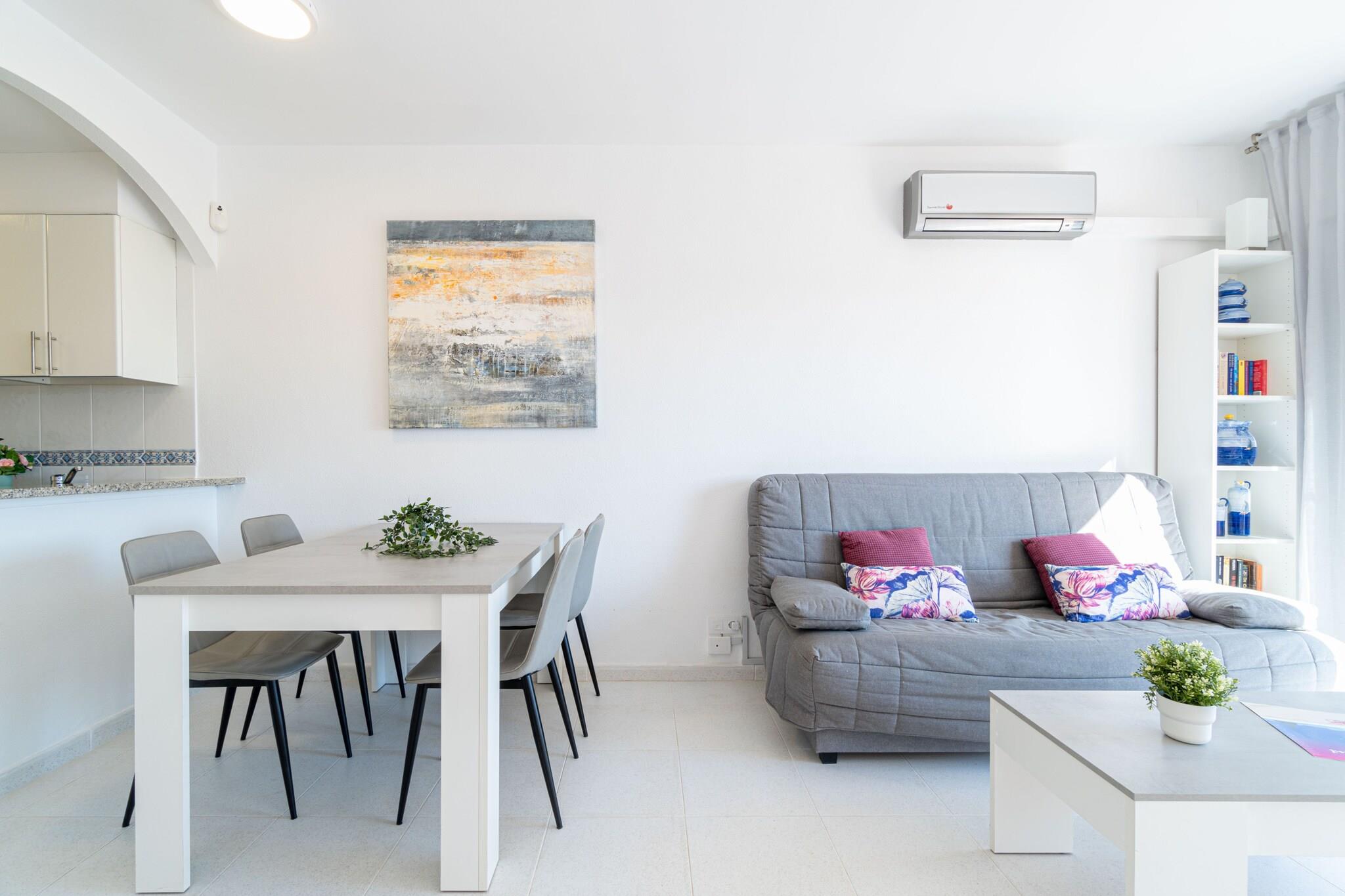 Denne 44 m² store lejlighed ved stranden i Empuriabrava tilbyder et hyggeligt og naturskønt ophold for op til 4 gæster. Den ligger i stueetagen og har et soveværelse med en dobbeltseng og en dobbelt sovesofa i opholdsstuen. Den private terrasse åbner direkte ud til havudsigt, hvilket gør det til et perfekt sted til morgenkaffe eller aftenafslapning, kun få skridt fra både sand- og klippestrande. Lejligheden har et fuldt udstyret åbent køkken med keramisk kogeplade, køleskab, mikrobølgeovn, ovn, opvaskemaskine, kaffemaskine, brødrister og vaskemaskine. Gæsterne kan nyde faciliteter såsom aircondition i stuen, Wi-Fi, satellit-tv og adgang til en fælles pool (mod et ekstra gebyr, med detaljer hos conciergen). Bygningen har også en elevator og havemøbler for ekstra komfort. Lejligheden er bekvemt placeret kun 150 meter fra et supermarked og tæt på restauranter og butikker, og er ideel for både strandelskere og opdagelsesrejsende. Attraktioner som Peralada Golfbane (16 km), Dalí-museet i Figueres (20 km) og Girona Lufthavn (65 km) er let tilgængelige. Med sin førsteklasses beliggenhed ved stranden og de nødvendige faciliteter er denne lejlighed et godt valg til en afslappende ferie ved kysten.