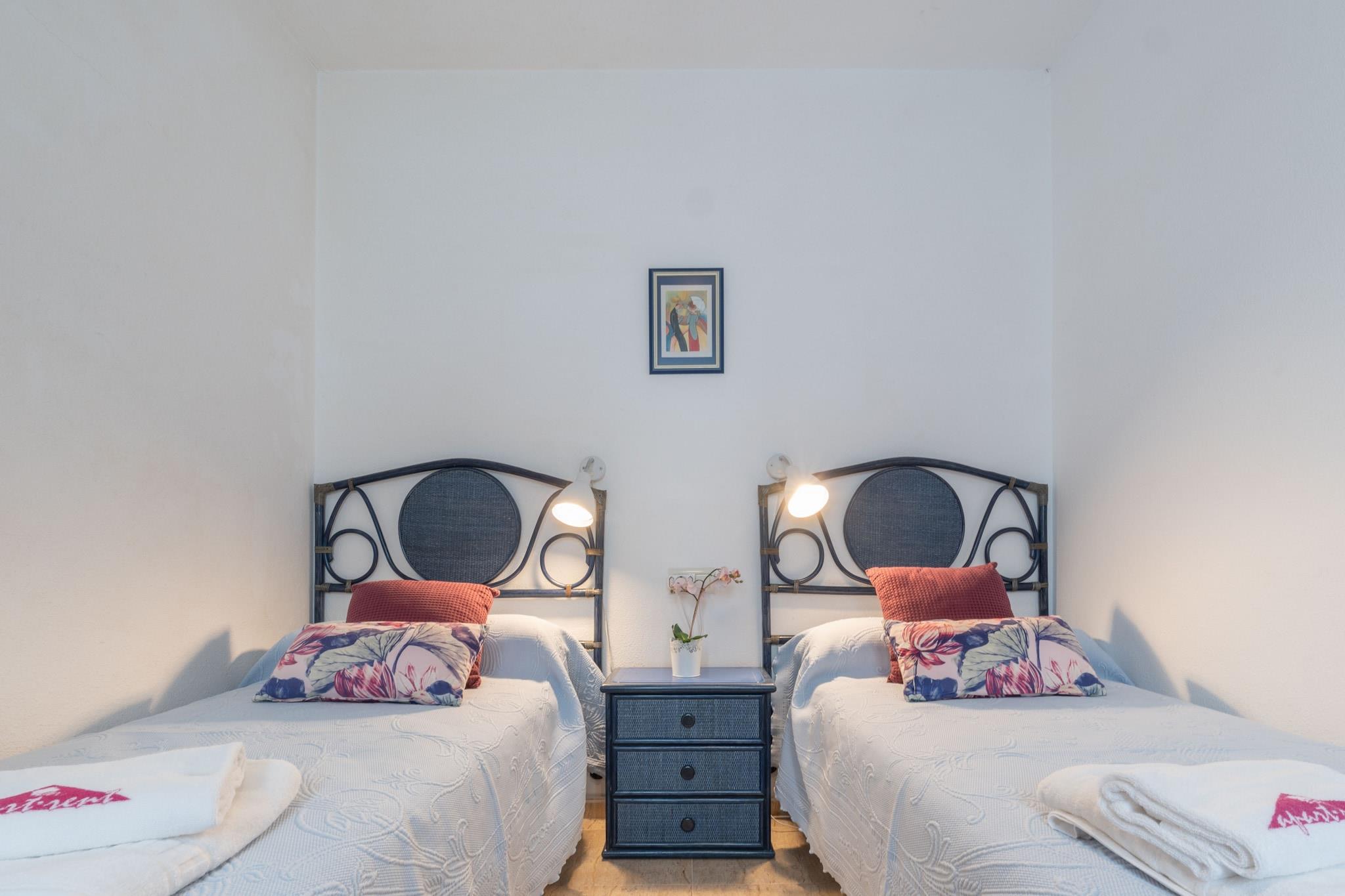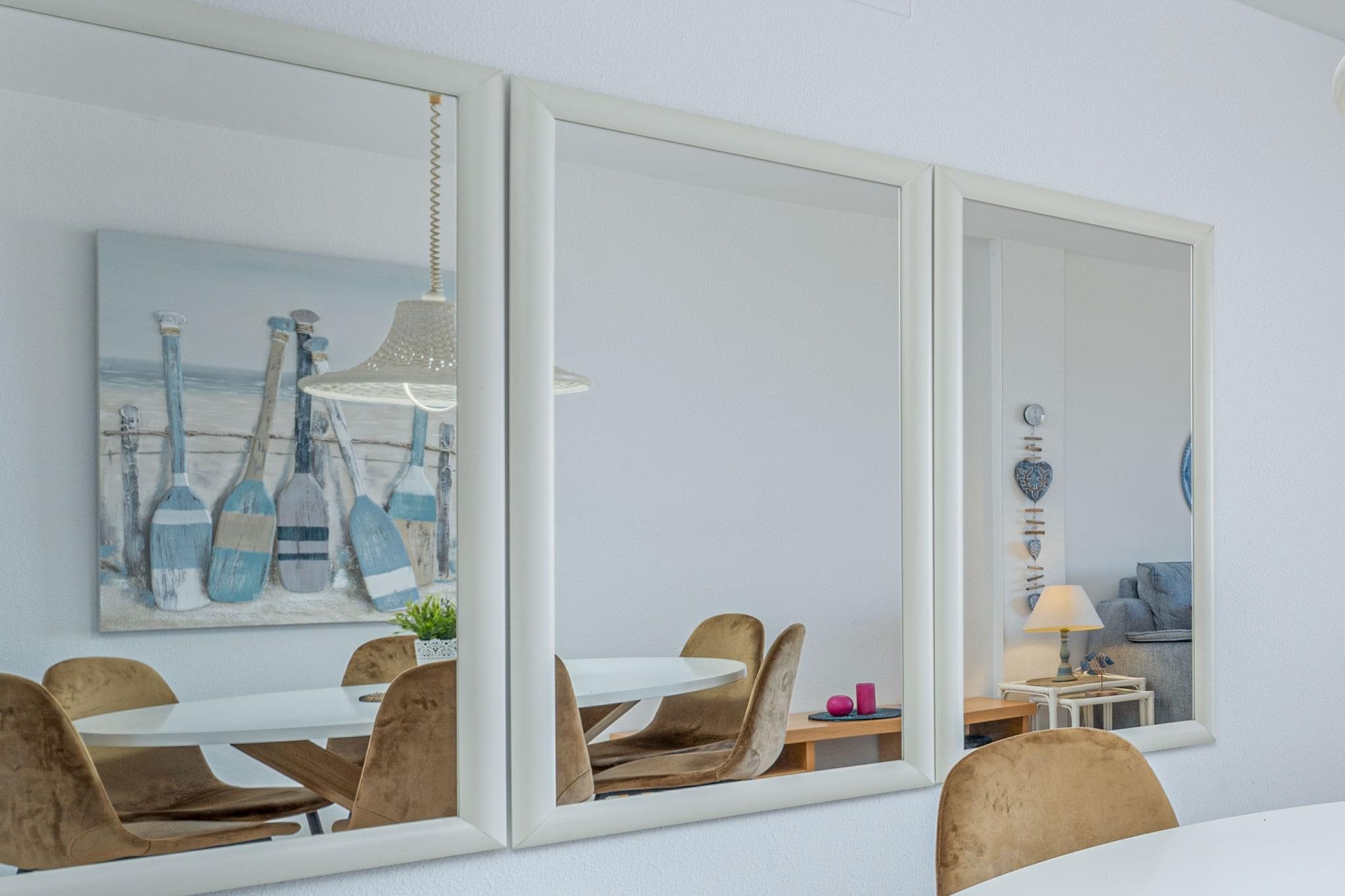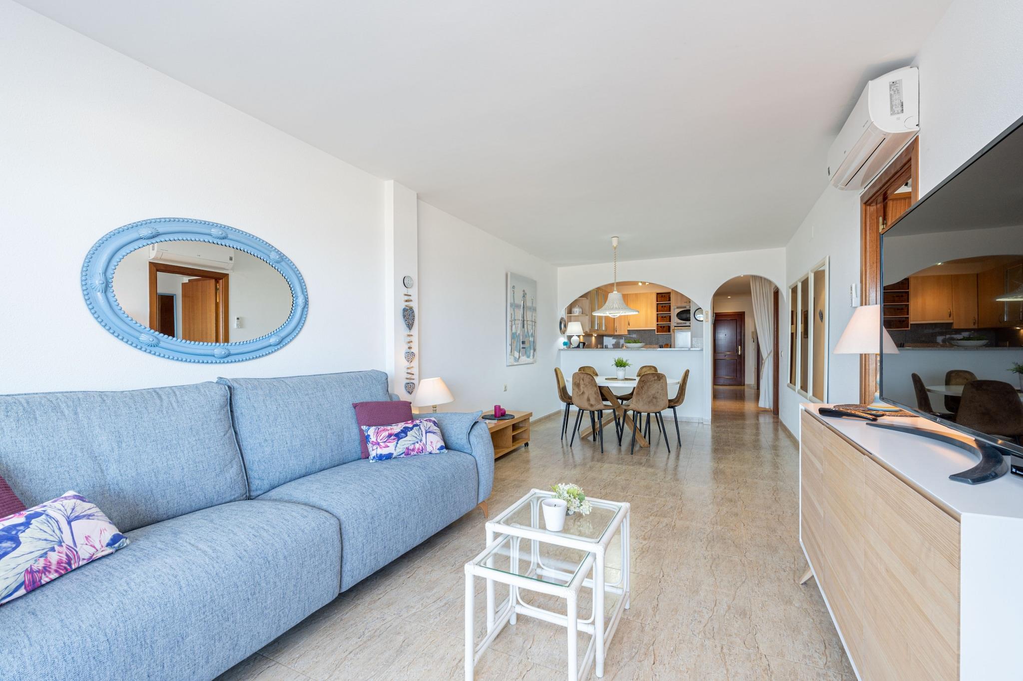 Denne rummelige og elegante lejlighed på 103 m² i Empuriabrava tilbyder et komfortabelt ophold for op til 6 gæster. Den ligger på 3. sal og har tre soveværelser - to med dobbeltsenge og et med to enkeltsenge - hvilket gør den ideel til familier eller grupper. Lejlighedens højdepunkt er dens 15 m² store terrasse med fantastisk havudsigt, perfekt til at nyde måltider eller slappe af ved kysten. Det åbne køkken er fuldt udstyret med keramisk kogeplade, køleskab, mikrobølgeovn, ovn, opvaskemaskine, kaffemaskine, brødrister og vaskemaskine. Gæsterne kan nyde moderne bekvemmeligheder såsom Wi-Fi, satellit-tv, aircondition i stuen og nogle soveværelser samt varmepumpe. Bygningen har elevator, og lejligheden har overdækket parkering i samme bygning. Der er også en fælles pool til rådighed for gæsterne. Lejligheden ligger kun 50 meter fra sandstranden og tæt på restauranter, butikker og et supermarked og er ideelt placeret til en afslappende ferie ved havet. Lokale attraktioner såsom Peralada Golfbane (16 km), Dalí-museet i Figueres (20 km) og Girona Lufthavn (65 km) er let tilgængelige. Med sin førsteklasses beliggenhed og fremragende faciliteter er denne lejlighed et perfekt valg til en stilfuld kystferie.