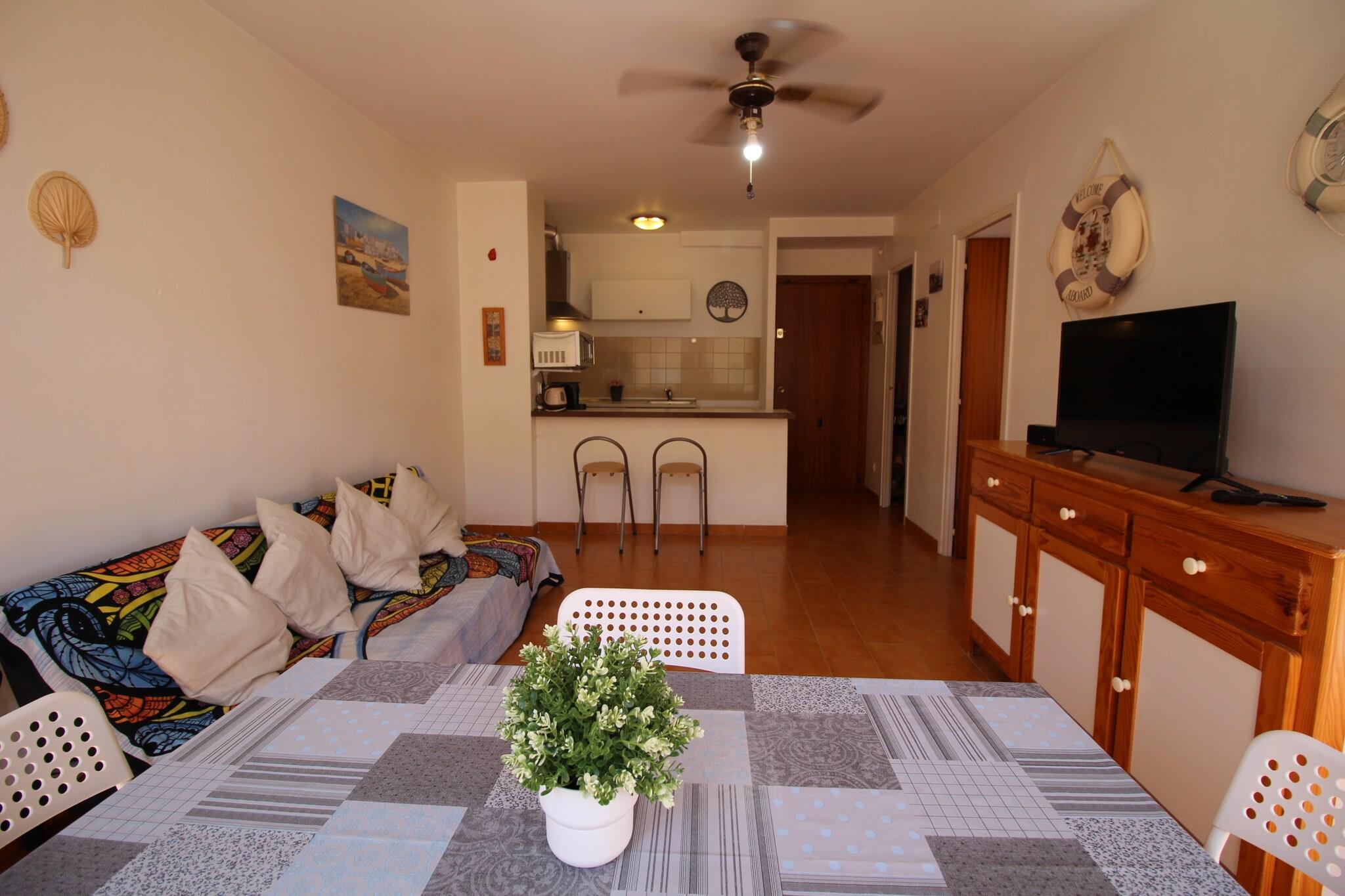 Denne hyggelige lejlighed på 39 m² i Empuriabrava er perfekt til par eller små familier og tilbyder indkvartering til op til 3 gæster. Den ligger på anden sal og har et soveværelse med en dobbeltseng og en dobbelt sovesofa i opholdsstuen. En lille terrasse på 3 m² med havemøbler giver et behageligt sted at nyde den friske luft, kun 300 meter fra sandstranden. Det åbne køkken er udstyret med keramisk kogeplade, køleskab, mikrobølgeovn, vaskemaskine, kaffemaskine og alt nødvendigt redskab til et komfortabelt ophold med selvforplejning. Lejligheden har også Wi-Fi (valgfrit), et tv, en ventilator og adgang til en fælles swimmingpool (mod et ekstra gebyr, med detaljer hos conciergen). Kæledyr er velkomne efter anmodning, hvilket gør den til en god mulighed for kæledyrsejere. Lejligheden er bekvemt placeret i nærheden af et supermarked (150 m) og tæt på restauranter, butikker og lokale attraktioner, og er derfor godt placeret til at udforske området. Gæsterne kan nemt komme til vandlandet Aquabrava (12 km), golfbanen Peralada (16 km) og Dalí-museet i Figueres (20 km). Girona Lufthavn ligger 65 km derfra, hvilket giver nem adgang for rejsende, der ønsker at nyde Costa Brava.