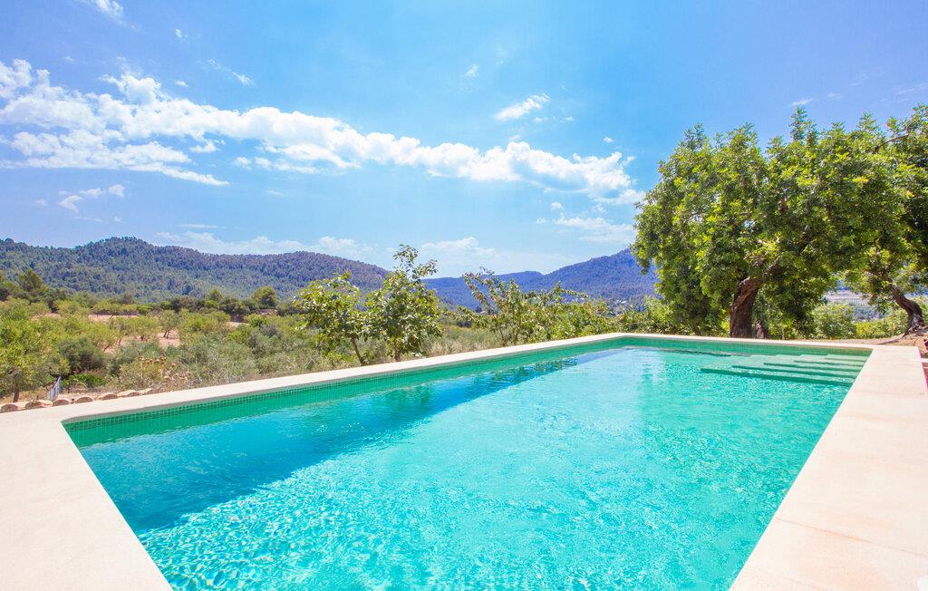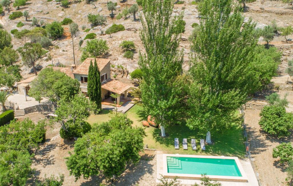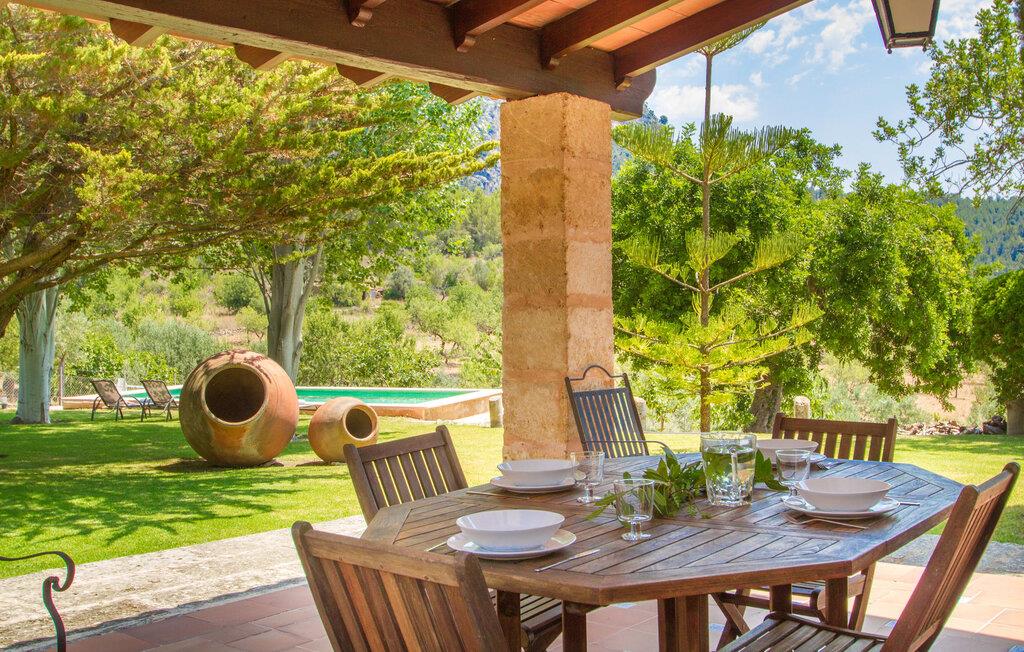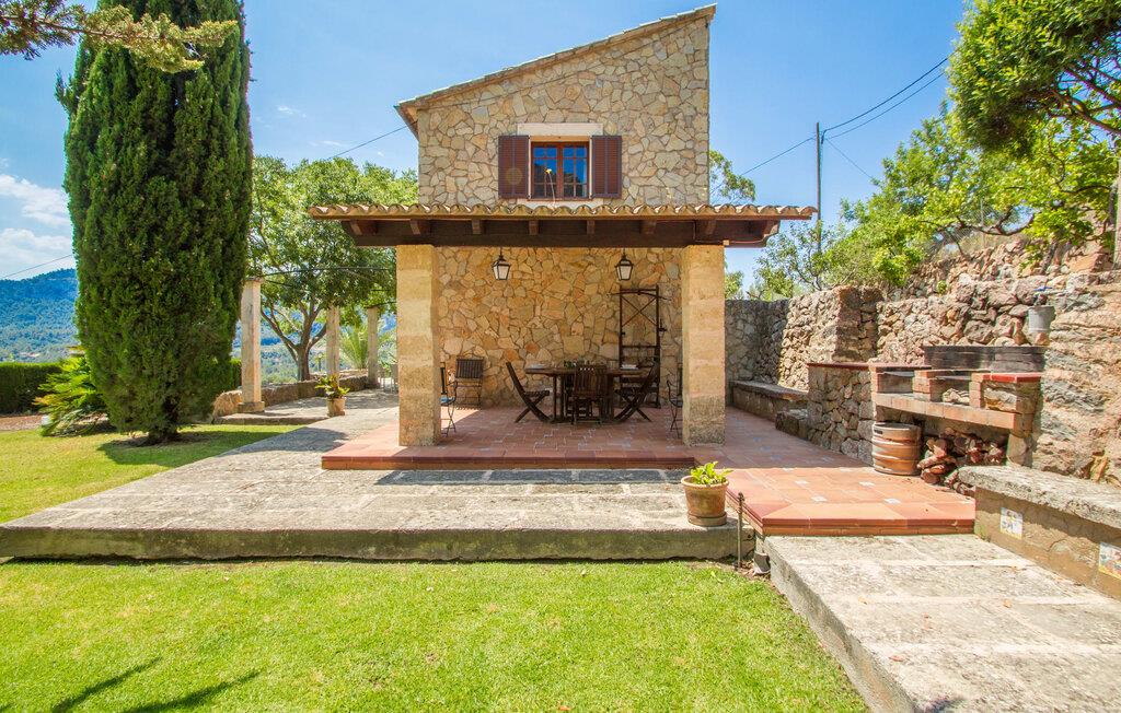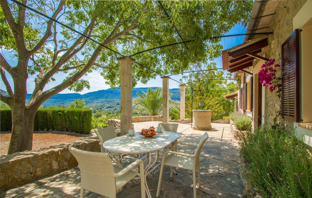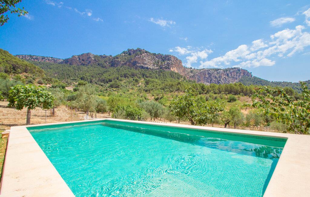 Villa "Es Caragolet" ligger på en 300.000 m² stor grund med frodige haver og en spektakulær udsigt over Tramuntana-bjergene, der strækker sig til havet, og tilbyder et fredeligt tilflugtssted i hjertet af Mallorca. Huset er omgivet af terrasser, hvoraf nogle er i skyggen af modne træer og giver perfekte steder at slappe af. Et udekøkken med indbygget grill inviterer jer til at nyde lækre måltider tilberedt med friske, lokale råvarer. Poolen er ideel til en forfriskende svømmetur, mens I nyder panoramaudsigten. Indvendigt udstråler villaen en sofistikeret, smagfuld atmosfære med møbler af høj kvalitet og træaccenter, der komplementerer de lyse, luftige rum. Det rummelige opholds- og spiseområde har komfortable sofaer, et stort spisebord og satellit-tv og er perfekt til afslapning eller socialt samvær. Det fuldt udstyrede køkken er udstyret med moderne apparater, og der er endda plads til et ekstra spisebord til afslappet spisning. Der er to venlige, airconditionerede soveværelser, det ene i stueetagen, med dobbeltsenge, der måler 1,60 x 2,00 m og 1,80 x 2,00 m og et stilfuldt badeværelse. Med aircondition i stuen og centralvarme i hele huset byder villaen på komfort hele året rundt. Fincaen "Es Caragolet" er en kæmpe ejendom i de sydlige foden af Tramuntana-bjergene, kun 1 km fra den smukke by Puigpunyent med dens smalle gader, shopping og restauranter. Den berømte vingård "Son Puig" ligger ved siden af villaen "Es Caragolet". Palma og den tidligere fiskerlandsby Andratx, med en smuk strandpromenade, er fantastiske destinationer, hvor I kan nyde adskillige aktiviteter.