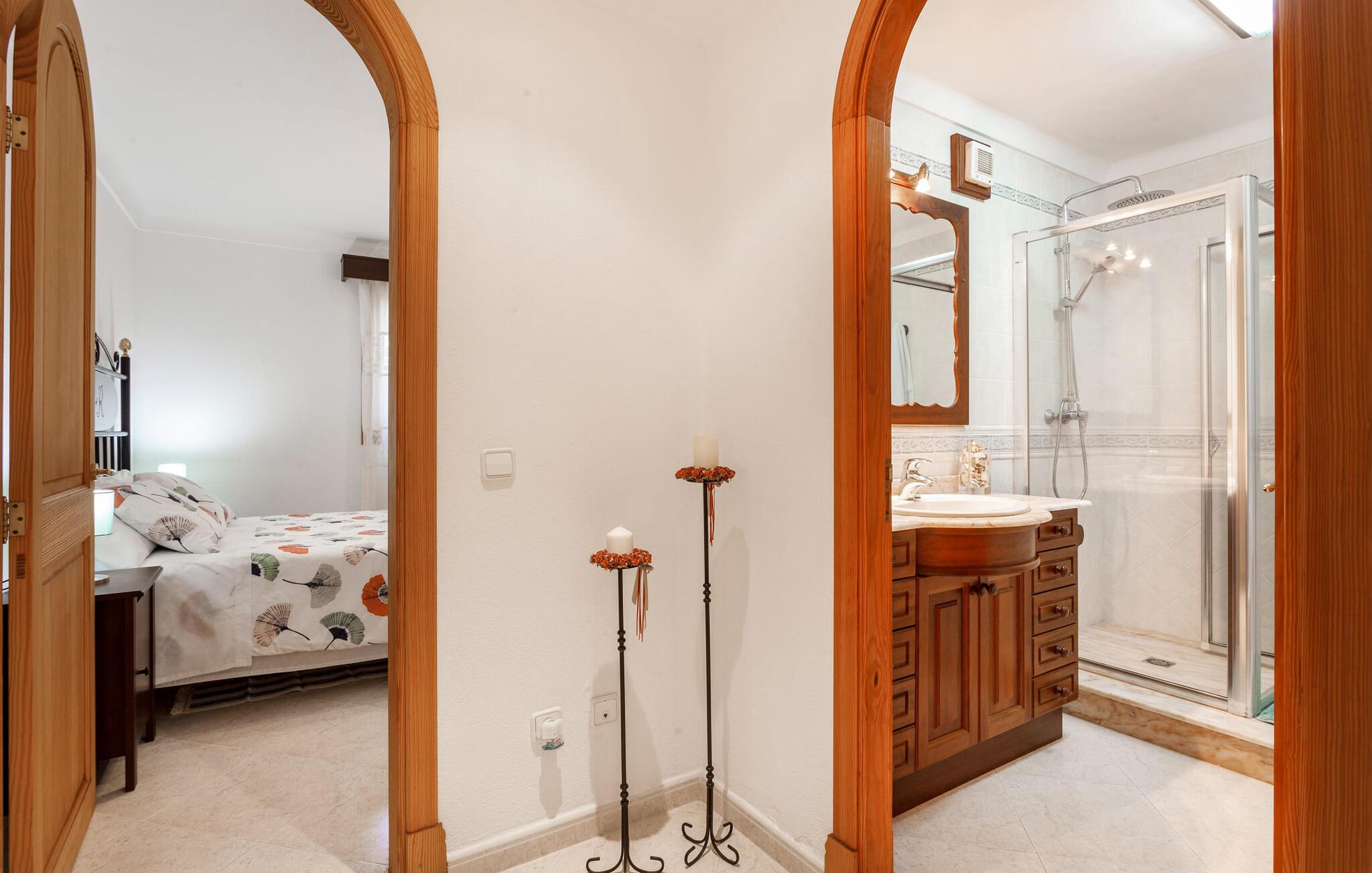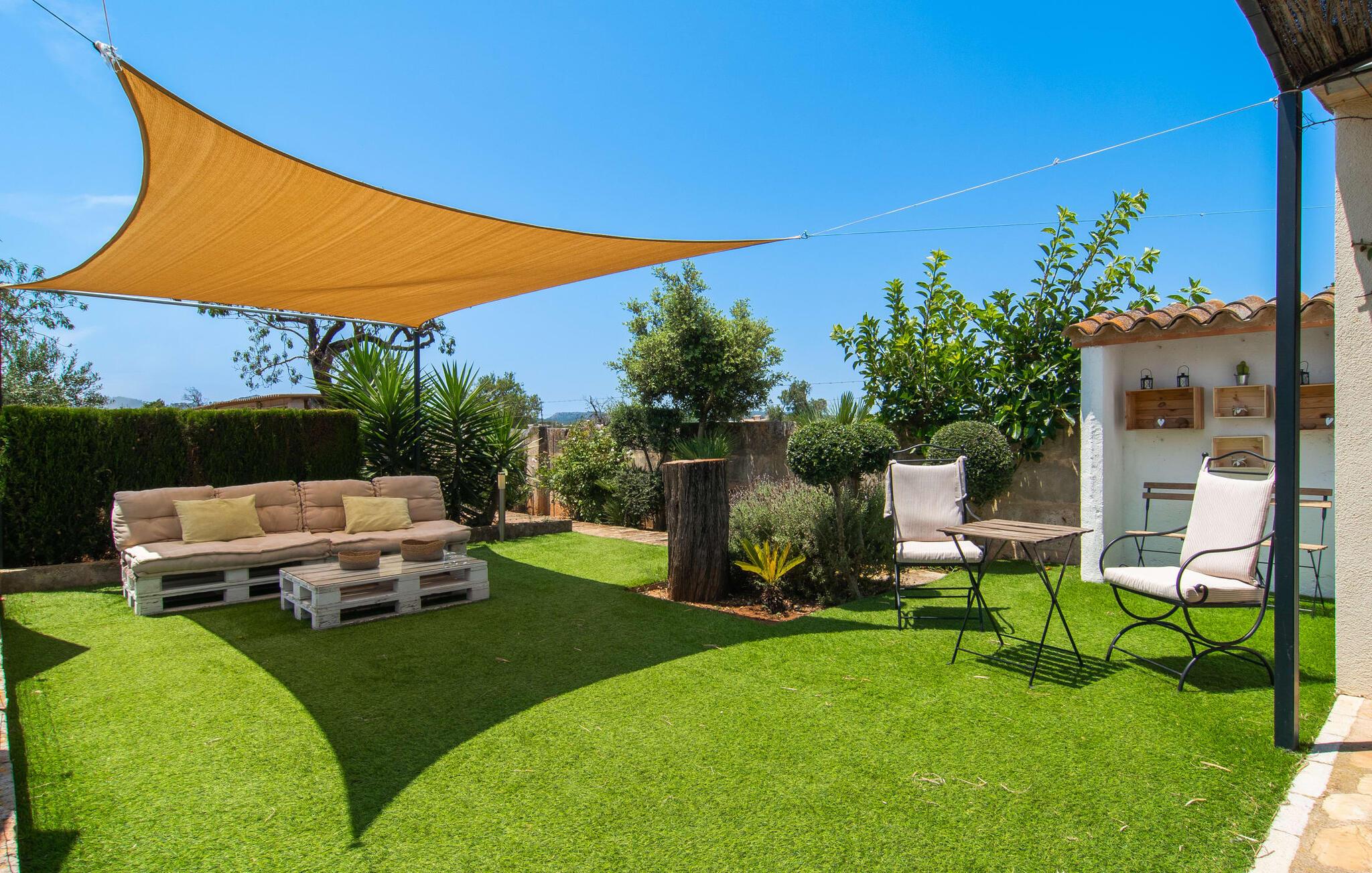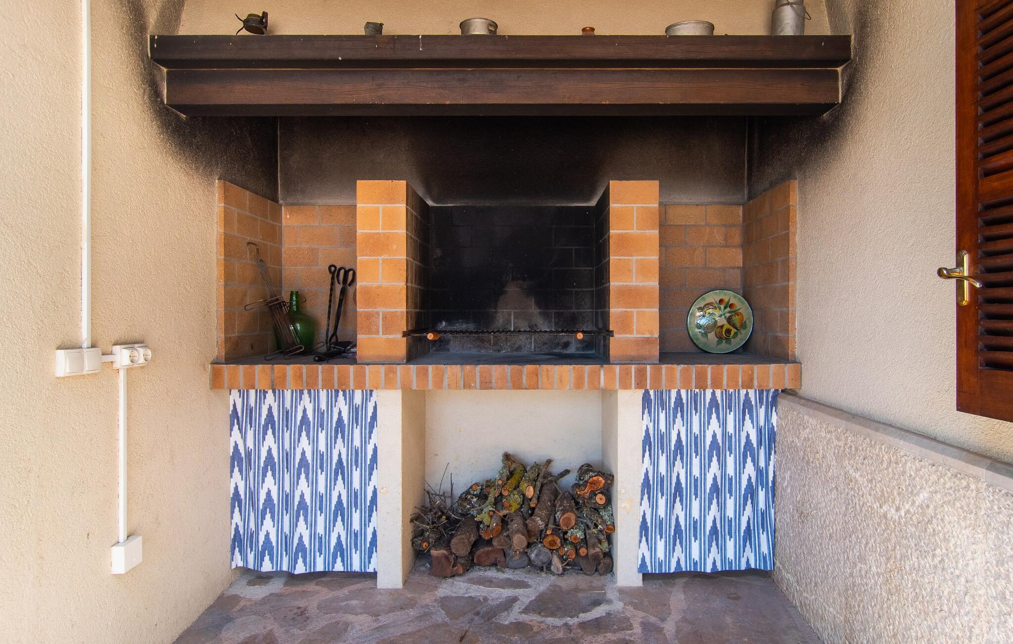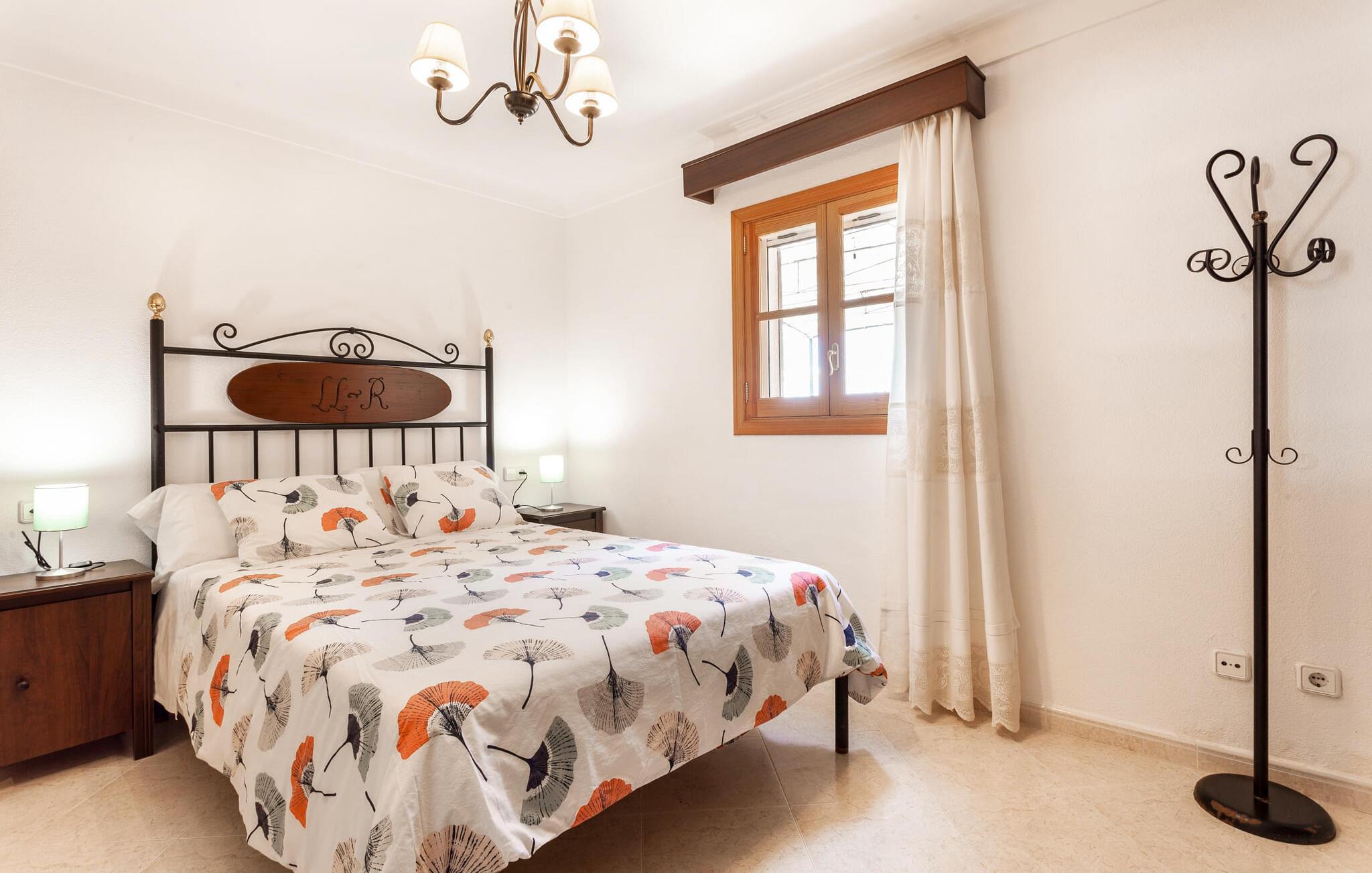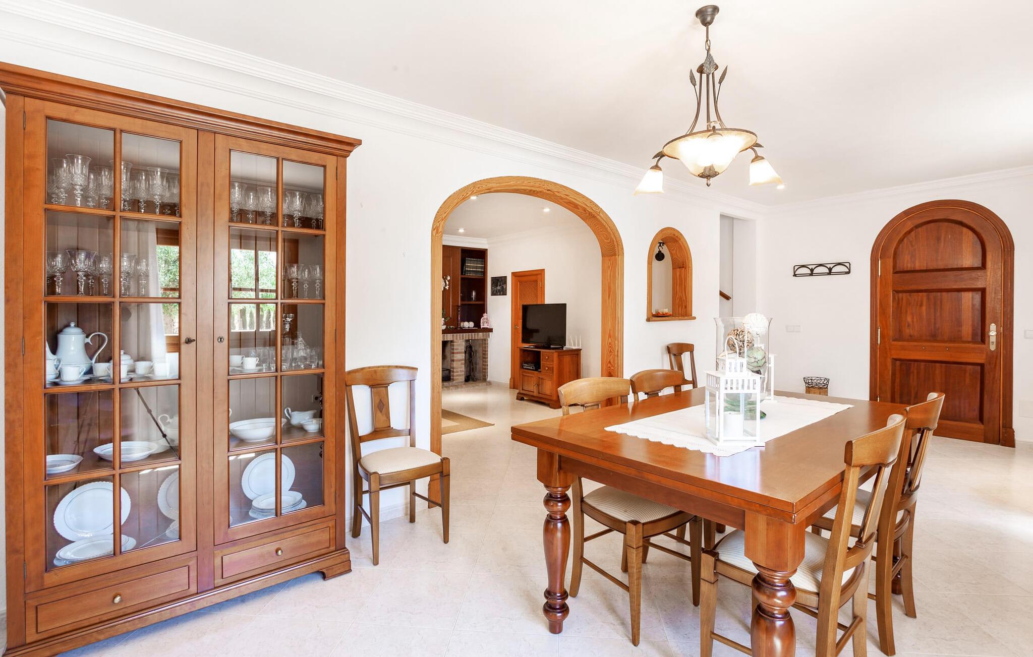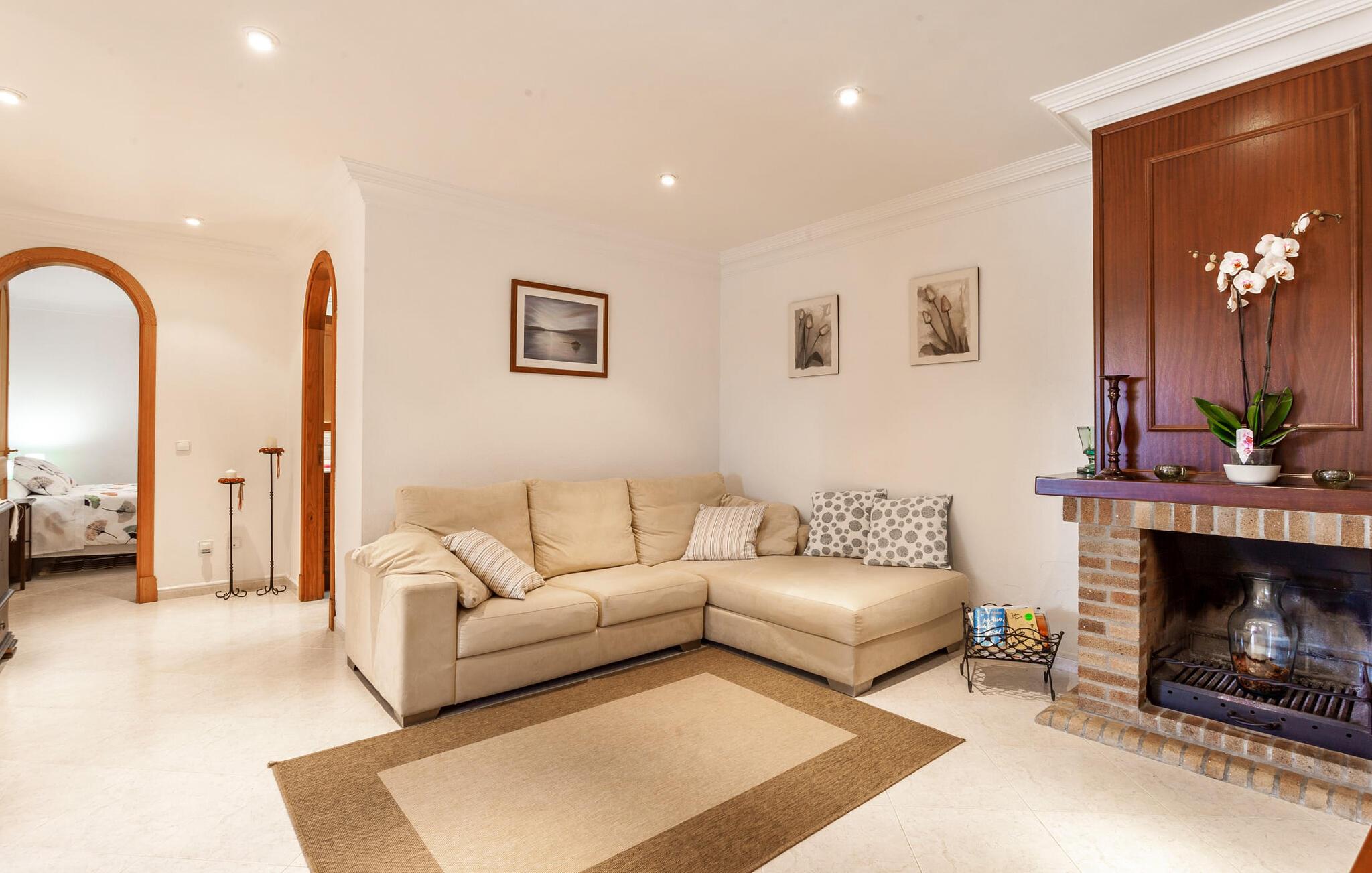 Den familievenlige villa "Es Cipres" vil glæde jer med sin smukke afsondrede beliggenhed på en 9.000 m² stor grund og, afhængigt af sæsonen, frodig vegetation. En række planter, omfattende grus- og terrassearealer samt indbydende nicher til at blive hængende giver denne ejendom en individuel charme. Rumfølelsen er imponerende og kan opleves direkte. Ved at dække huset har I mulighed for at nyde en række skønne steder at slappe af i solen eller i den luftige skygge, alt efter jeres præferencer. Komfortable liggestole inviterer jer til at slappe af og blive hængende, det samme gør de smagfulde siddeområder, hvor I kan spise sammen. Her kan I nyde den uhindrede udsigt til den dybblå morgenhimmel under morgenmaden eller lade endnu en tilfredsstillende feriedag slutte behageligt i aftenstemningen. Poolen vinkelret på villaen er sikret med et hegn til børn. Poolen er flisebelagt med smukke mosaiksten og varierer i dybden mellem 1 m og 1,90 m. Der er seks komfortable liggestole til rådighed for alle soldyrkere, og der er to parasoller til at beskytte jer mod lyse UV-stråler. Et andet skønt udendørs opholdsområde er placeret ovenpå, hvor en rummelig altan byder på en idyllisk udsigt. Forskellige legeredskaber gør det endnu mere attraktivt at tilbringe tid udendørs for vores små gæster. Det indre af villaen er smagfuldt indrettet. Lyse vægge, lofter og gulve kombineres med masser af træ og smuk belysning. Der blev brugt smagfuldt tilbehør i de rigtige proportioner, så den naturlige rumfornemmelse bevarer sine klare linjer og elegance. Forskellige buer sikrer en væsentlig harmoni af ejendommen. Husets midtpunkt er den åbne kombinerede stue/spisestue, som tilgås via en bred gang og rummer både en kæmpe spisegruppe og en lyst designet hjørnesofa med parabol-tv. På køligere aftener kan I slappe af her ved det hyggelige skær fra pejsen og varmen fra et bål. En anden spiseplads er i det rummelige og stilfulde køkken, som er fuldt udstyret og tilbyder gæsterne køleskab, ovn, gaskomfur, opvaskemaskine, Melitta kaffemaskine, elkedel og masser af opbevaringsplads. Her blev der også installeret en pejs, som giver ekstra hygge. Smukt designede soveværelser med et individuelt præg inviterer jer til en afslappende søvn. Behagelige farver kombineret med elegante møbler skaber en hyggelig atmosfære. De rummelige badeværelser er smagfuldt designet og udstyret med indretning af høj kvalitet. Et strygejern og en hårtørrer er til rådighed i huset, så I behøver ikke at tage dem med. Den lille, ret søvnige by Porreres ligger midt mellem marker, vinmarker og abrikosplantager. Kører I til Porreres en tirsdag morgen, vil I hurtigt bemærke, at halvdelen af landsbyen er på vej til det ugentlige marked. Udover frugt og grønt kan I også købe husholdningsartikler, tøj og sko der. De forskelligartede markedsboder strækker sig fra hovedtorvet ind i de smallere gader. Strandene på øst- og sydkysten kan nemt nås med bil, hvilket gør det til en afslappende dag på stranden. Den hyggelige villa "Es Cipres" ligger på en rummelig ejendom i et afsidesliggende landområde nær Porreres. Det er beliggende på en flad børnevenlig grund. Porreres ligger lige under hovedvejen mellem Llucmajor og Felanitx. I kan tilbringe en smuk dag ved havet, for eksempel i den lille havneby Colonia de Sant Jordi.