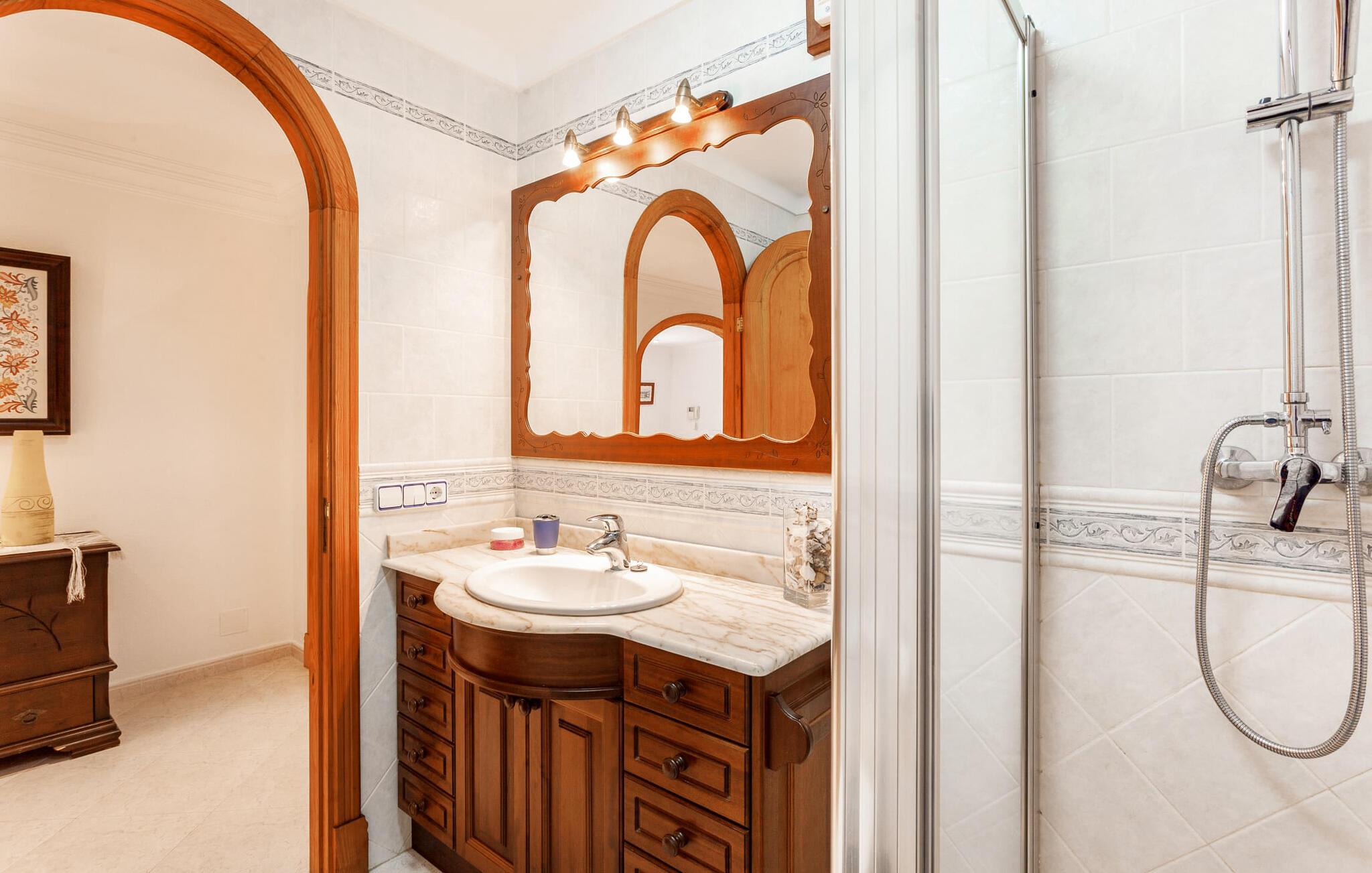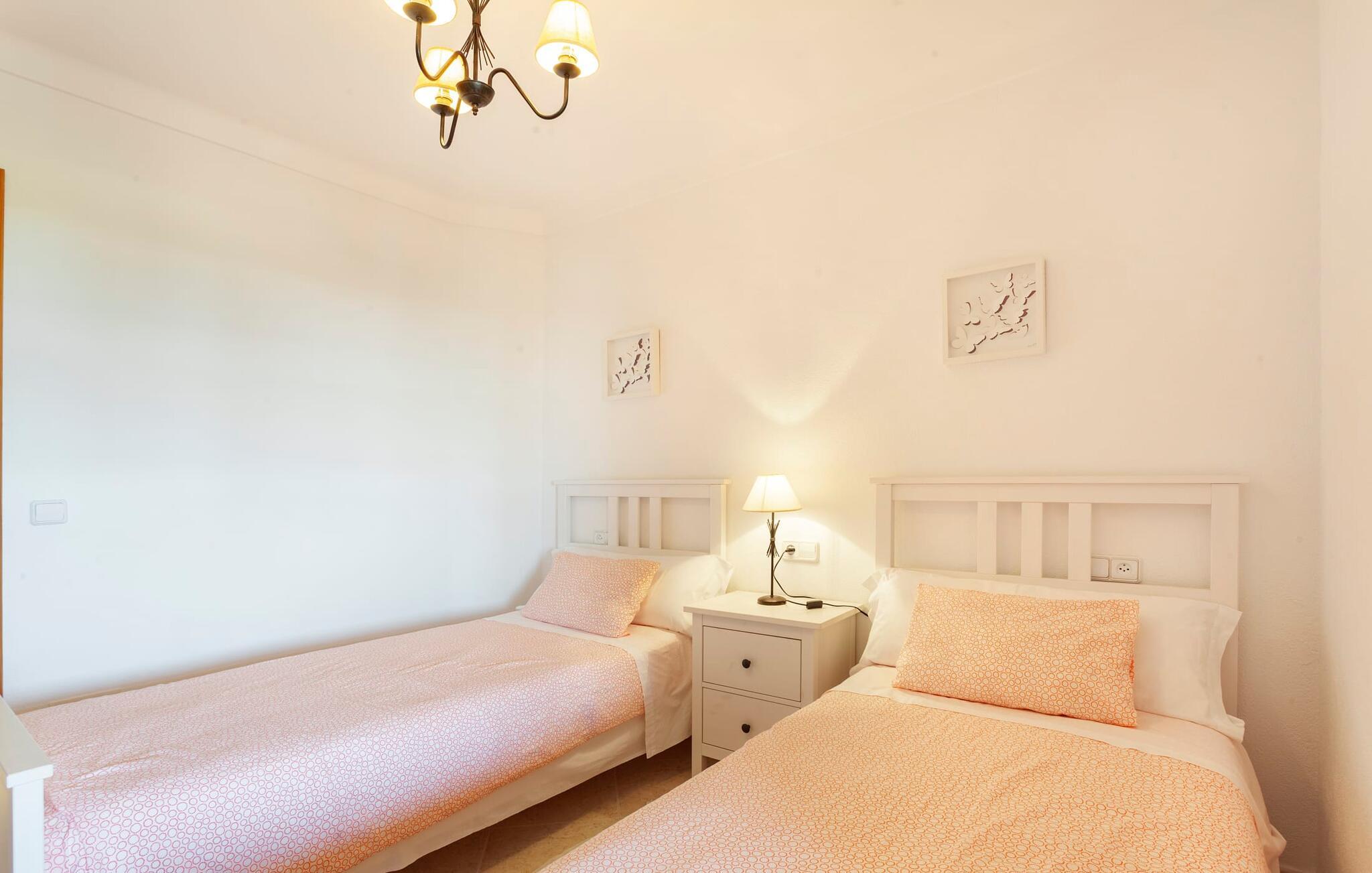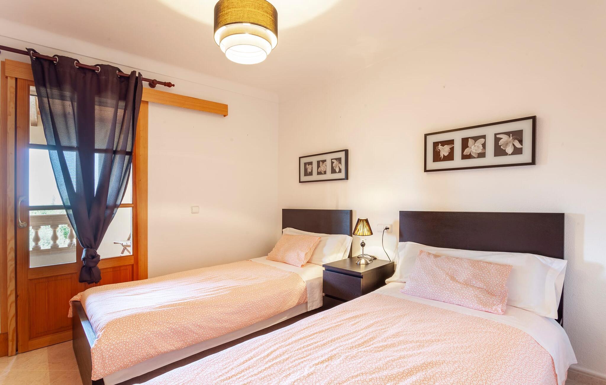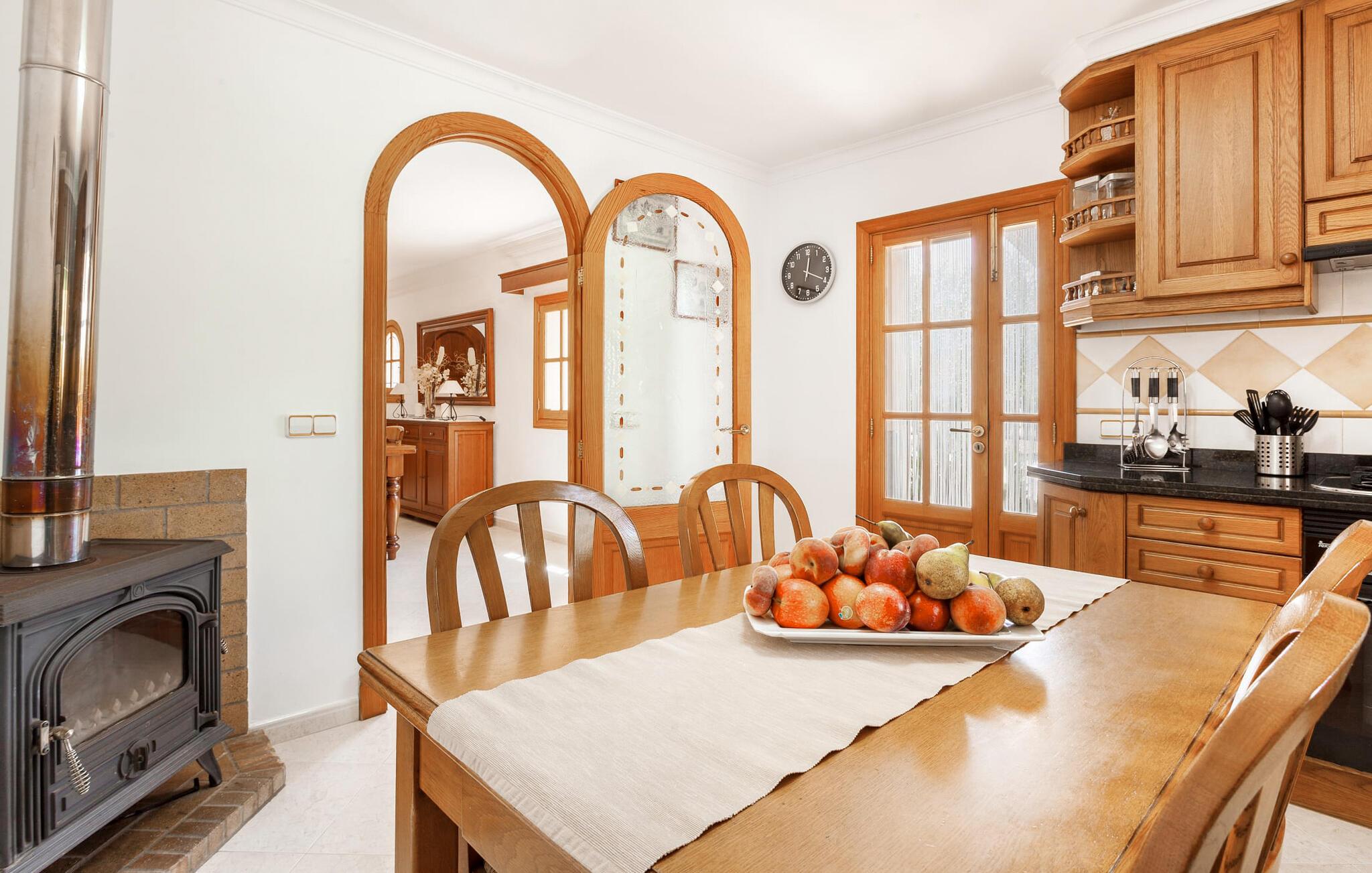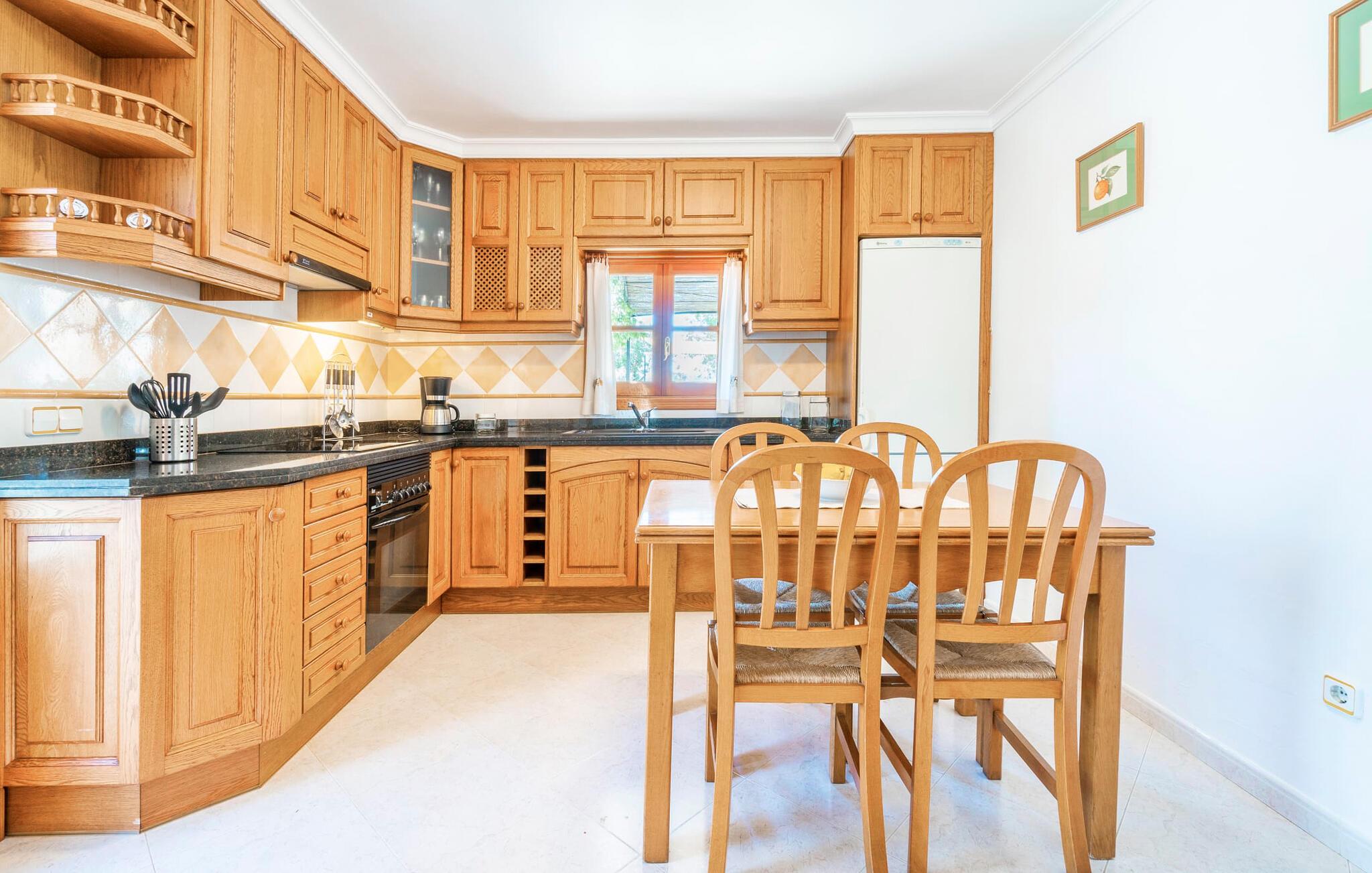 Den familievenlige villa "Es Cipres" vil glæde jer med sin smukke afsondrede beliggenhed på en 9.000 m² stor grund og, afhængigt af sæsonen, frodig vegetation. En række planter, omfattende grus- og terrassearealer samt indbydende nicher til at blive hængende giver denne ejendom en individuel charme. Rumfølelsen er imponerende og kan opleves direkte. Ved at dække huset har I mulighed for at nyde en række skønne steder at slappe af i solen eller i den luftige skygge, alt efter jeres præferencer. Komfortable liggestole inviterer jer til at slappe af og blive hængende, det samme gør de smagfulde siddeområder, hvor I kan spise sammen. Her kan I nyde den uhindrede udsigt til den dybblå morgenhimmel under morgenmaden eller lade endnu en tilfredsstillende feriedag slutte behageligt i aftenstemningen. Poolen vinkelret på villaen er sikret med et hegn til børn. Poolen er flisebelagt med smukke mosaiksten og varierer i dybden mellem 1 m og 1,90 m. Der er seks komfortable liggestole til rådighed for alle soldyrkere, og der er to parasoller til at beskytte jer mod lyse UV-stråler. Et andet skønt udendørs opholdsområde er placeret ovenpå, hvor en rummelig altan byder på en idyllisk udsigt. Forskellige legeredskaber gør det endnu mere attraktivt at tilbringe tid udendørs for vores små gæster. Det indre af villaen er smagfuldt indrettet. Lyse vægge, lofter og gulve kombineres med masser af træ og smuk belysning. Der blev brugt smagfuldt tilbehør i de rigtige proportioner, så den naturlige rumfornemmelse bevarer sine klare linjer og elegance. Forskellige buer sikrer en væsentlig harmoni af ejendommen. Husets midtpunkt er den åbne kombinerede stue/spisestue, som tilgås via en bred gang og rummer både en kæmpe spisegruppe og en lyst designet hjørnesofa med parabol-tv. På køligere aftener kan I slappe af her ved det hyggelige skær fra pejsen og varmen fra et bål. En anden spiseplads er i det rummelige og stilfulde køkken, som er fuldt udstyret og tilbyder gæsterne køleskab, ovn, gaskomfur, opvaskemaskine, Melitta kaffemaskine, elkedel og masser af opbevaringsplads. Her blev der også installeret en pejs, som giver ekstra hygge. Smukt designede soveværelser med et individuelt præg inviterer jer til en afslappende søvn. Behagelige farver kombineret med elegante møbler skaber en hyggelig atmosfære. De rummelige badeværelser er smagfuldt designet og udstyret med indretning af høj kvalitet. Et strygejern og en hårtørrer er til rådighed i huset, så I behøver ikke at tage dem med. Den lille, ret søvnige by Porreres ligger midt mellem marker, vinmarker og abrikosplantager. Kører I til Porreres en tirsdag morgen, vil I hurtigt bemærke, at halvdelen af landsbyen er på vej til det ugentlige marked. Udover frugt og grønt kan I også købe husholdningsartikler, tøj og sko der. De forskelligartede markedsboder strækker sig fra hovedtorvet ind i de smallere gader. Strandene på øst- og sydkysten kan nemt nås med bil, hvilket gør det til en afslappende dag på stranden. Den hyggelige villa "Es Cipres" ligger på en rummelig ejendom i et afsidesliggende landområde nær Porreres. Det er beliggende på en flad børnevenlig grund. Porreres ligger lige under hovedvejen mellem Llucmajor og Felanitx. I kan tilbringe en smuk dag ved havet, for eksempel i den lille havneby Colonia de Sant Jordi.