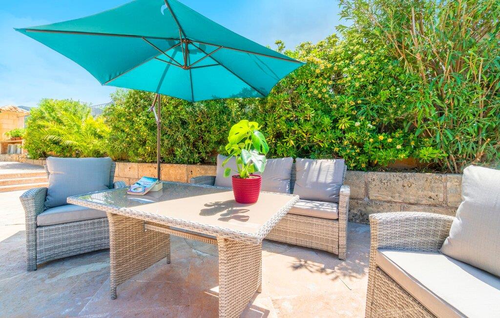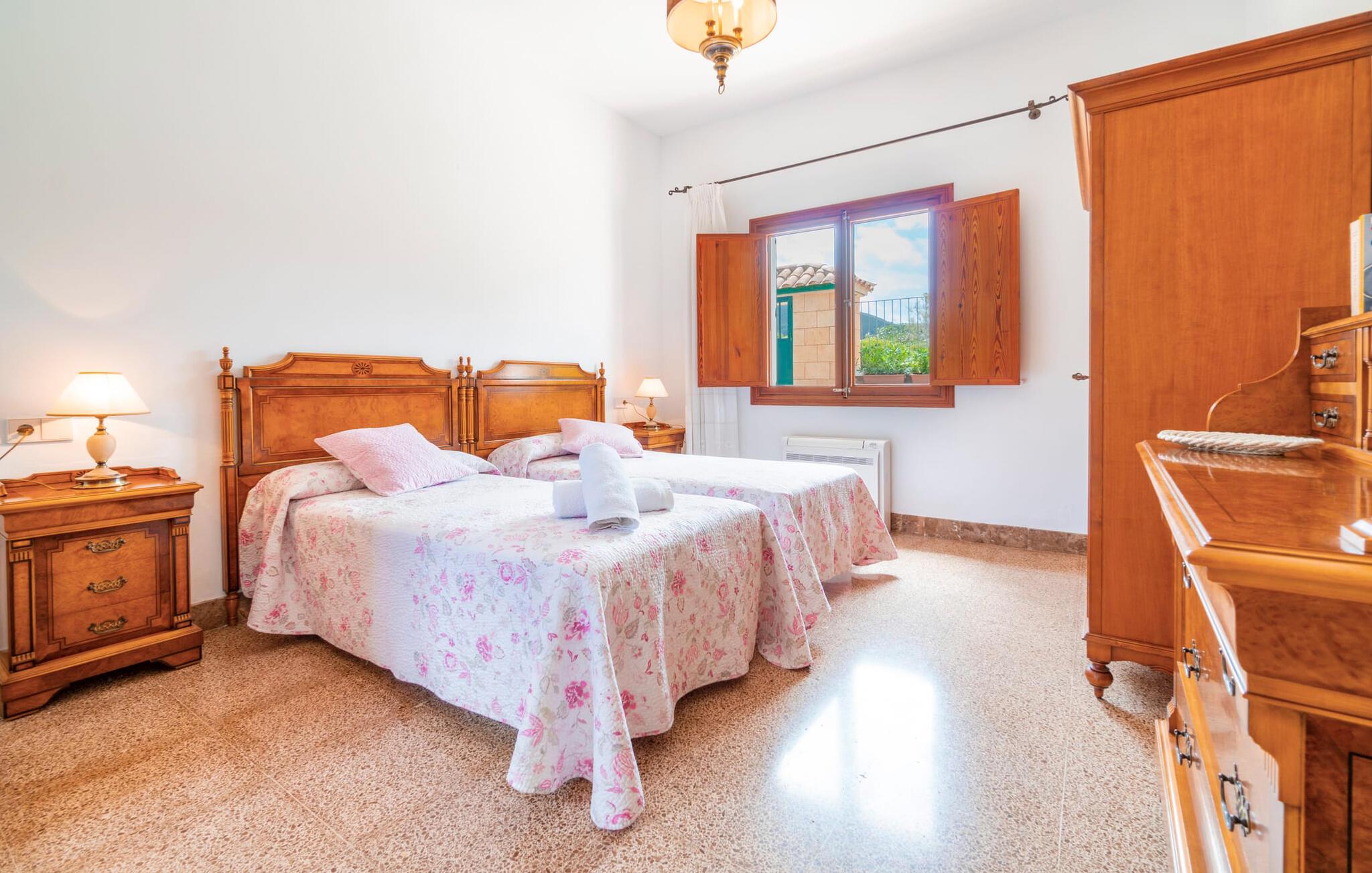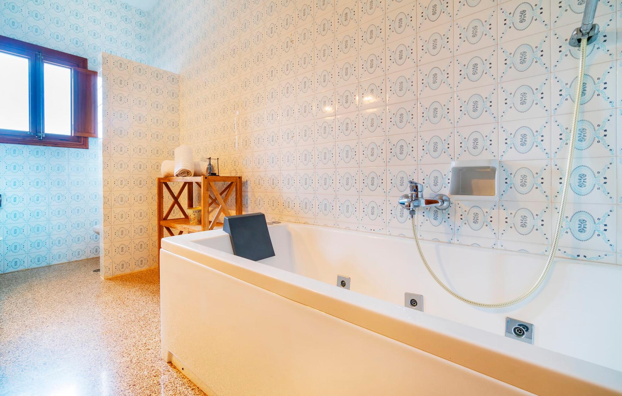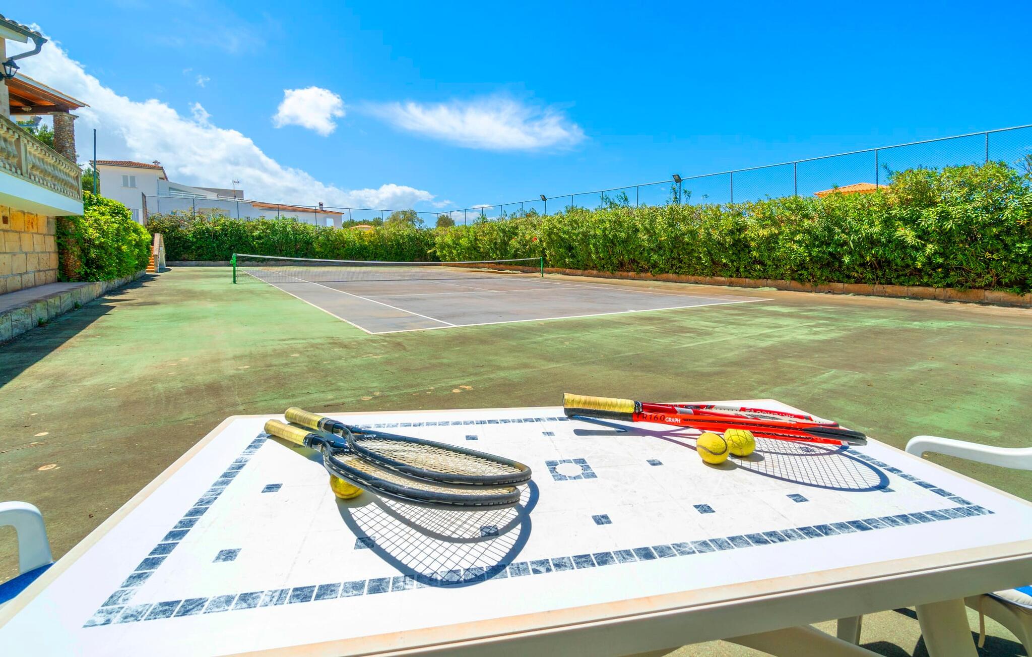 Det står på en rummelig grund i et typisk boligområde i Montferrutx urbanisering i udkanten af Colònia de Sant Pere. Selvom I er omgivet af naboer, kan I stadig nyde jeres privatliv i fulde drag takket være skærmen af tykke hække og hvidmalede vægge. Forskellige terrasseområder, dels omsluttet af dekorative stenrækværk, dels solrige, dels skyggefulde og udstyret med komfortable siddepladser, inviterer op til otte personer til at sidde behageligt sammen omkring feriehuset. Den store, lavvandede pool sørger for afkøling. Men man kan ikke bare dyrke sport i vandet. I kan også spille spændende kampe på bordtennisbordet og på den private tennisbane. I kan parkere en lejebil i garagen, og der er yderligere parkeringspladser ved huset. Interiøret i "Es Ferrutx" er klassisk elegant. Feriehuset er - typisk for det traditionelle Mallorca - indrettet med mange smukke gamle møbler, hvoraf nogle er kunstfærdigt udskårne. Skinnende klinkegulve, lette vægge og forskellige træelementer som paneler og dørkarme er perfekt afstemt. Som en behagelig kontrast er der nogle moderne, farverige malerier på væggene. Huset er meget rummeligt, så alle kan finde deres yndlingssted og man kan trække sig tilbage – især hvis der er mange medrejsende. I stueetagen er der udover det herskabelige indgangsparti og det veludstyrede køkken to store stuer med hver sin spiseplads. Fire kærligt møblerede soveværelser, hvoraf tre har moderne en-suite badeværelser og et med separat badeværelse, fuldender boligarealet på dette niveau. En marmortrappe fører til øverste etage, hvor der er endnu et soveværelse med badeværelse. Den klassiske, særligt rummelige villa "Es Ferrutx" ligger på en stor grund i en af de typiske boliggader i Montferrutx urbanisering. Selvom der er naboer, kan I nyde jeres privatliv her. Havet er så tæt på, at I nemt kan nå den nærmeste strand til fods på den anden side af gaden: Platja de Colònia de Sant Pere ligger kun omkring 700 m væk. Det er nemt at shoppe og gå på restauranter, selv uden bil. Bemærk venligst, at denne ejendom ikke accepterer ungdomsgrupper eller polterabender. En ungdomsgruppe på denne ejendom består af personer på 25 år eller derunder. Book ikke denne ejendom, hvis I er en ungdomsgruppe eller polterabend, da jeres reservation vil blive afvist, når den er booket, hvilket også kan være tilfældet ved ankomst til ejendommen eller under jeres ophold, og I vil ikke modtage en refusion