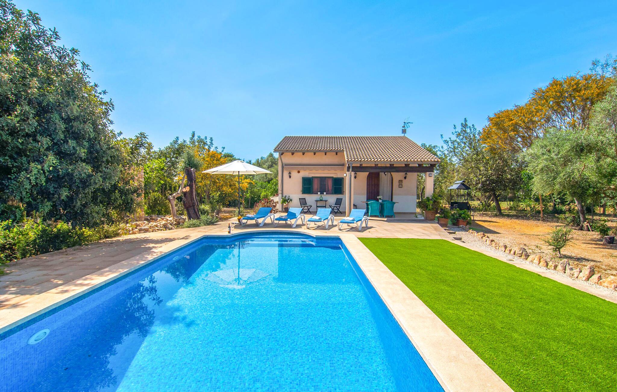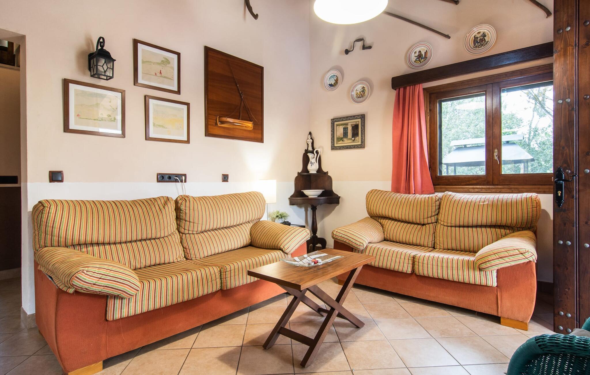 Det lille bondehus "Es Garroveret" tilbyder en mallorcansk ferie i absolut fred. Den overdækkede terrasse er ikke kun dejlig stille og hyggelig, men byder også på en fantastisk udsigt mod Tramuntana-bjergene. Blot få meter væk ligger den 8 meter lange pool, som nemt kan nås via en romersk trappe. Det er omgivet af en solterrasse, hvor komfortable liggestole inviterer jer til at slappe af under Mallorcas himmel. Frodig middelhavsvegetation indrammer området dekorativt og understreger den private atmosfære i dette hjem. Den mobile grill inviterer til at fejre aftenen med en solid grill. Det rustikke husinteriør har en behagelig ukompliceret karakter og er præget af en høj grad af hygge. Terracotta fliser, træ og en række dekorationer, nogle antikke, giver interiøret et ekstra individuelt præg. Den åbne plan stue og spisestue er et fantastisk sted at slappe af eller spise indendørs. Satellit-tv og trådløst internet giver en moderne medieforbindelse. Det åbne, integrerede køkken byder på alt, hvad I behøver til selvforplejning på ferien. To hyggelige dobbeltværelser giver plads til en afslappende søvn eller en siesta i løbet af dagen. Et badeværelse med brusebad og naturligt lys fuldender værelsestilbuddet i denne rolige bondegård på Mallorca. Mindre end 10 minutter i bil fra den lille landsby Campanet ved foden af Serra de Tramuntana, tilbyder bondegården "Es Garroveret" op til fire gæster et feriested i absolut fred. De nærmeste strande ligger ca. 20 km væk. I Sa Pobla (ca. 11 km) kan I slentre gennem den smukke gamle bydel med dens caféer og butikker.