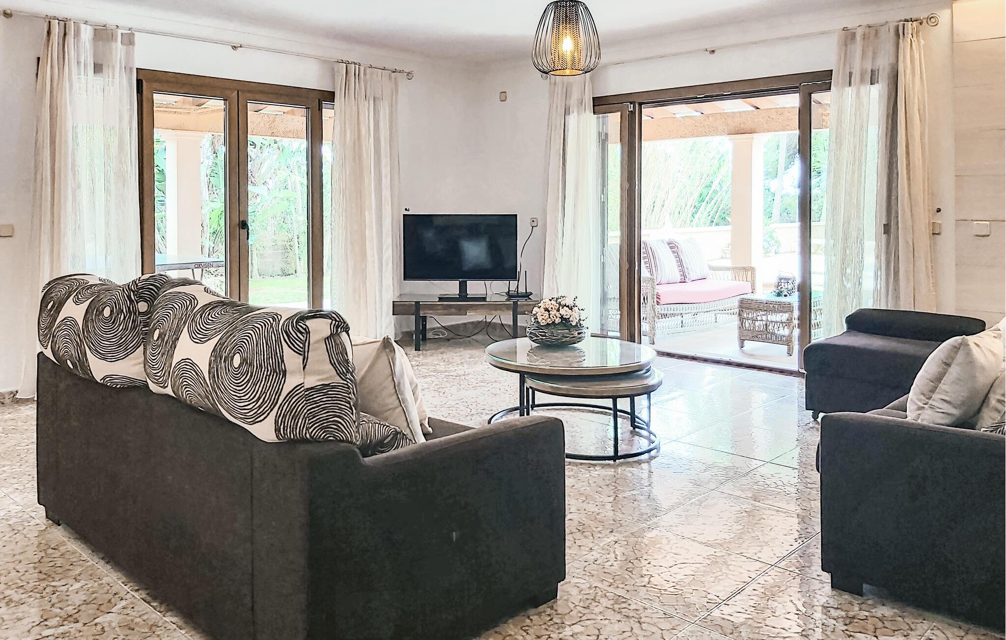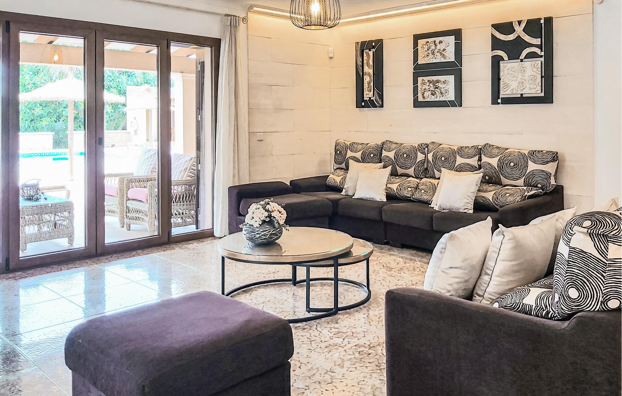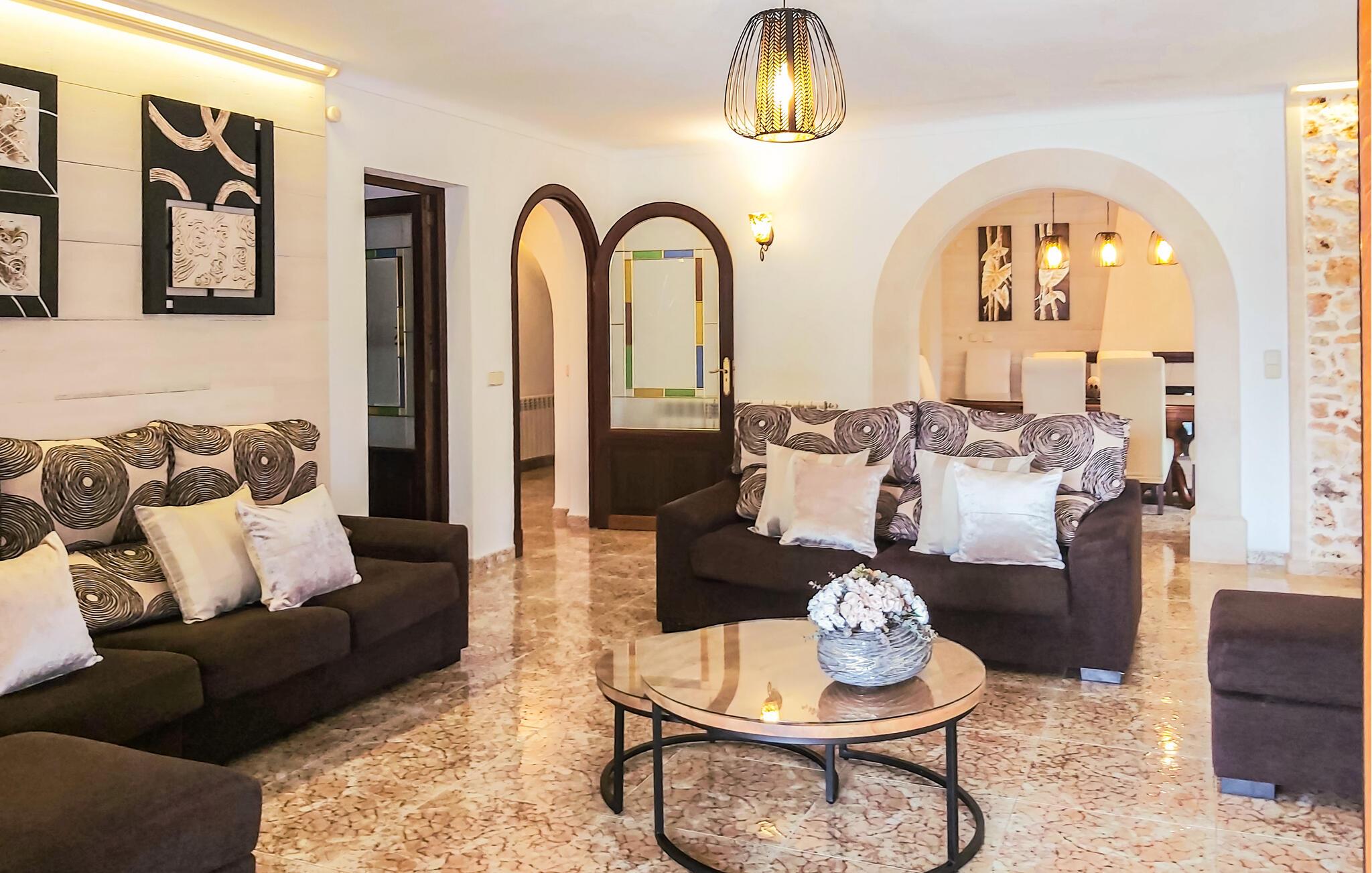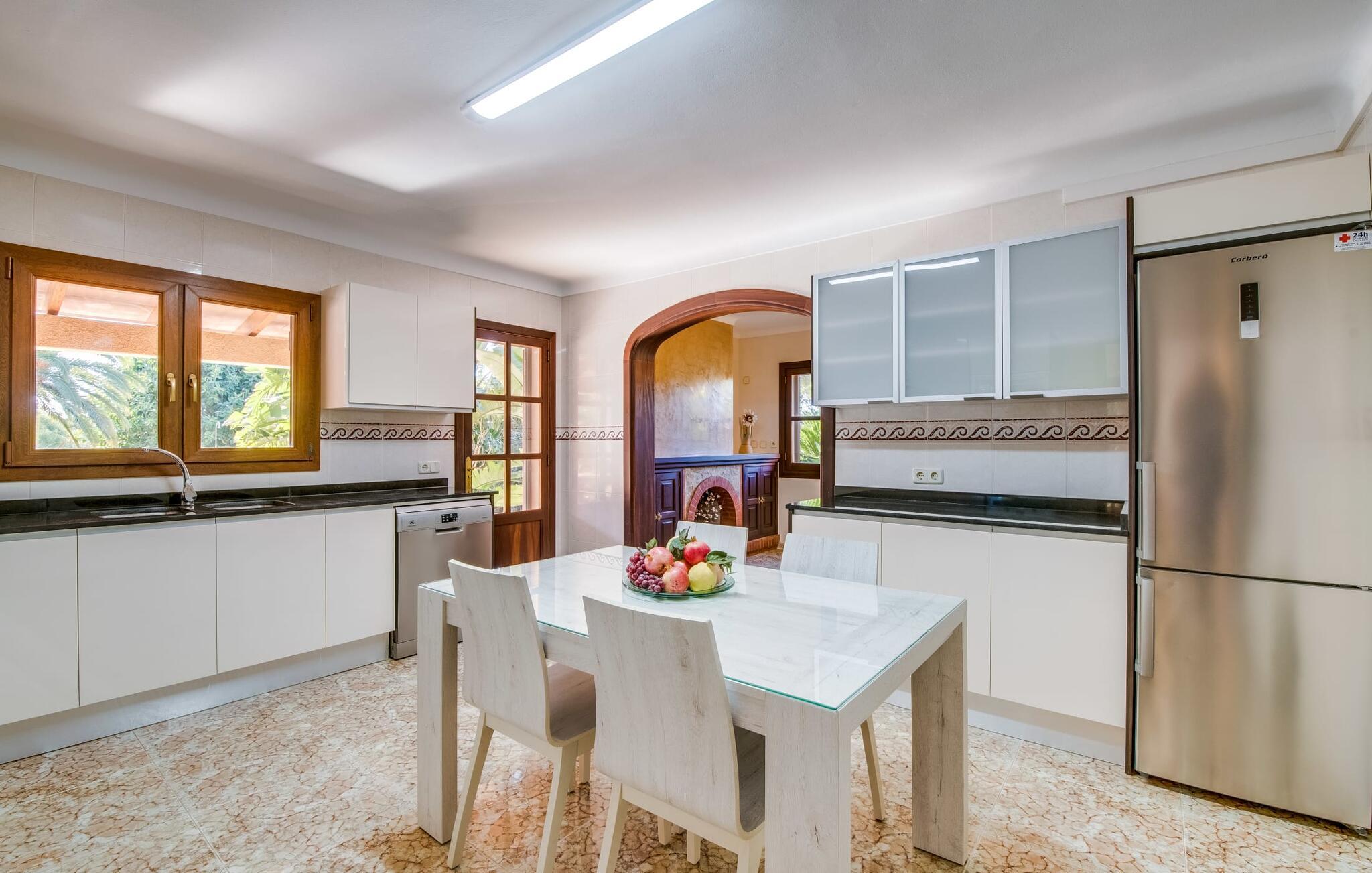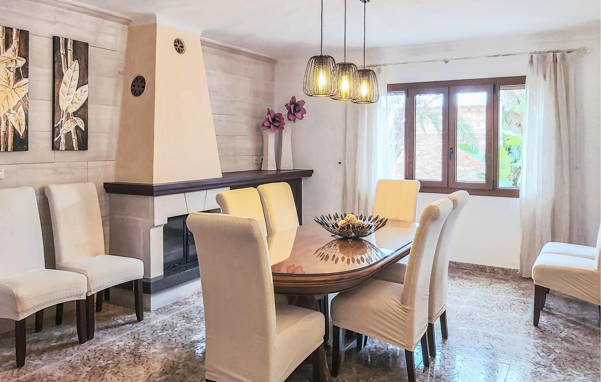 "Es Jardi" er catalansk og betyder "haven". Området dækker et areal på 15.000 m² og byder på masser af plads til at udvikle sig individuelt og nyde tiden under middelhavshimlen. Udendørsarealet er udover frodigt grønt med flere palmer særligt præget af et kæmpestort terrasseareal, der strækker sig rundt om den buede pool og bygningen, og hvis græsplæner harmonisk komplementerer billedet. Find det perfekte sted at slappe af, enten med direkte sollys eller dejligt blæsende i et af de skyggefulde områder. Den dekorative pool har en lavvandet trinindgang og er dekoreret med smukke mosaiksten. Komfortable liggestole inviterer jer til at slappe af, sætte jeres kølige drink på kanten af poolen og måske bare lave ingenting eller se børnene plaske rundt. Et rigtigt højdepunkt er det lidt adskilte udekøkken med rustikke siddepladser - et rigtig hyggeligt sted for en kulinarisk afslutning på dagen sammen. En række andre siddemuligheder giver masser af muligheder for at sidde komfortabelt udenfor. Solide møbler, rundbuer, lette vægge og lofter samt dekorative gulvfliser præger indretningen af dette klassiske bondehus, som holdes på den perfekte temperatur året rundt med varme og aircondition. Stuen kan trædes direkte ind fra terrassen og byder derfor på udsigt udenfor; den er også dejlig rummelig. En stilfuld spiseplads ligger lige ved siden af, ligesom det fuldt udstyrede køkken, hvorfra I også har direkte udgang til terrassen. Meget forskellige stilarter kan findes i soveværelserne, som er spredt ud over stueetagen og øverste etage - der er bestemt noget for enhver smag og en behagelig nattesøvn er garanteret. Fire badeværelser garanterer maksimalt privatliv, så I vil ikke føle jer trang i denne bondegård på Mallorca, selv når den er fuldt optaget. Et gæstetoilet er også placeret i stueetagen. Dette feriehus på Mallorca scorer med en rummelig have og poolområde, gode faciliteter og fremragende adgang til flere strande, for eksempel Cala Ferrera, Cala Gran, Cala d'Or. Takket være dens beliggenhed tæt på vejen, er I meget godt forbundet her. I den meget venlige, livlige landsby kan I shoppe eller slentre langs promenaden. Udvalget af andre badebugter er mangfoldigt og nemt at nå med lejebil. Brug af ejendommens aircondition er inkluderet i prisen, men brugen er begrænset til kl. 18.30 og kl. 22.00. Gebyret afregnes herefter kontant på stedet. Varmeudgifter er også inkluderet i prisen fra 07.00 til 09.00 og fra 18.00 til midnat, hvorefter de afregnes kontant på stedet.