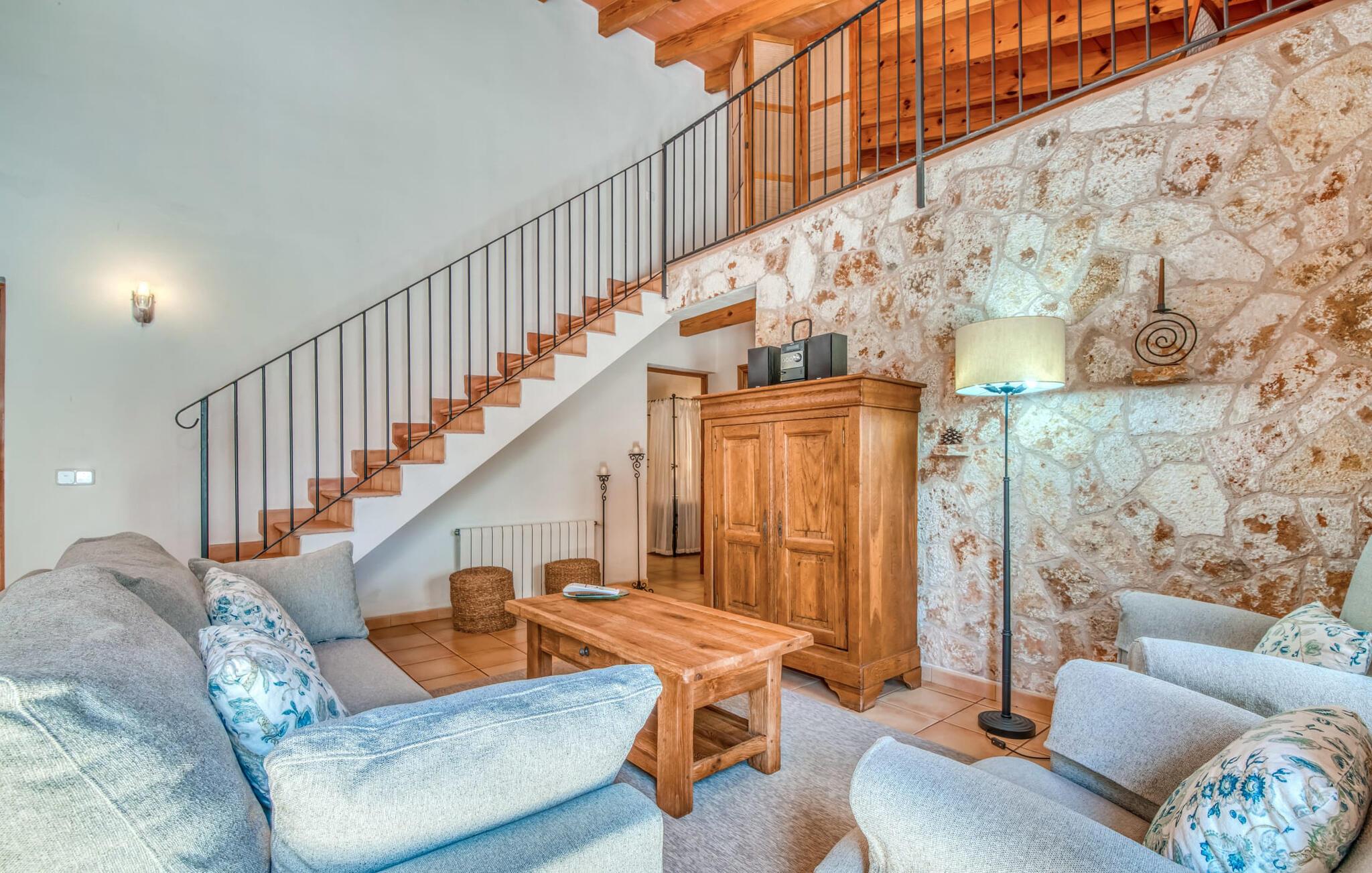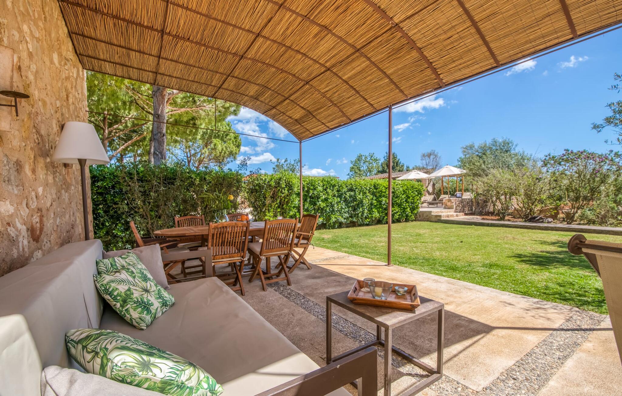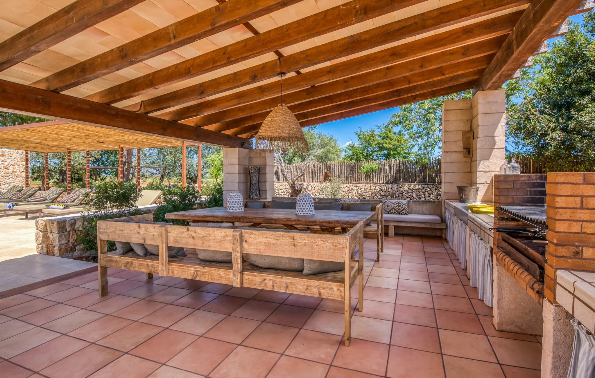 Denne stenbyggede finca "Es Lledoner dos" er omgivet af en rummelig grund med palmer, fyrretræer og oliventræer og andre middelhavsplanter. Der er en privat terrasse lige ved huset, perfekt til at spise under åben himmel eller slappe af på den udendørs sofa, mens den nærliggende grillplads er ideel til aftengrill. I fællesarealet finder I naturlig skygge samt gynger, en balinesisk seng og et picnicbord. Det fantastiske poolområde omfatter en pool, let tilgængelig via en bred trappe, med liggestole og daybeds på den omkringliggende terrasse. Det rustikke poolhus med siddepladser og udendørs køkken tilbyder et perfekt sted for uforglemmelige øjeblikke. Ejerne bor på ejendommen med deres kat og to hunde, men poolen er kun for gæster. Indenfor byder den åbne stue og spisestue på lyse vægge, synlige bjælker og hyggelige træmøbler. En dekorativ buegang fører til de tre komfortabelt indrettede soveværelser, to dobbeltværelser og et enkeltværelse. Med tre badeværelser, to af dem en suite, tilbyder fincaen absolut privatliv. Booking "Es Lledoner Tres" (EMI327) ved siden af er perfekt til to familier, der rejser sammen. Omkring 13 km fra Mallorcas østkyst ligger fincaen på en afsondret beliggenhed og er omgivet af smukke træer. På grund af sin beliggenhed tæt på vejen er forskellige destinationer let tilgængelige. Den smukke havnepromenade i Portocolom, hvor I vil finde gode barer, restauranter og supermarkeder, ligger 20 minutter væk i bil. Restauranter og butikker kan også findes i nærliggende Felanitx (4 km). For længere shoppingture er Manacor (17 km) et godt valg. Efter 20 til 30 minutter kan I også nå nogle strande.
