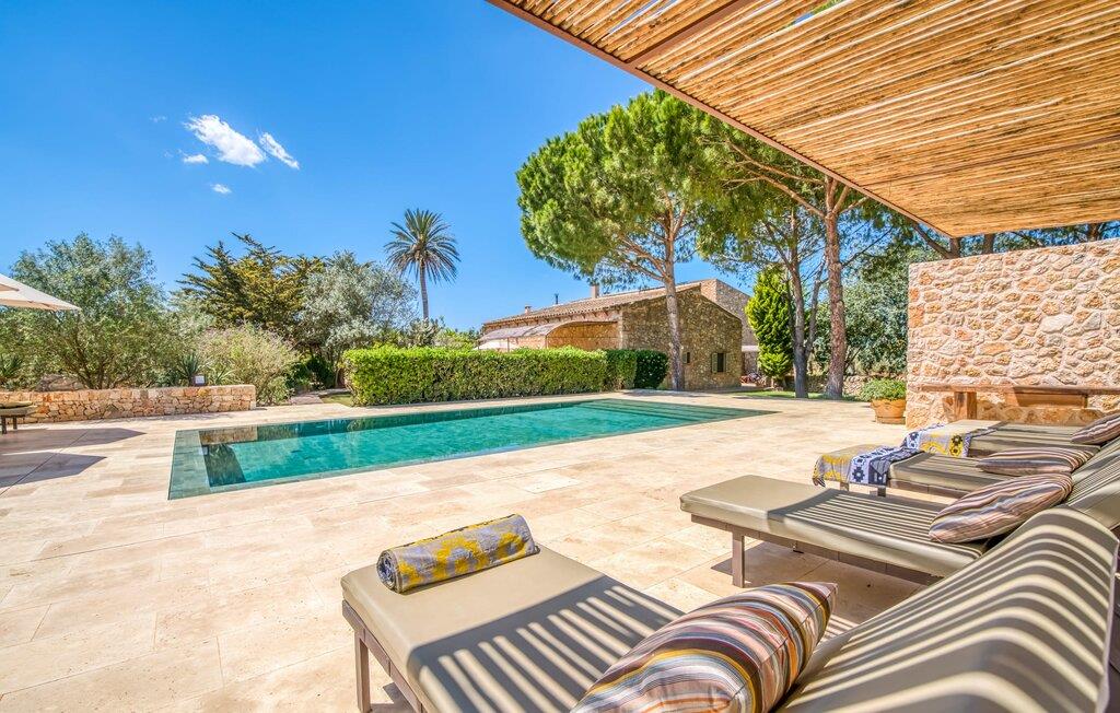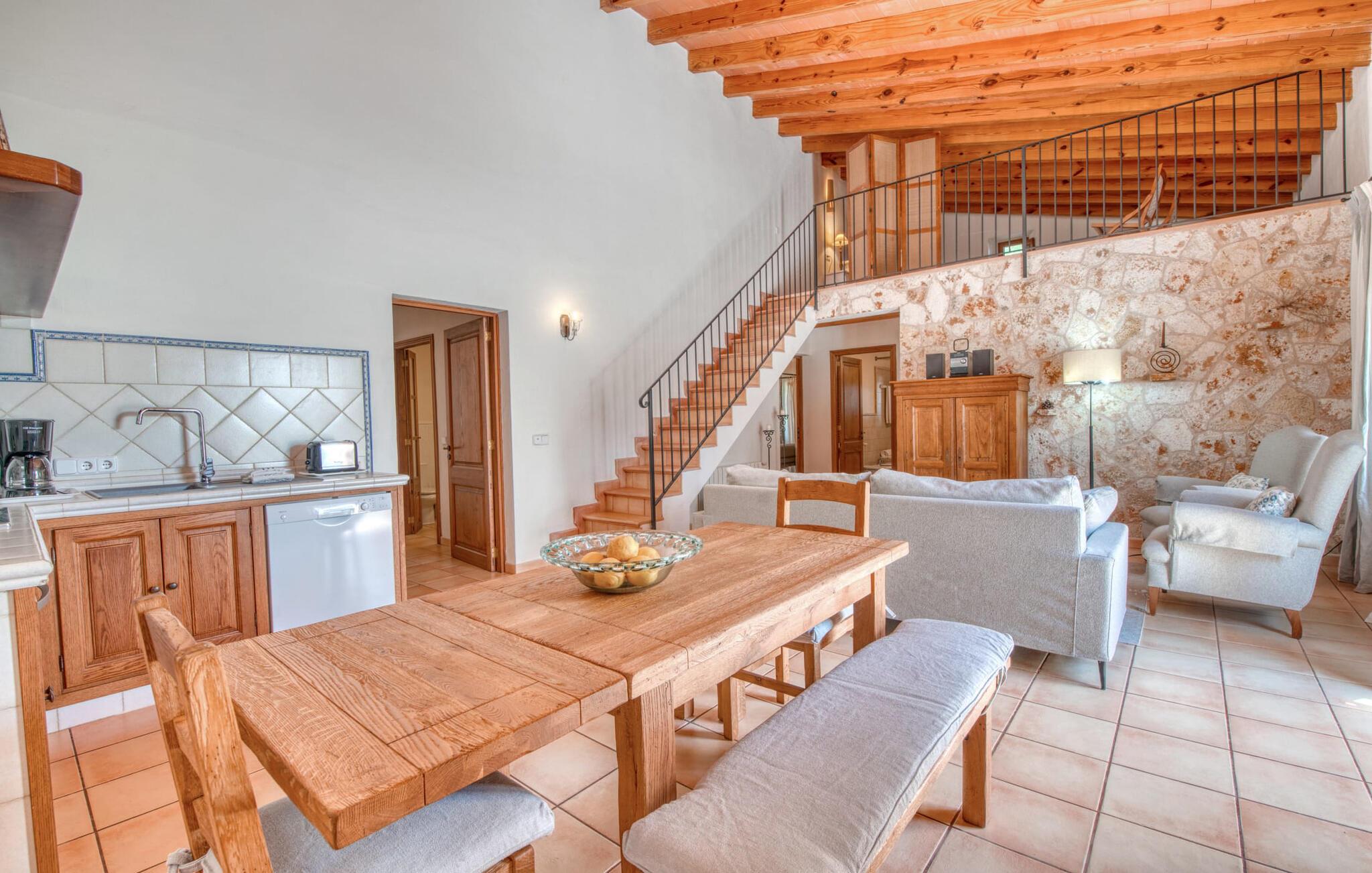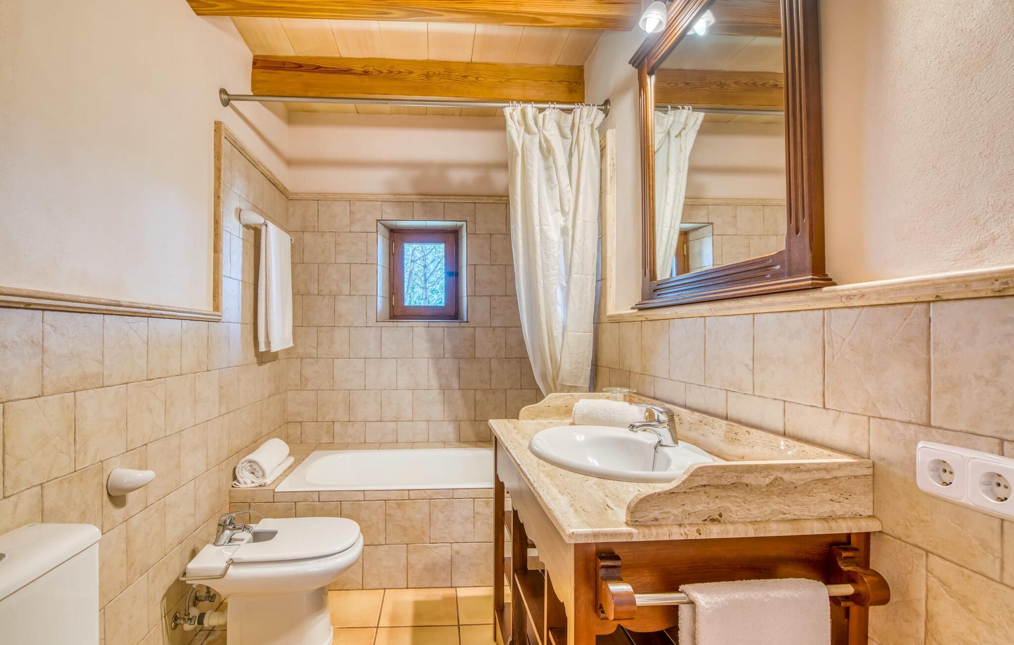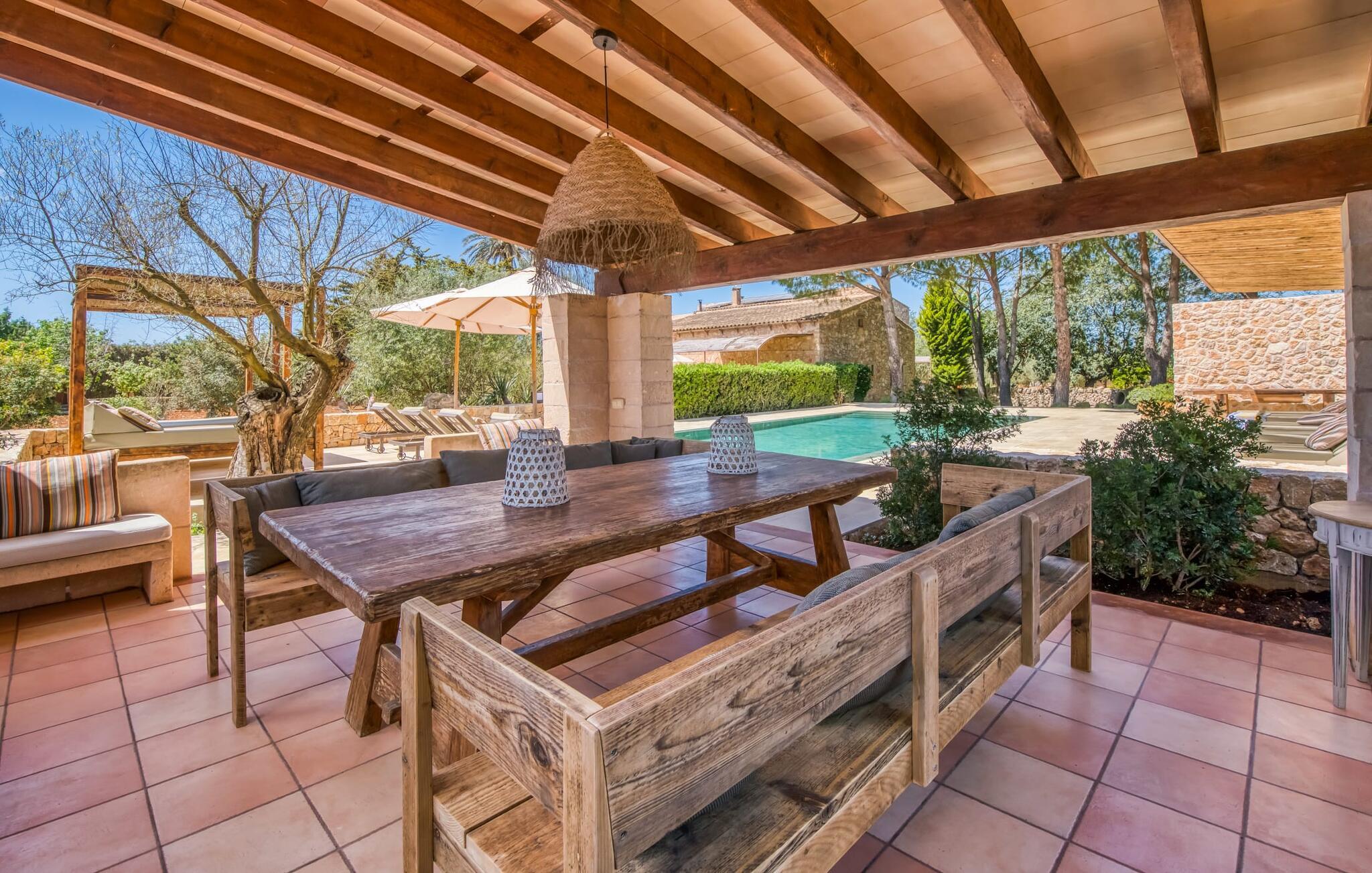 Denne stenbyggede finca "Es Lledoner dos" er omgivet af en rummelig grund med palmer, fyrretræer og oliventræer og andre middelhavsplanter. Der er en privat terrasse lige ved huset, perfekt til at spise under åben himmel eller slappe af på den udendørs sofa, mens den nærliggende grillplads er ideel til aftengrill. I fællesarealet finder I naturlig skygge samt gynger, en balinesisk seng og et picnicbord. Det fantastiske poolområde omfatter en pool, let tilgængelig via en bred trappe, med liggestole og daybeds på den omkringliggende terrasse. Det rustikke poolhus med siddepladser og udendørs køkken tilbyder et perfekt sted for uforglemmelige øjeblikke. Ejerne bor på ejendommen med deres kat og to hunde, men poolen er kun for gæster. Indenfor byder den åbne stue og spisestue på lyse vægge, synlige bjælker og hyggelige træmøbler. En dekorativ buegang fører til de tre komfortabelt indrettede soveværelser, to dobbeltværelser og et enkeltværelse. Med tre badeværelser, to af dem en suite, tilbyder fincaen absolut privatliv. Booking "Es Lledoner Tres" (EMI327) ved siden af er perfekt til to familier, der rejser sammen. Omkring 13 km fra Mallorcas østkyst ligger fincaen på en afsondret beliggenhed og er omgivet af smukke træer. På grund af sin beliggenhed tæt på vejen er forskellige destinationer let tilgængelige. Den smukke havnepromenade i Portocolom, hvor I vil finde gode barer, restauranter og supermarkeder, ligger 20 minutter væk i bil. Restauranter og butikker kan også findes i nærliggende Felanitx (4 km). For længere shoppingture er Manacor (17 km) et godt valg. Efter 20 til 30 minutter kan I også nå nogle strande.