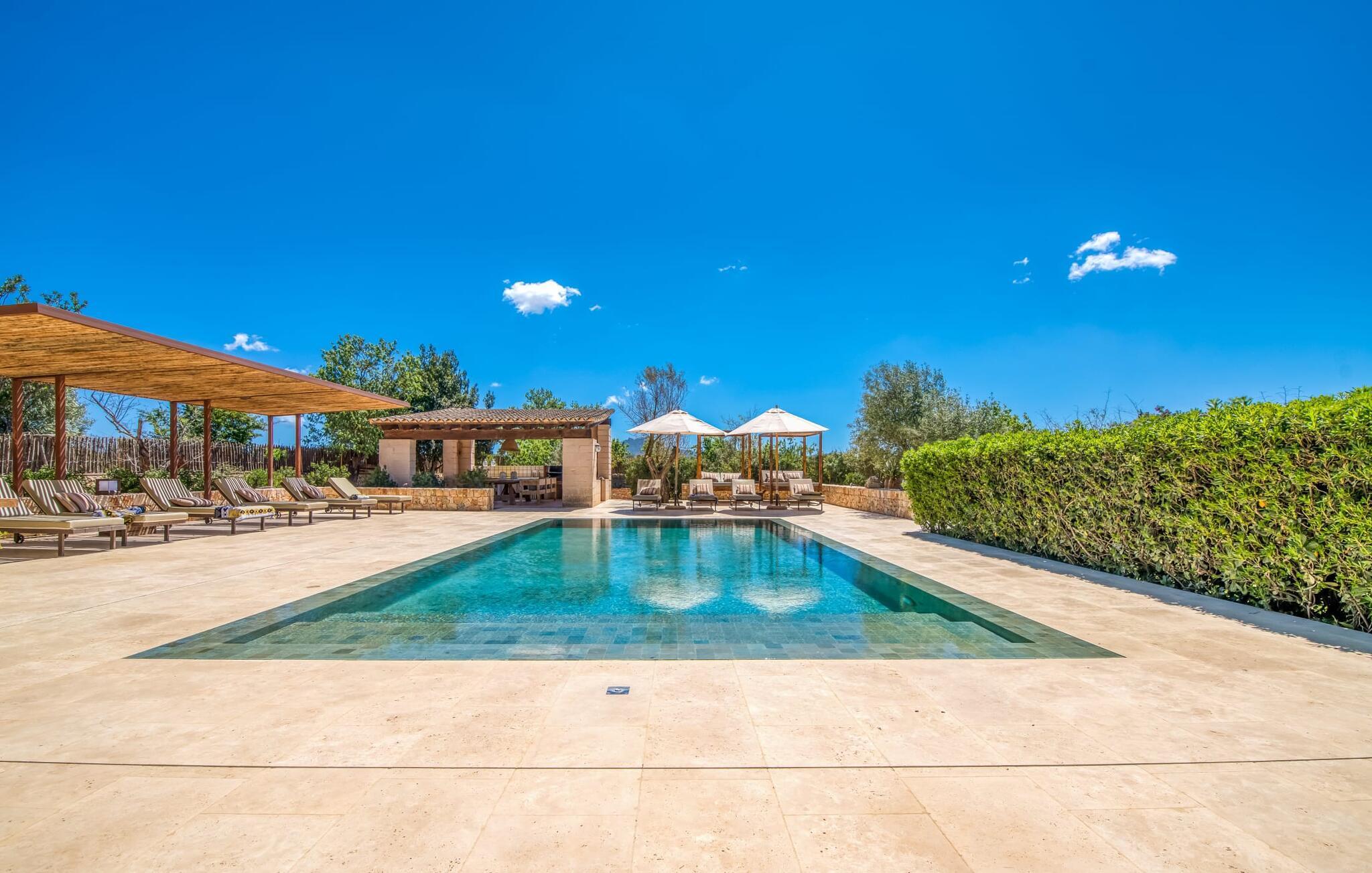 Denne finca "Es Lledoner Tres" med sin charmerende naturstensfacade ligger på en rummelig grund præget af palme-, fyrre- og oliventræer samt forskellige middelhavsplanter. Dette er et feriehus i Fincallorca. Den private terrasse er ideel til at spise udendørs eller slappe af på den udendørs sofa. Liggestole er tilgængelige, og det nærliggende grillområde er perfekt til aftengrill. Det fælles udendørsområde byder på naturlig skygge under træerne med gynger, en balinesisk seng og et picnicbord. Højdepunktet er det smukke poolområde med en bred trappe for nem adgang, flere liggestole og to dagsenge. Det rustikke poolhus med siddepladser og udendørs køkken er et ideelt sted for uforglemmelige øjeblikke. Ejerne bor på ejendommen med deres kat og to hunde, men poolen er kun for gæster. Indenfor har den åbne stue og spisestue med et fuldt udstyret tekøkken lyse vægge, højt til loftet med synlige bjælker og hyggelige træmøbler. De tre soveværelser med to badeværelser sikrer fuldstændig privatliv. Den nærliggende "Es Lledoner Dos" (EMI326) gør det til et ideelt valg for to familier, der rejser sammen. Omkring 13 km fra Mallorcas østkyst ligger fincaen på en afsondret beliggenhed og er omgivet af smukke træer. På grund af sin beliggenhed tæt på vejen er forskellige destinationer let tilgængelige. Den smukke havnepromenade i Portocolom, hvor du vil finde gode barer, restauranter og supermarkeder, ligger 20 minutter væk i bil. Restauranter og butikker kan også findes i nærliggende Felanitx (4 km). For længere shoppingture er Manacor (17 km) et godt valg. Efter 20 til 30 minutter kan du også nå nogle strande.