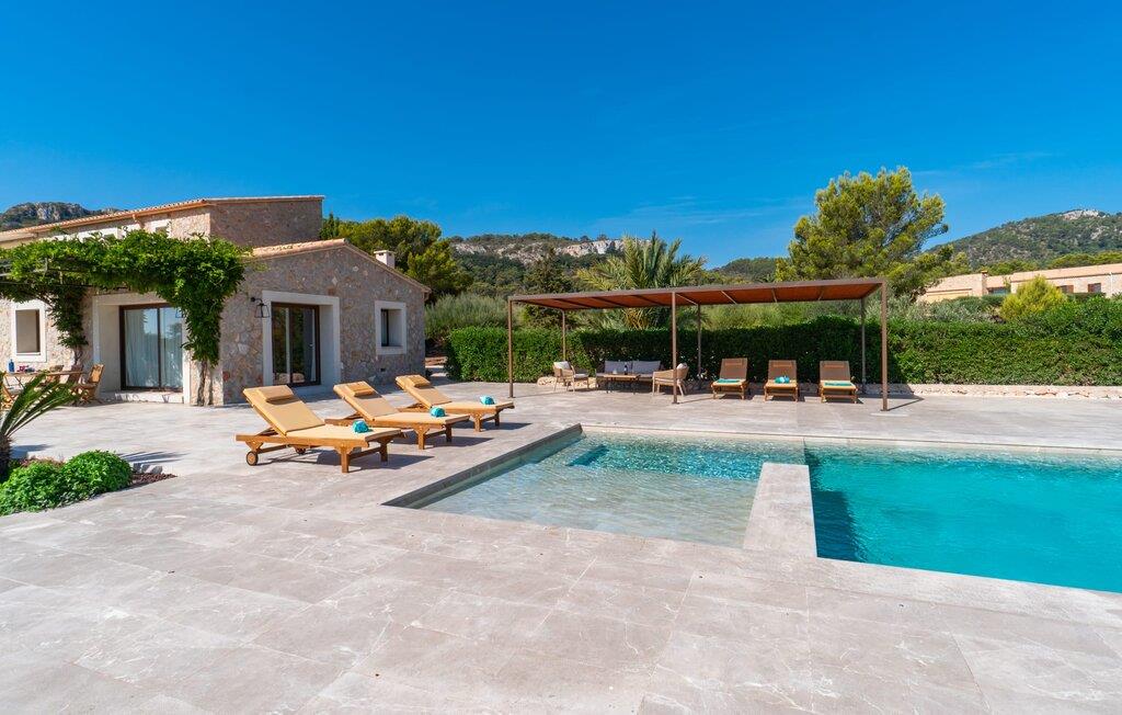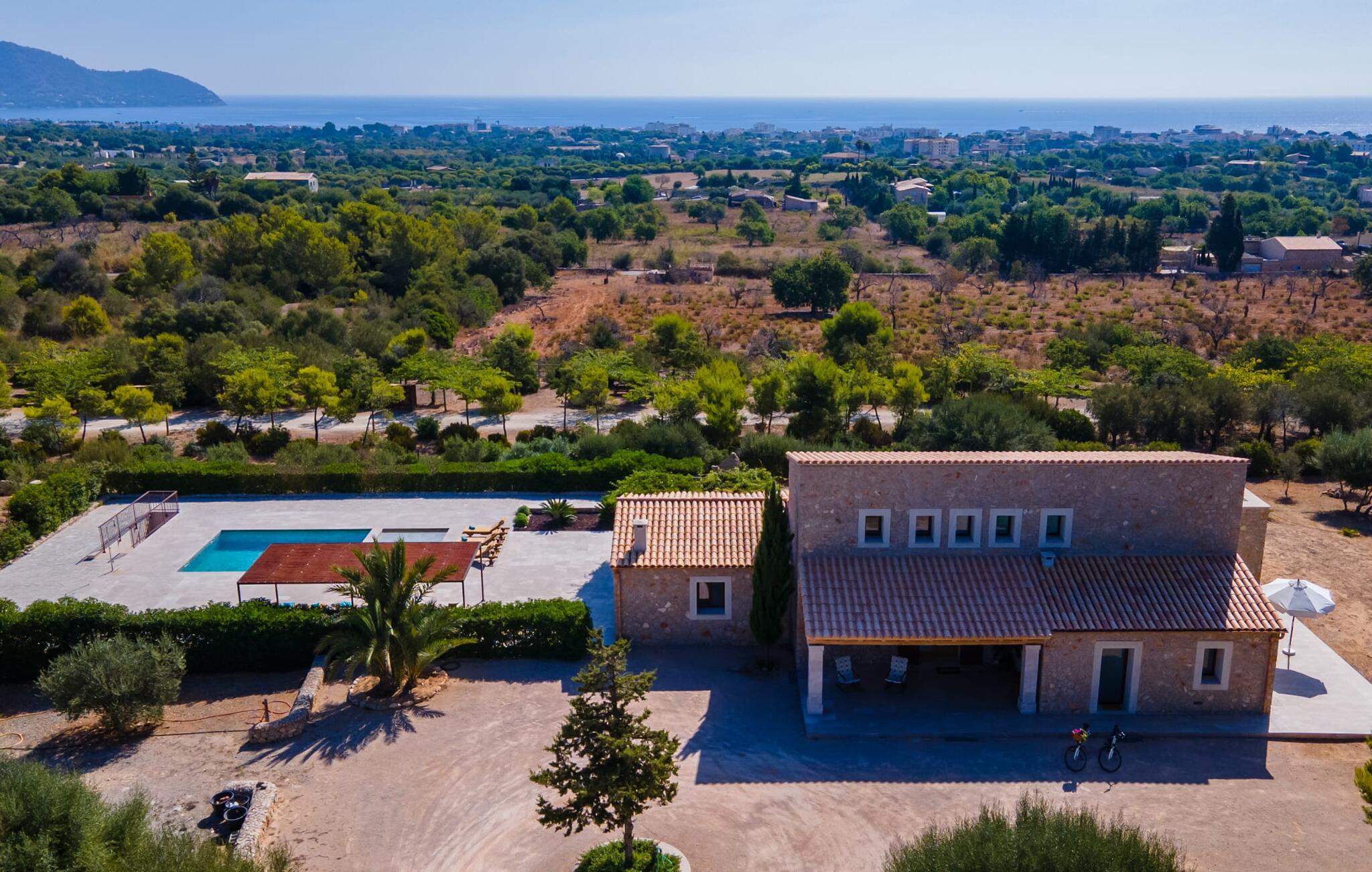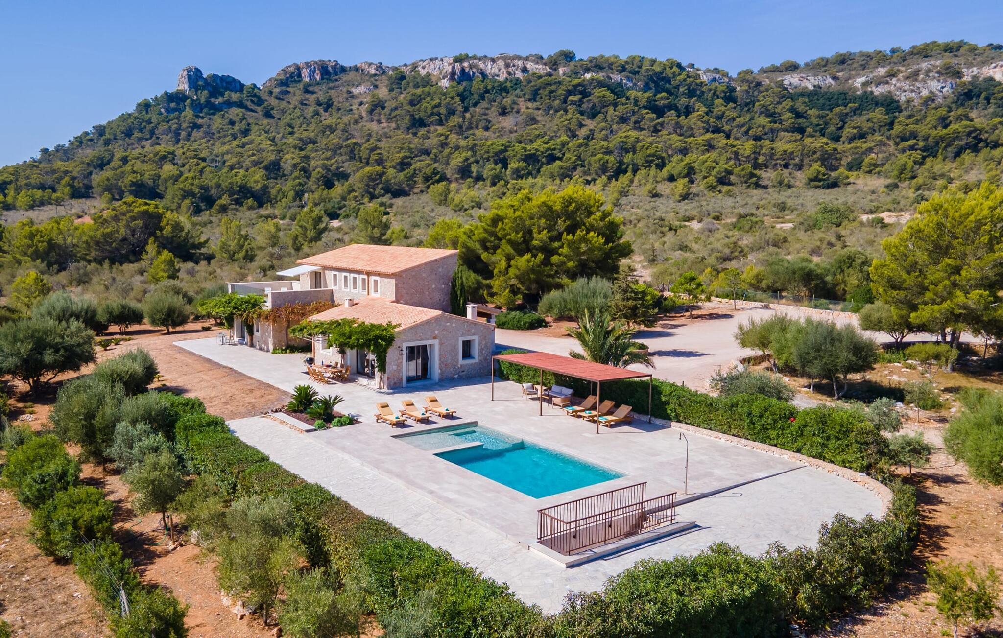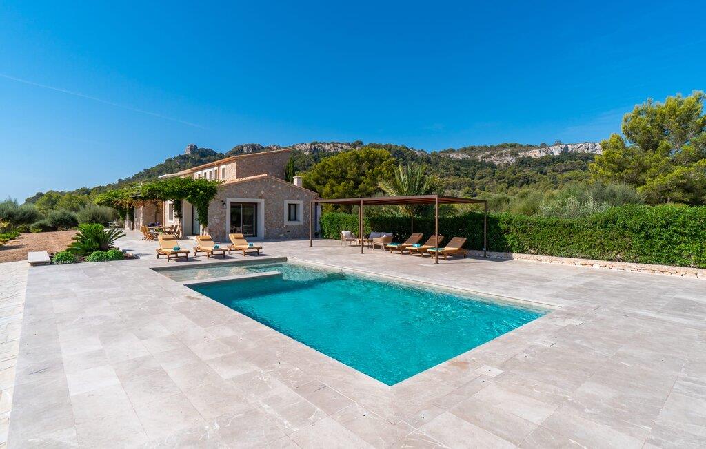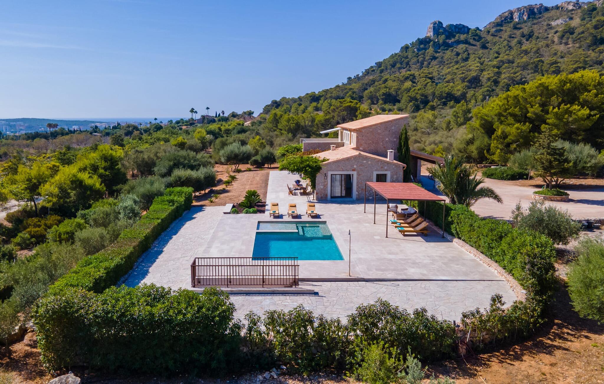 Beliggende i det maleriske landskab nær Mallorcas østkyst tilbyder naturstensfincaen "Es Llorer de na Penyal" et roligt tilflugtssted for jeres ferie. Fra den elegante poolterrasse kan I nyde en vidunderlig udsigt over det blidt bølgende landskab. Den rummelige, lavvandede pool er let tilgængelig og har kvalitets liggestole til solbadning og en slående pergola til afslapning i skyggen. Solterrassen flyder problemfrit ind i en smuk spiseplads og giver naturlig skygge til vidunderlige grillaftener, suppleret med subtil udendørs belysning, der beriger stemningen. Brede glasskydedøre giver masser af naturligt lys ind i den åbne stue-spisestue, hvilket skaber en harmonisk blanding af indendørs og udendørs rum. Det stilrene design med træmøbler af høj kvalitet og smagfulde naturmaterialer skaber en varm og indbydende atmosfære. I stueetagen finder I to charmerende dobbeltværelser, hver med eget badeværelse og gæstetoilet. Over. Der er et rummeligt soveværelse med påklædningsværelse og stort badeværelse. Den tilstødende terrasse byder på en betagende udsigt over havet. Både soveværelserne og opholdsstuen er udstyret med aircondition, mens hele huset har gulvvarme, hvilket sikrer jeres komfort under hele jeres ophold. Fincaen er omgivet af natur i udkanten af Son Servera nær Mallorcas østkyst. Der er et supermarked 1 km derfra. Feriestedet Cala Millor med sin sandstrand ligger 2 km væk; Son Servera Golfklub ligger 7,5 km derfra. Andre smukke strande kan nås inden for 10-15 minutter i bil.