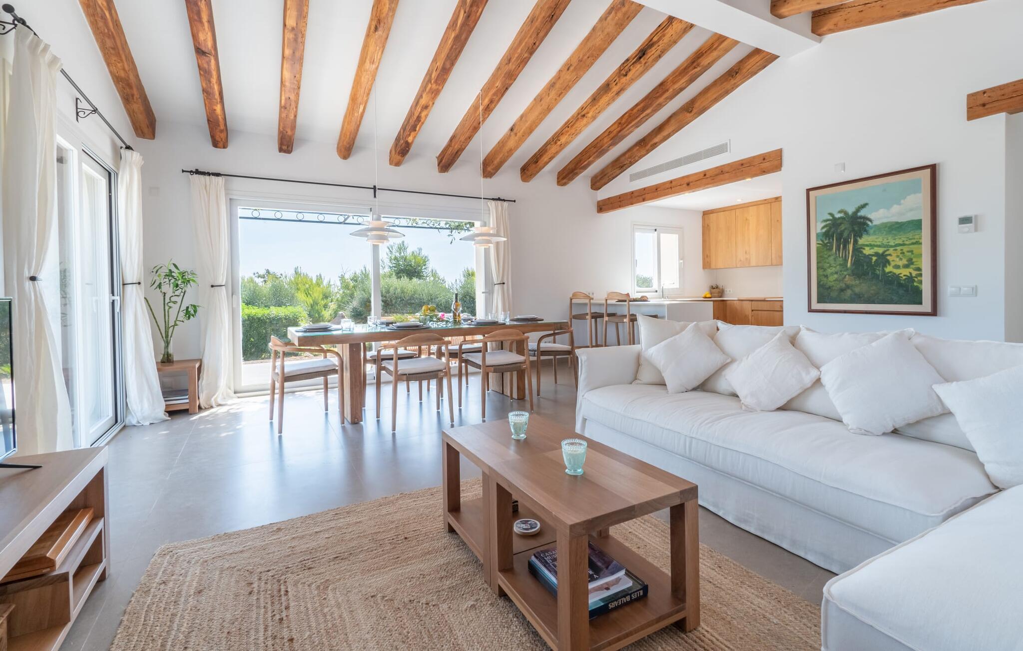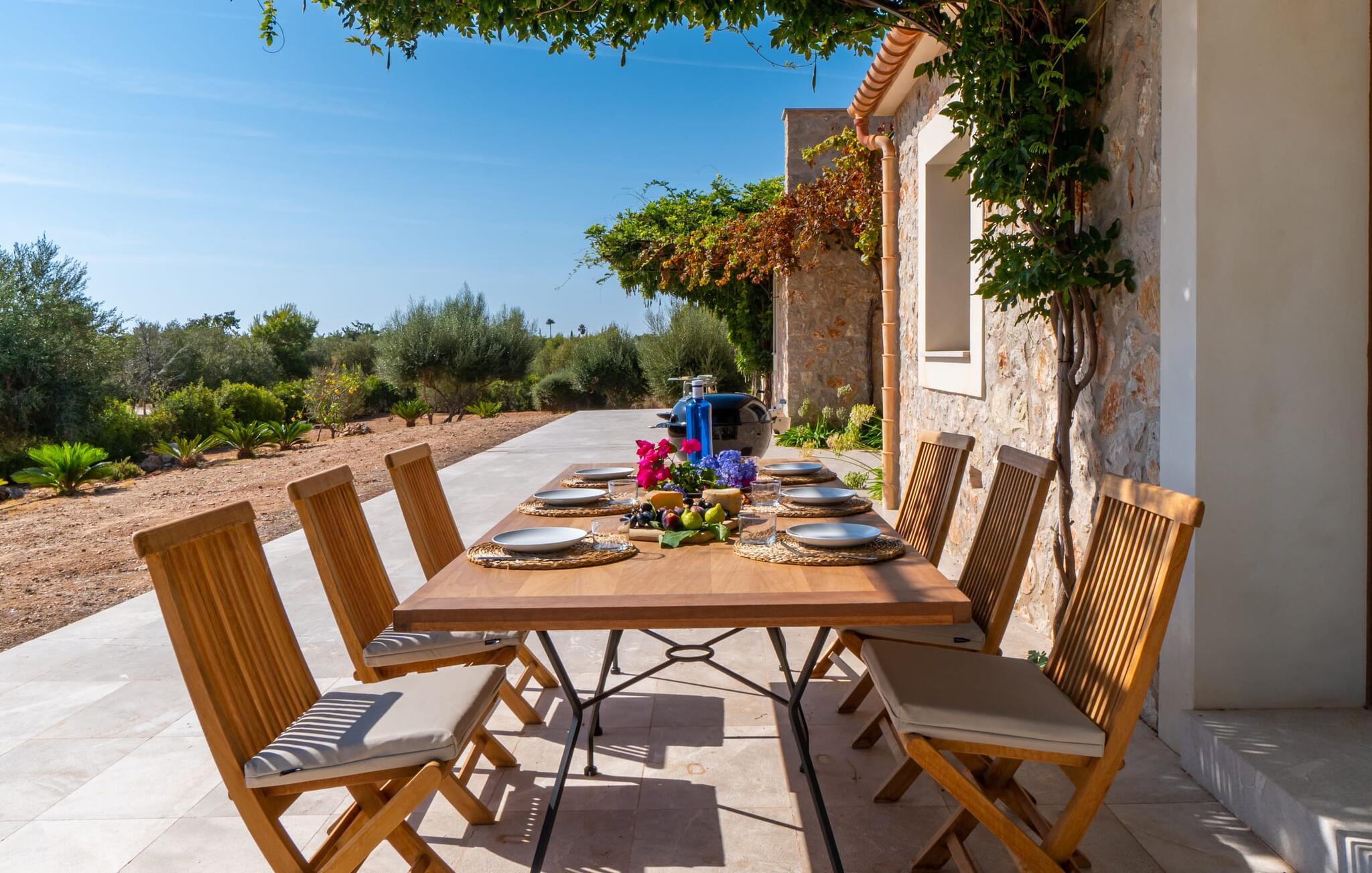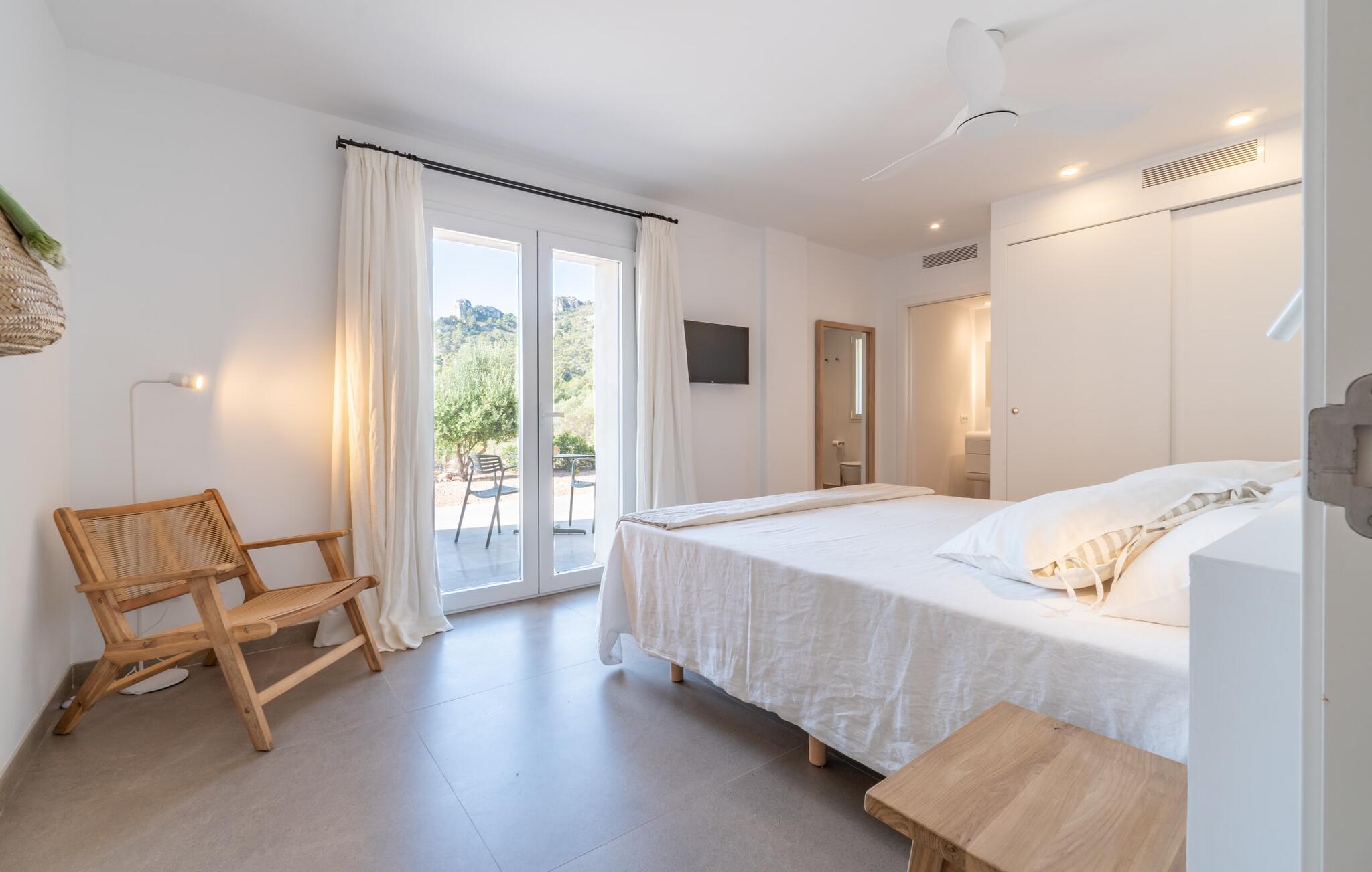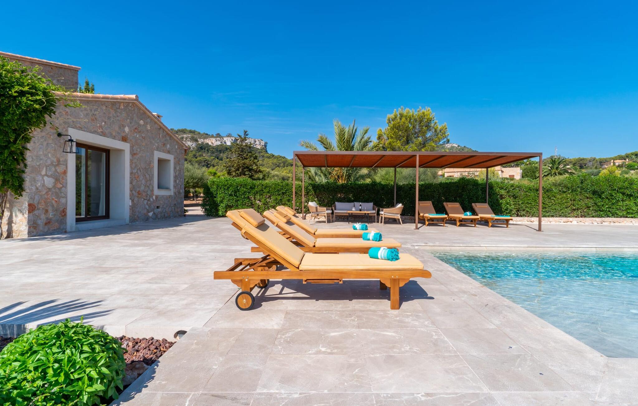 Beliggende i det maleriske landskab nær Mallorcas østkyst tilbyder naturstensfincaen "Es Llorer de na Penyal" et roligt tilflugtssted for jeres ferie. Fra den elegante poolterrasse kan I nyde en vidunderlig udsigt over det blidt bølgende landskab. Den rummelige, lavvandede pool er let tilgængelig og har kvalitets liggestole til solbadning og en slående pergola til afslapning i skyggen. Solterrassen flyder problemfrit ind i en smuk spiseplads og giver naturlig skygge til vidunderlige grillaftener, suppleret med subtil udendørs belysning, der beriger stemningen. Brede glasskydedøre giver masser af naturligt lys ind i den åbne stue-spisestue, hvilket skaber en harmonisk blanding af indendørs og udendørs rum. Det stilrene design med træmøbler af høj kvalitet og smagfulde naturmaterialer skaber en varm og indbydende atmosfære. I stueetagen finder I to charmerende dobbeltværelser, hver med eget badeværelse og gæstetoilet. Over. Der er et rummeligt soveværelse med påklædningsværelse og stort badeværelse. Den tilstødende terrasse byder på en betagende udsigt over havet. Både soveværelserne og opholdsstuen er udstyret med aircondition, mens hele huset har gulvvarme, hvilket sikrer jeres komfort under hele jeres ophold. Fincaen er omgivet af natur i udkanten af Son Servera nær Mallorcas østkyst. Der er et supermarked 1 km derfra. Feriestedet Cala Millor med sin sandstrand ligger 2 km væk; Son Servera Golfklub ligger 7,5 km derfra. Andre smukke strande kan nås inden for 10-15 minutter i bil.