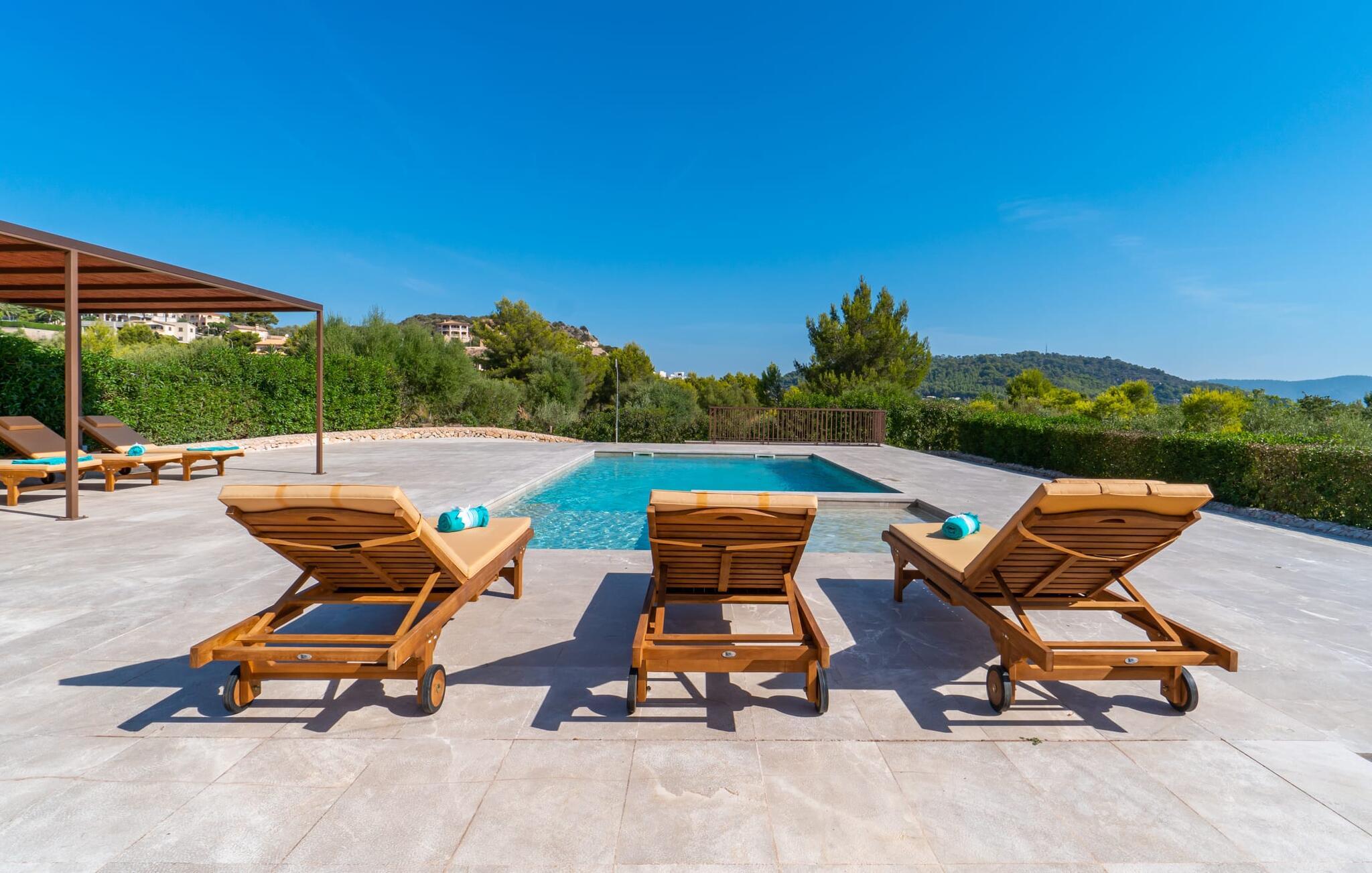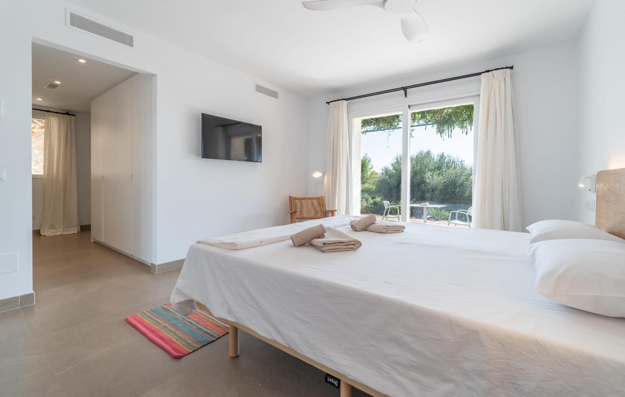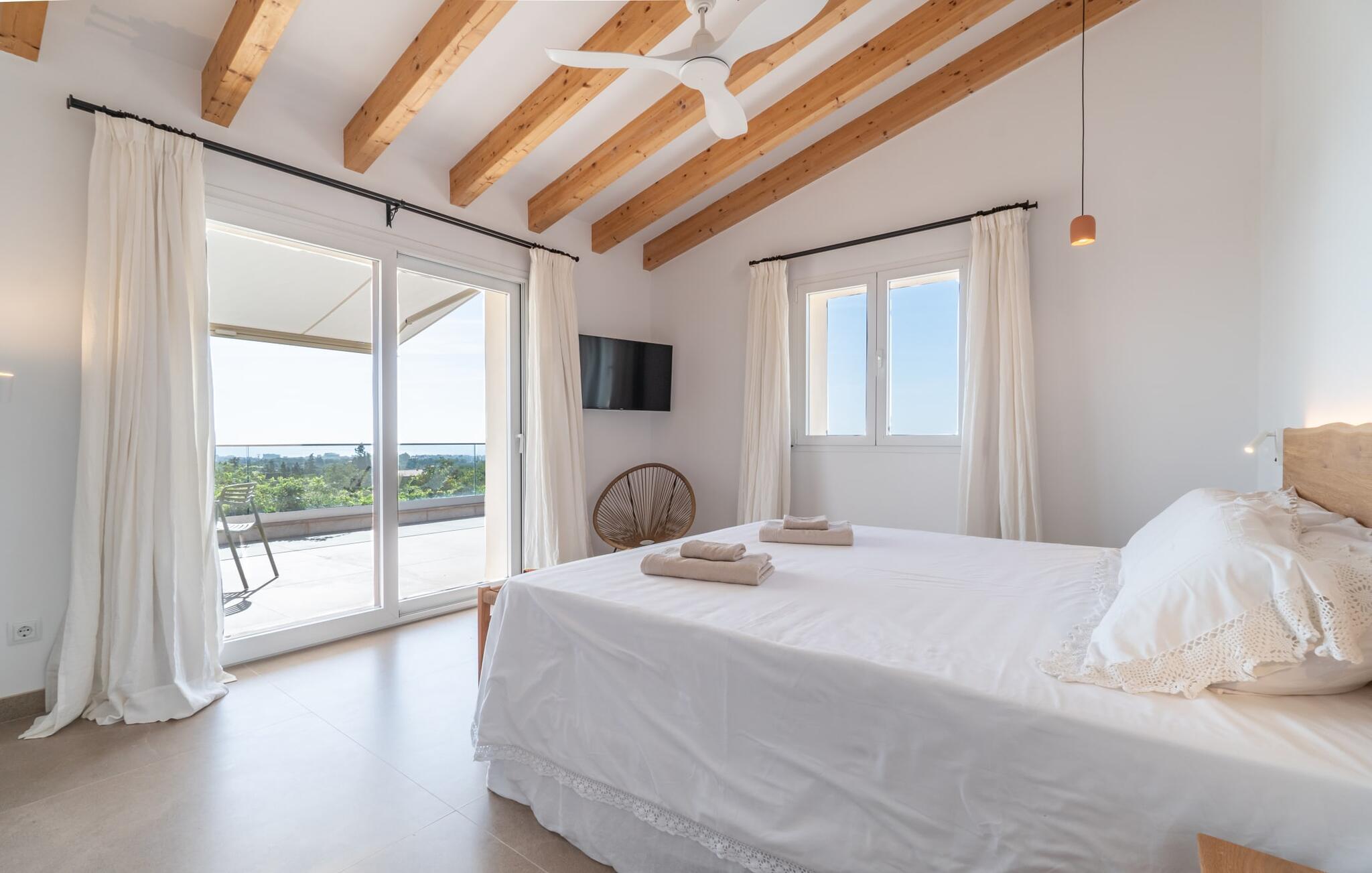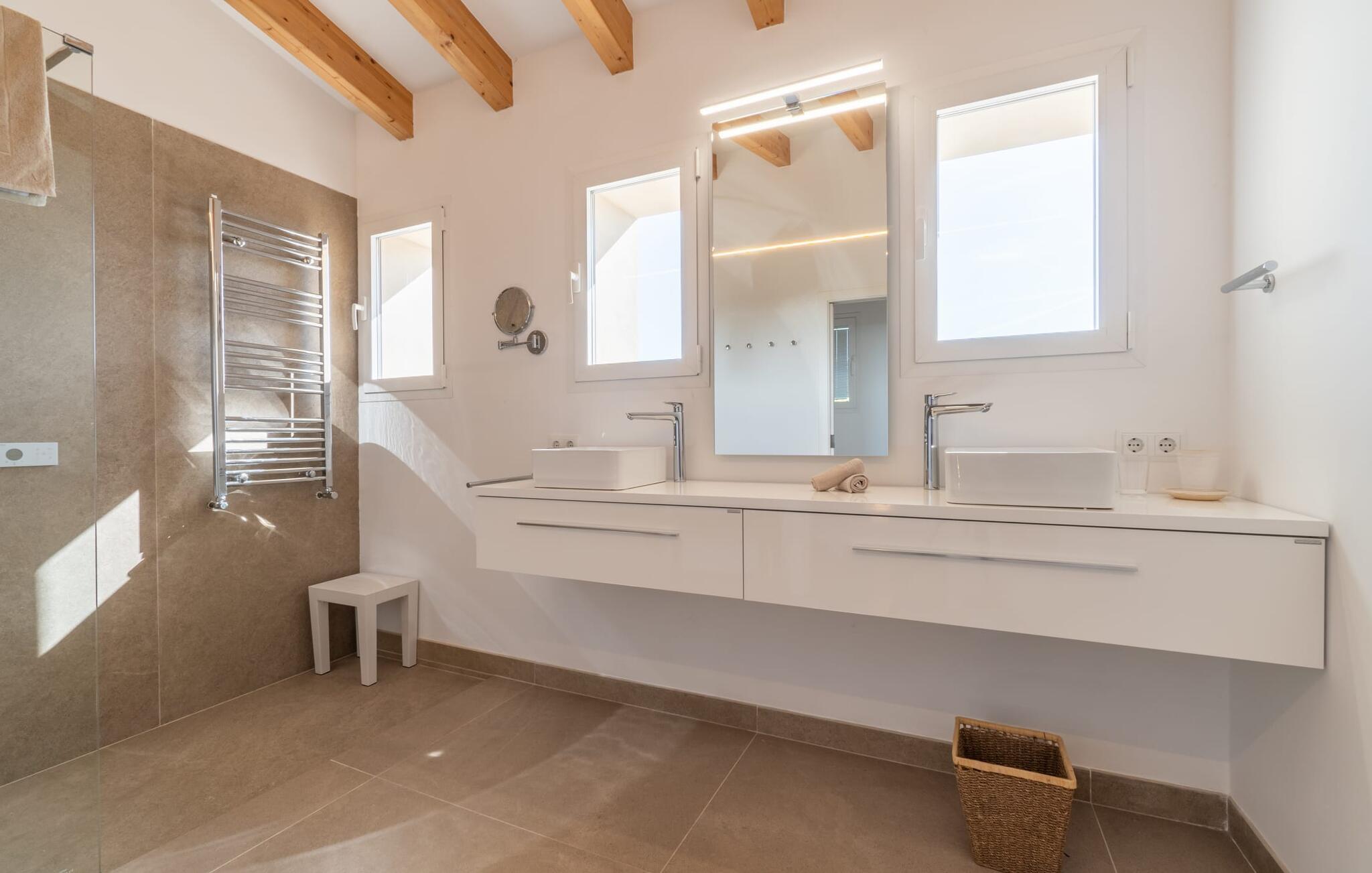 Beliggende i det maleriske landskab nær Mallorcas østkyst tilbyder naturstensfincaen "Es Llorer de na Penyal" et roligt tilflugtssted for jeres ferie. Fra den elegante poolterrasse kan I nyde en vidunderlig udsigt over det blidt bølgende landskab. Den rummelige, lavvandede pool er let tilgængelig og har kvalitets liggestole til solbadning og en slående pergola til afslapning i skyggen. Solterrassen flyder problemfrit ind i en smuk spiseplads og giver naturlig skygge til vidunderlige grillaftener, suppleret med subtil udendørs belysning, der beriger stemningen. Brede glasskydedøre giver masser af naturligt lys ind i den åbne stue-spisestue, hvilket skaber en harmonisk blanding af indendørs og udendørs rum. Det stilrene design med træmøbler af høj kvalitet og smagfulde naturmaterialer skaber en varm og indbydende atmosfære. I stueetagen finder I to charmerende dobbeltværelser, hver med eget badeværelse og gæstetoilet. Over. Der er et rummeligt soveværelse med påklædningsværelse og stort badeværelse. Den tilstødende terrasse byder på en betagende udsigt over havet. Både soveværelserne og opholdsstuen er udstyret med aircondition, mens hele huset har gulvvarme, hvilket sikrer jeres komfort under hele jeres ophold. Fincaen er omgivet af natur i udkanten af Son Servera nær Mallorcas østkyst. Der er et supermarked 1 km derfra. Feriestedet Cala Millor med sin sandstrand ligger 2 km væk; Son Servera Golfklub ligger 7,5 km derfra. Andre smukke strande kan nås inden for 10-15 minutter i bil.