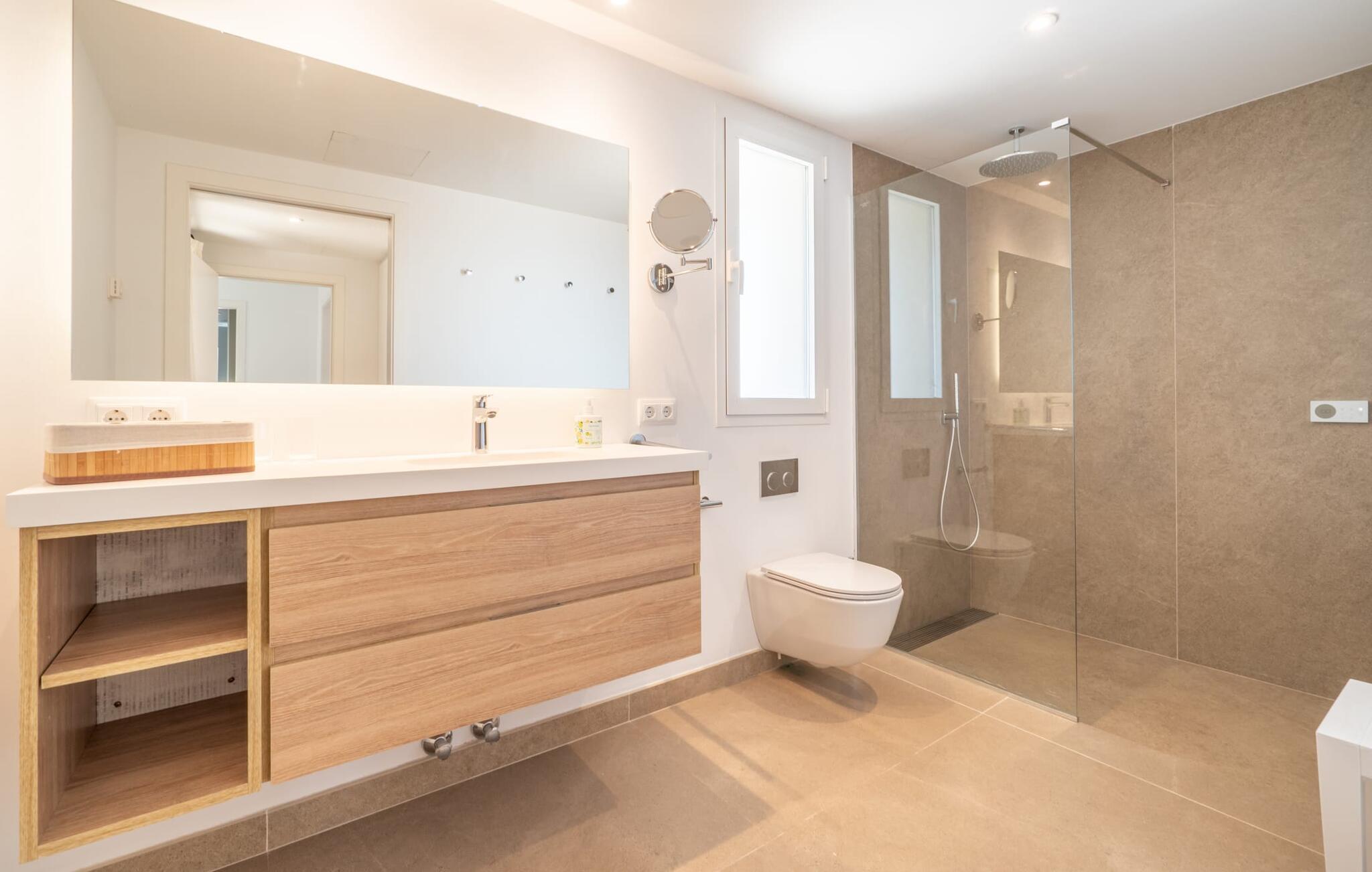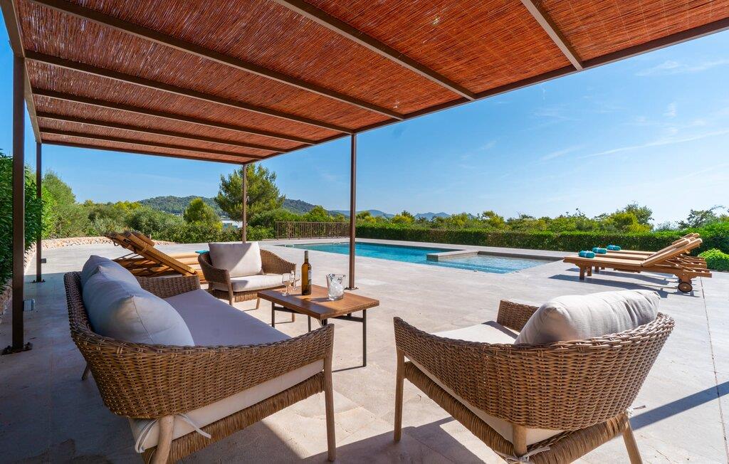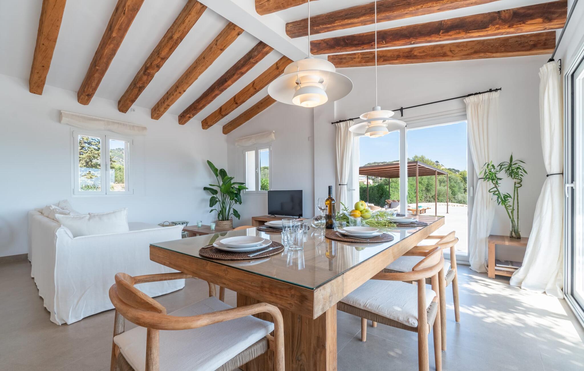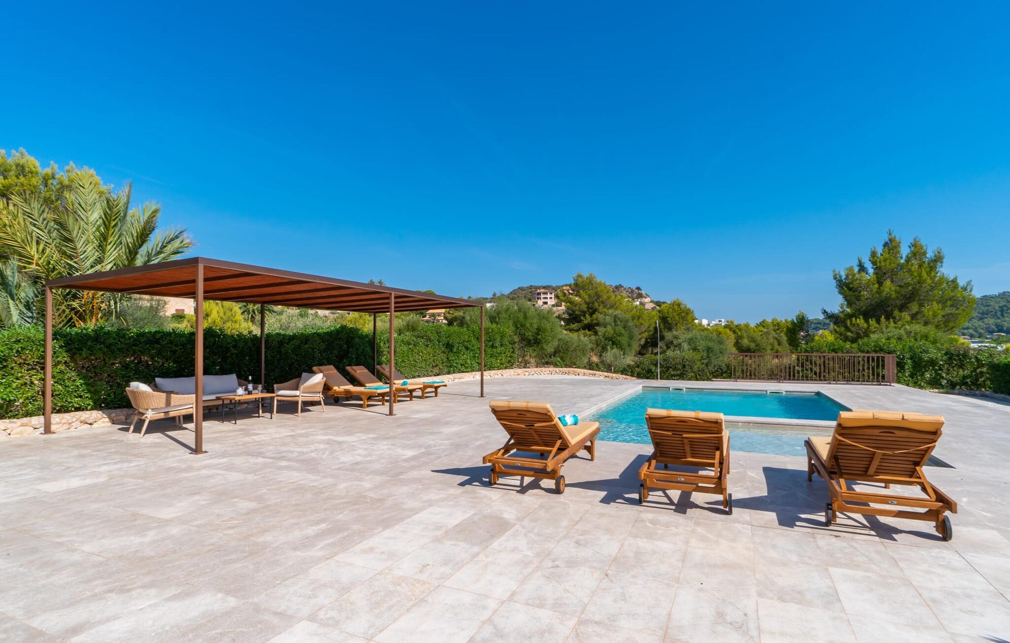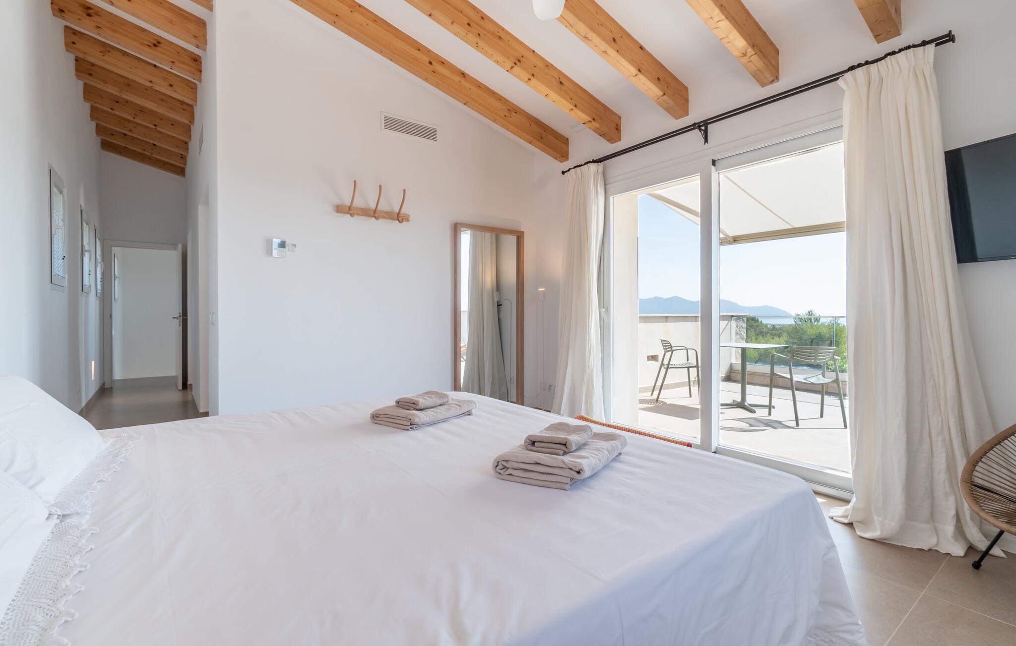 Beliggende i det maleriske landskab nær Mallorcas østkyst tilbyder naturstensfincaen "Es Llorer de na Penyal" et roligt tilflugtssted for jeres ferie. Fra den elegante poolterrasse kan I nyde en vidunderlig udsigt over det blidt bølgende landskab. Den rummelige, lavvandede pool er let tilgængelig og har kvalitets liggestole til solbadning og en slående pergola til afslapning i skyggen. Solterrassen flyder problemfrit ind i en smuk spiseplads og giver naturlig skygge til vidunderlige grillaftener, suppleret med subtil udendørs belysning, der beriger stemningen. Brede glasskydedøre giver masser af naturligt lys ind i den åbne stue-spisestue, hvilket skaber en harmonisk blanding af indendørs og udendørs rum. Det stilrene design med træmøbler af høj kvalitet og smagfulde naturmaterialer skaber en varm og indbydende atmosfære. I stueetagen finder I to charmerende dobbeltværelser, hver med eget badeværelse og gæstetoilet. Over. Der er et rummeligt soveværelse med påklædningsværelse og stort badeværelse. Den tilstødende terrasse byder på en betagende udsigt over havet. Både soveværelserne og opholdsstuen er udstyret med aircondition, mens hele huset har gulvvarme, hvilket sikrer jeres komfort under hele jeres ophold. Fincaen er omgivet af natur i udkanten af Son Servera nær Mallorcas østkyst. Der er et supermarked 1 km derfra. Feriestedet Cala Millor med sin sandstrand ligger 2 km væk; Son Servera Golfklub ligger 7,5 km derfra. Andre smukke strande kan nås inden for 10-15 minutter i bil.