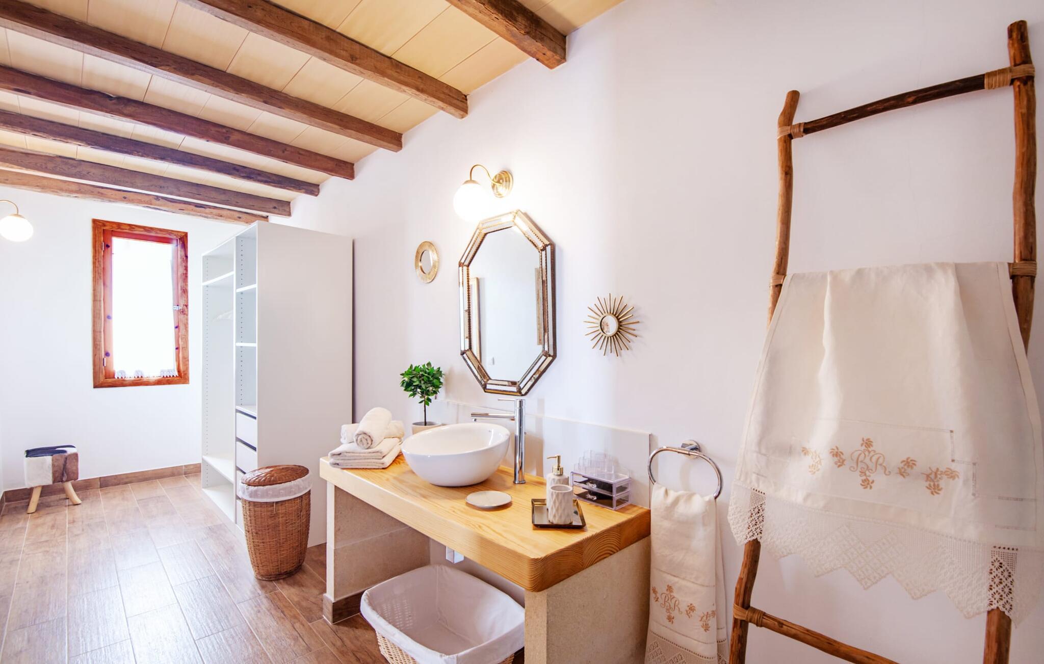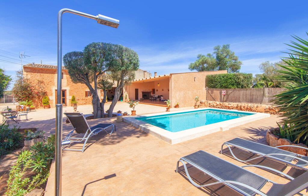 Roligt beliggende mellem Campos og Sa Ràpita, "Es Mateus" er det perfekte tilflugtssted for en familieferie eller en gruppe venner, der ønsker at tilbringe noget kvalitetstid sammen. Det alsidige udendørsområde har træer, der giver behagelig skygge i sommermånederne. Et gammelt mølletårn ved siden af den smukke pool giver nostalgisk charme og inviterer jer til at slappe af og slappe af. Et vidunderligt mødested er den overdækkede terrasse med grill og forskellige siddemuligheder, ideel til en aftengrill. Børn vil nyde legetøjet og gyngen til deres underholdning. Indenfor emmer fincaen af klassisk mallorcansk hygge. I stuen kan I slappe af i en behagelig sofa, måske se jeres yndlingsfilm eller nyde varmen fra en knitrende pejs. Spisebordet er perfekt til at spise sammen. Selvforplejning er en leg i det fuldt udstyrede køkken i typisk middelhavsstil. Soveværelset med køjeseng er let tilgængeligt fra stuen, mens yderligere to soveværelser, hver med dobbeltsenge - hvoraf det ene har eget badeværelse - giver plads nok til alle. Et andet fælles badeværelse sikrer komfort for alle. Dette funktionelle, enkle feriehus er fyldt med charmerende detaljer for unge og gamle at opdage, hvilket gør det til et virkelig indbydende sted for jeres næste ferie. En original mallorcansk atmosfære byder jer velkommen til fincaen "Es Mateus", beliggende i det sydlige Mallorca. Shopping eller besøg på det ugentlige marked i Campos, sportsaktiviteter i naturen, en dag på sandstranden Es Trenc - alt dette kan nås herfra på få minutter i bil.