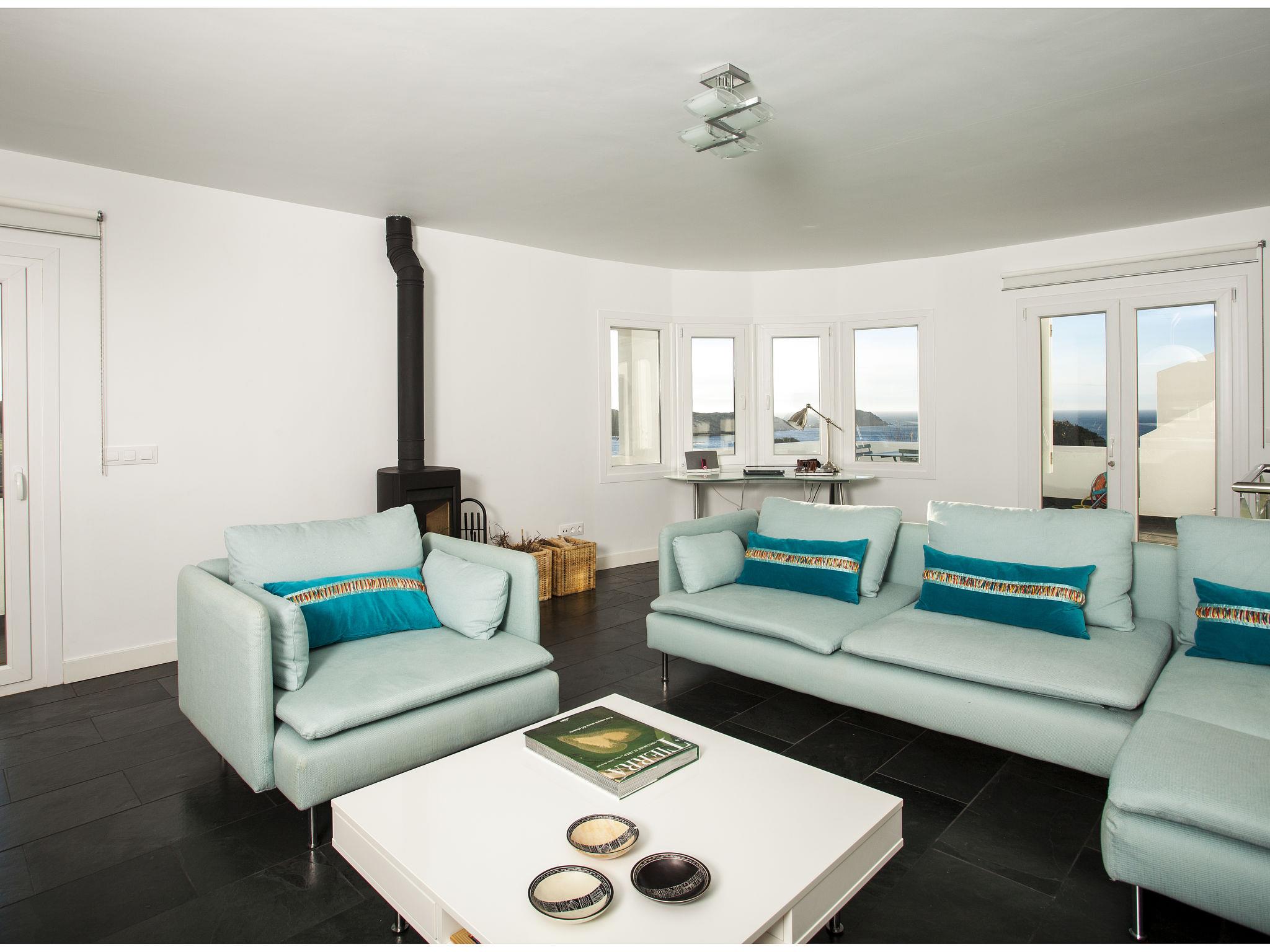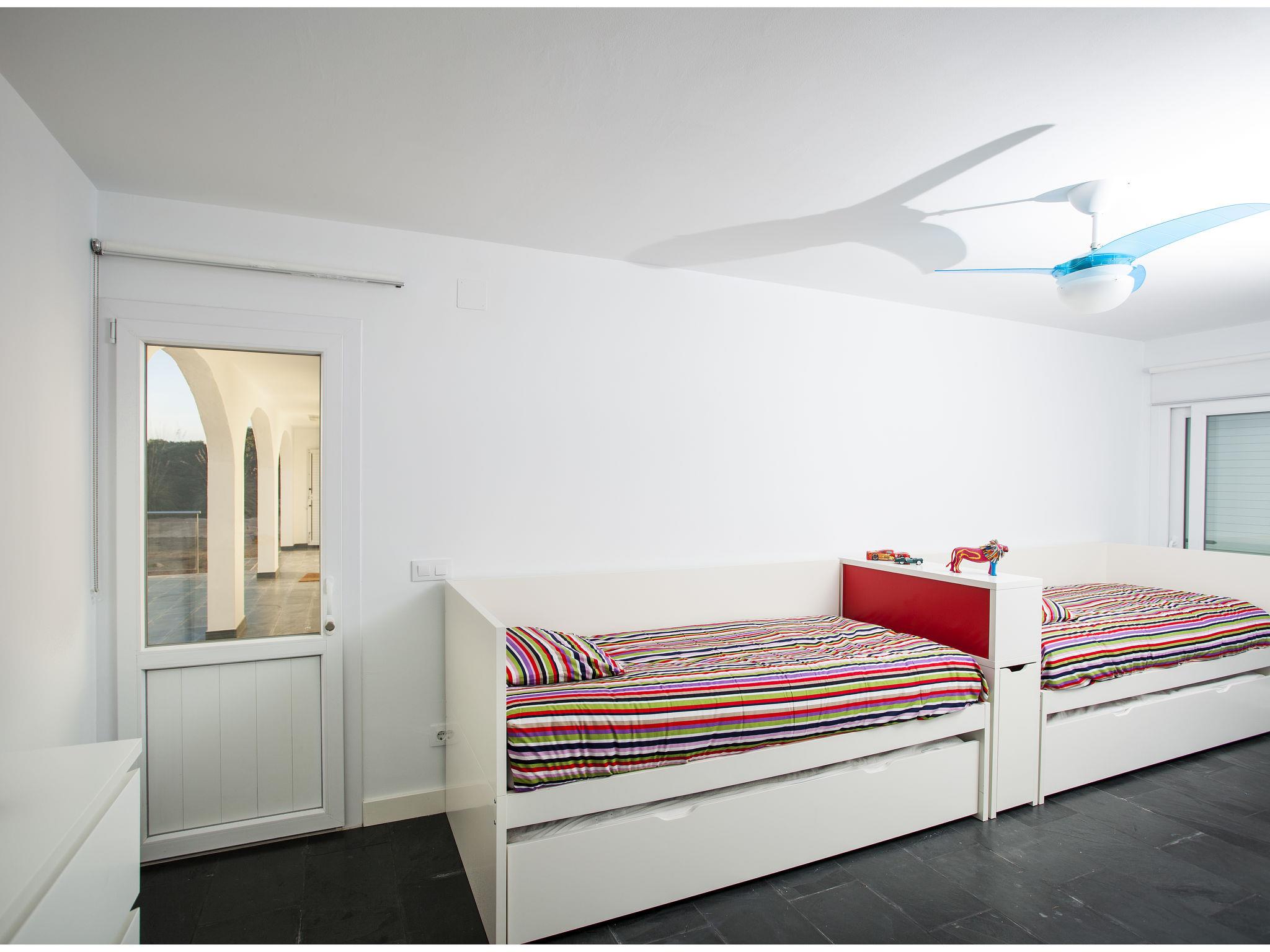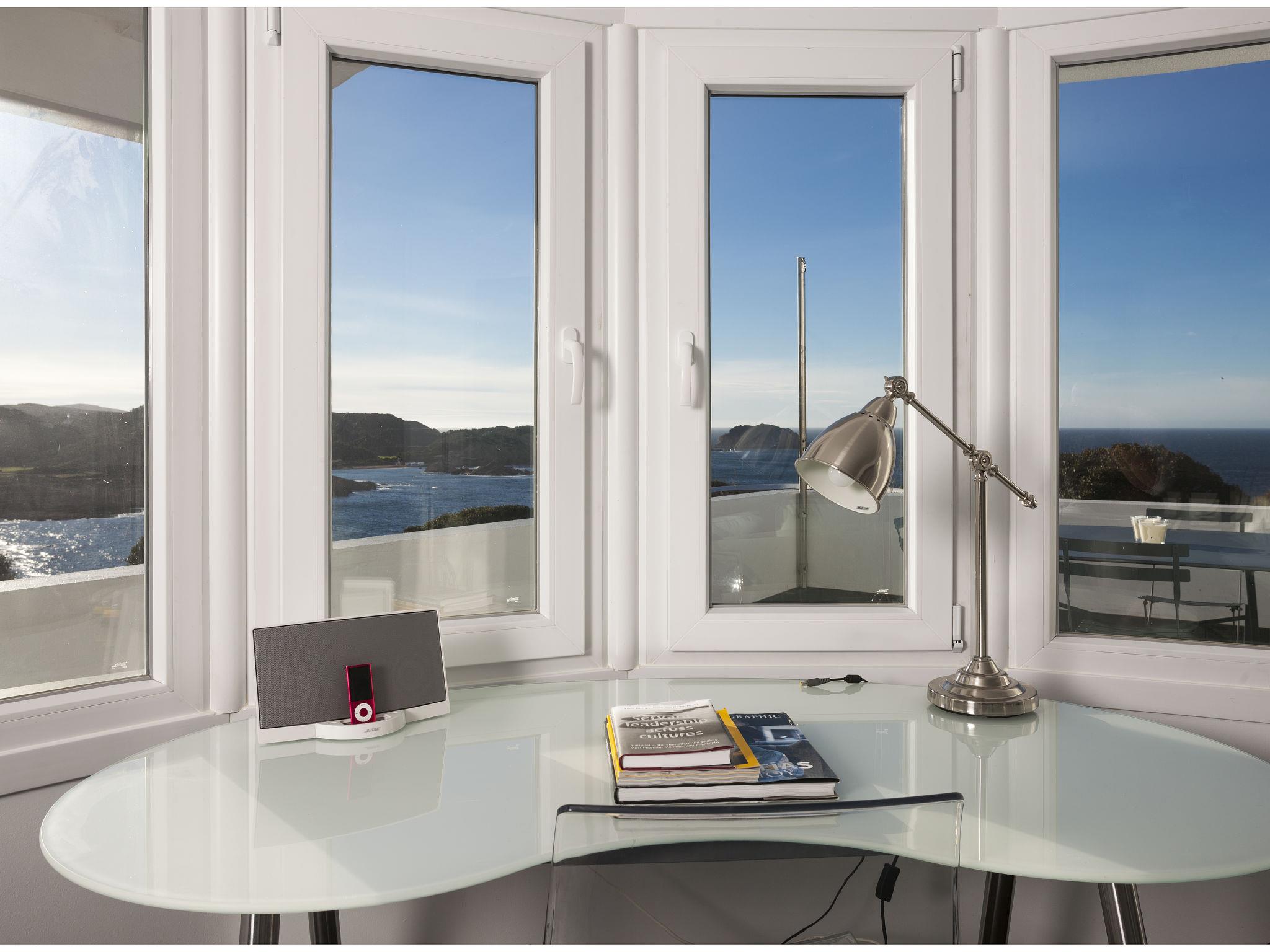 "Sa Blanca", 5-room villa 285 m2 on 2 levels. Object suitable for 8 adults. Spacious and bright, practical and comfortable furnishings: 3 double bedrooms, each room with 2 beds (90 cm, length 190 cm). Exit to the patio. 1 double bedroom with 1 french bed (1 x 150 cm, length 190 cm), shower/WC and fan. Exit to the patio. Bath/WC, sep. WC. Oil heating. Heating not available in all rooms. Upper floor: living/dining room with satellite TV, hi-fi system and gas heating. Exit to the balcony, to the terrace. Kitchen (oven, dishwasher, 4 ceramic glass hob hotplates, toaster, kettle, microwave, electric coffee machine). Natural stone floors. Patio. Terrace furniture. Very beautiful view of the sea. Facilities: washing machine, iron, children's high chair, baby cot for up to 2 year olds, hair dryer. Internet (WiFi, free). Parking at the house. Suitable for families. ET0369EM // Reg. Nr.: ESFCTU000007013000171642000000000000000000CE