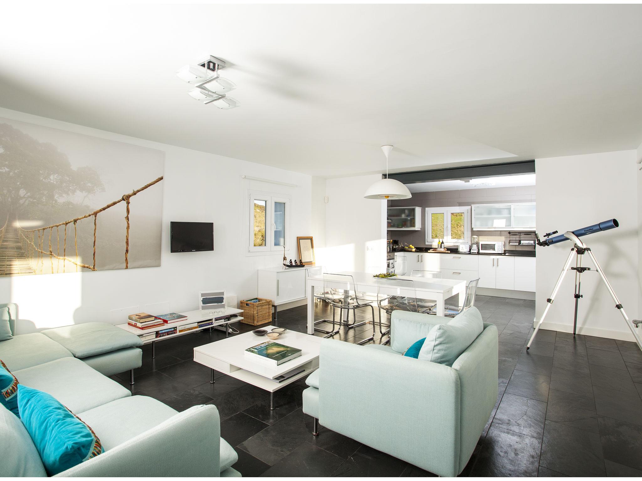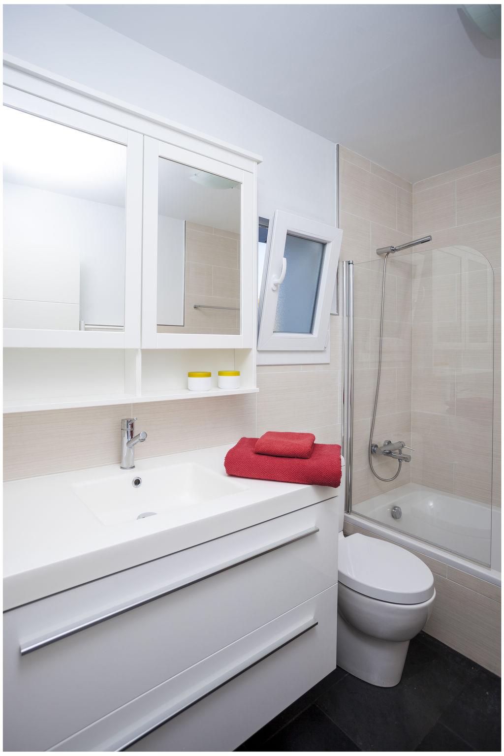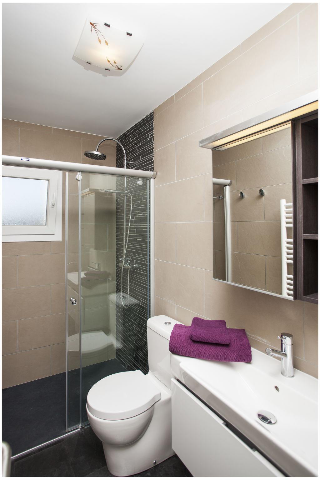 "Sa Blanca", 5-room villa 285 m2 on 2 levels. Object suitable for 8 adults. Spacious and bright, practical and comfortable furnishings: 3 double bedrooms, each room with 2 beds (90 cm, length 190 cm). Exit to the patio. 1 double bedroom with 1 french bed (1 x 150 cm, length 190 cm), shower/WC and fan. Exit to the patio. Bath/WC, sep. WC. Oil heating. Heating not available in all rooms. Upper floor: living/dining room with satellite TV, hi-fi system and gas heating. Exit to the balcony, to the terrace. Kitchen (oven, dishwasher, 4 ceramic glass hob hotplates, toaster, kettle, microwave, electric coffee machine). Natural stone floors. Patio. Terrace furniture. Very beautiful view of the sea. Facilities: washing machine, iron, children's high chair, baby cot for up to 2 year olds, hair dryer. Internet (WiFi, free). Parking at the house. Suitable for families. ET0369EM // Reg. Nr.: ESFCTU000007013000171642000000000000000000CE
