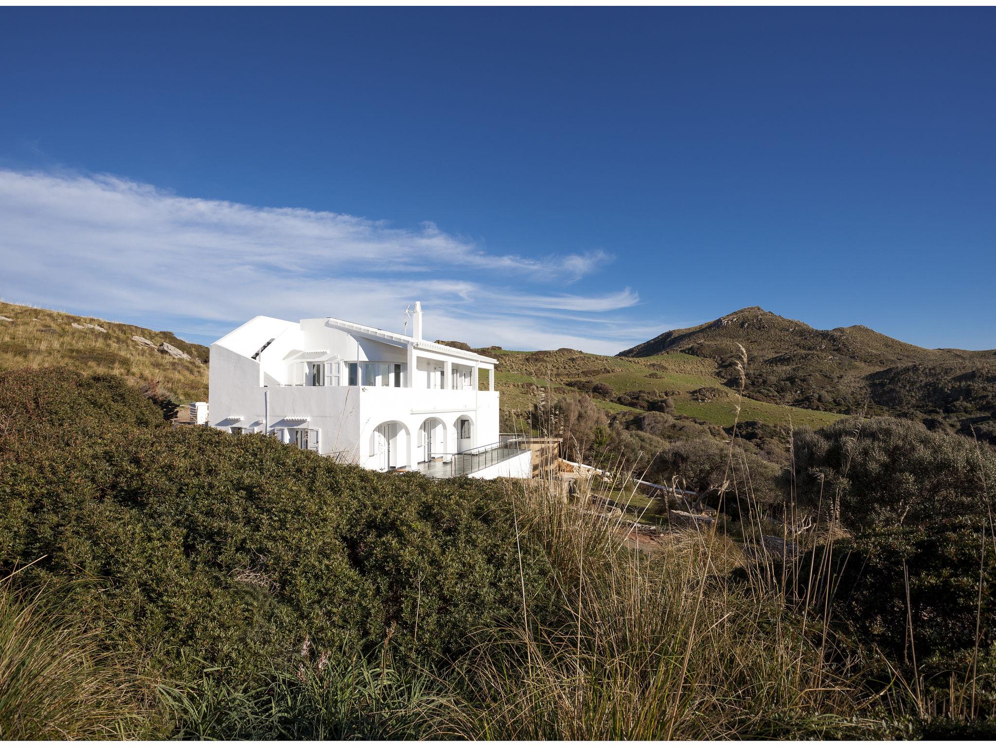 Es Mercadal: Cosy, comfortable, historical villa "Sa Blanca", 2 storeys, surrounded by trees and fields. In a secluded, quiet, sunny position, 30 m from the edge of the forest, 300 m from the sea, 600 m from the beach. Private: property, garden, natural garden, swimming pool angular (3 x 3 m, seasonal availability: 01.Mar. - 31.Oct.). In the house: internet access, WiFi, washing machine. Parking at the house. Shop 5 km, grocery 5 km, supermarket 5 km, restaurant 5 km, bar 5 km, bakery 5 km, café 5 km, pedestrian zone 5 km, bus stop "ES Mercadal" 5 km, sandy beach 550 m. Sports harbour 6 km, walking paths from the house 50 m. Nearby attractions: El Toro, s'Arenal des Castell, Far de Cap de Cavalleria. Hiking paths: El Toro, Camí de Cavalls, L'albufera des grau. Please note: suitable for families, suitable for seniors. Object suitable for 8 adults. The owner does not accept any youth groups. Loading and unloading of baggage is possible at the holiday house. Airfield 30 km from the property.