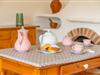 Køkken(komfur, kaffemaskine), soveværelse(enkeltseng), soveværelse(dobbeltseng), badeværelse, ovn, mikrobølgeovn, opvaskemaskine , køle-fryseskab, badekar, håndvask, toilet, have, havemøbler, 4x solstole, grill, Parasol, swimmingpool, barneseng, barnestol