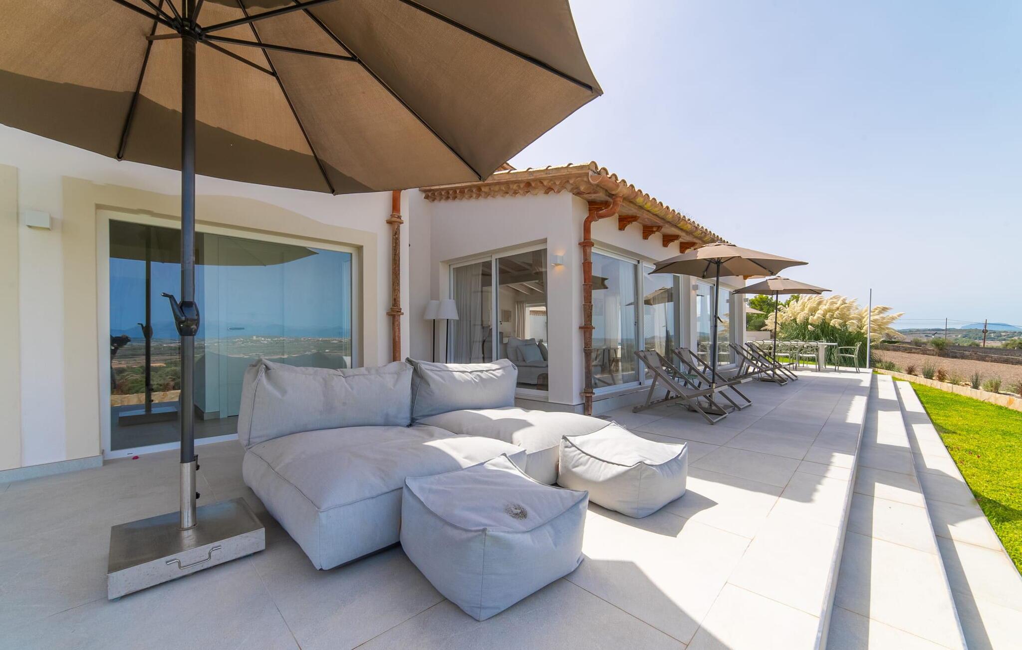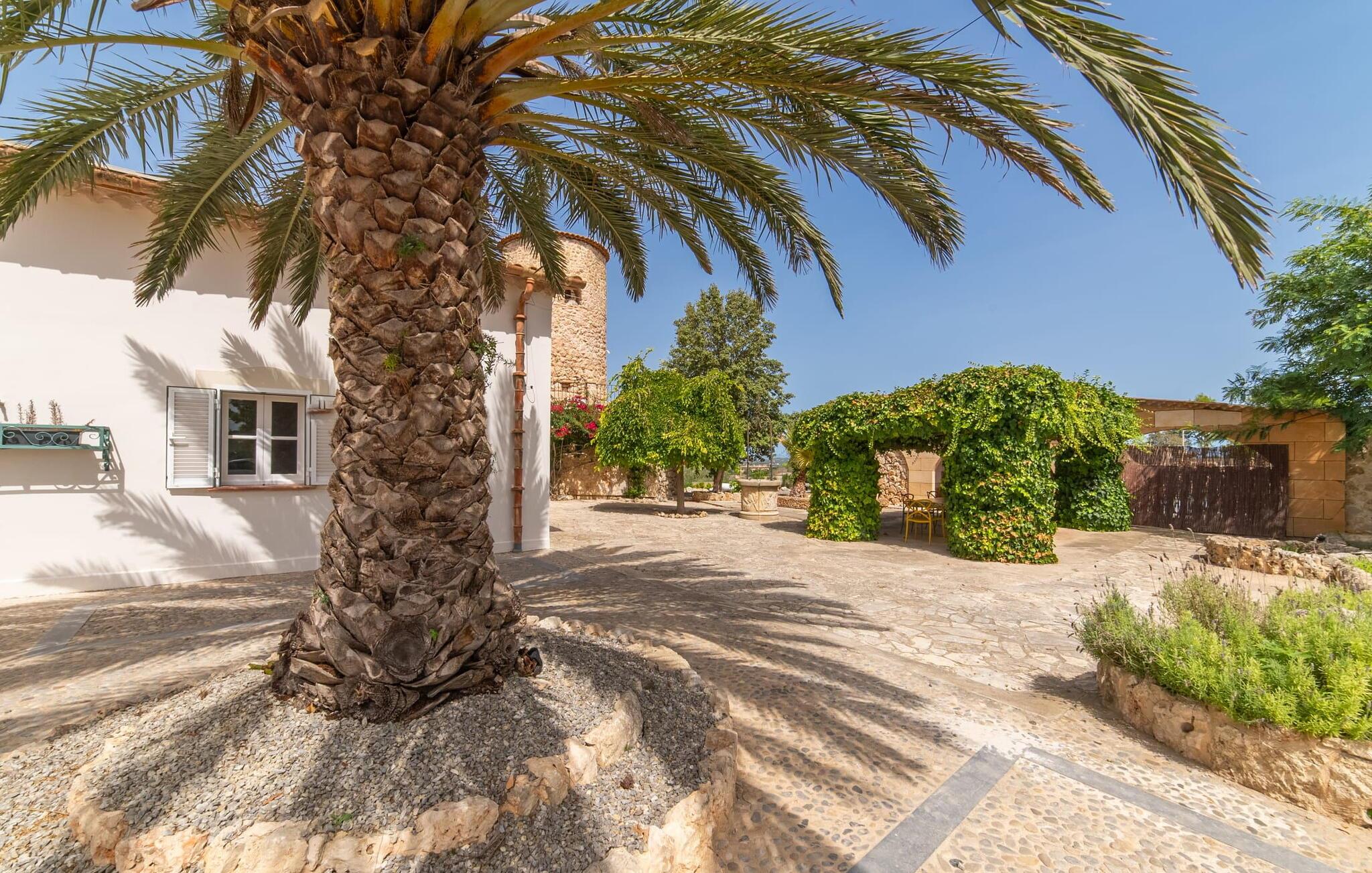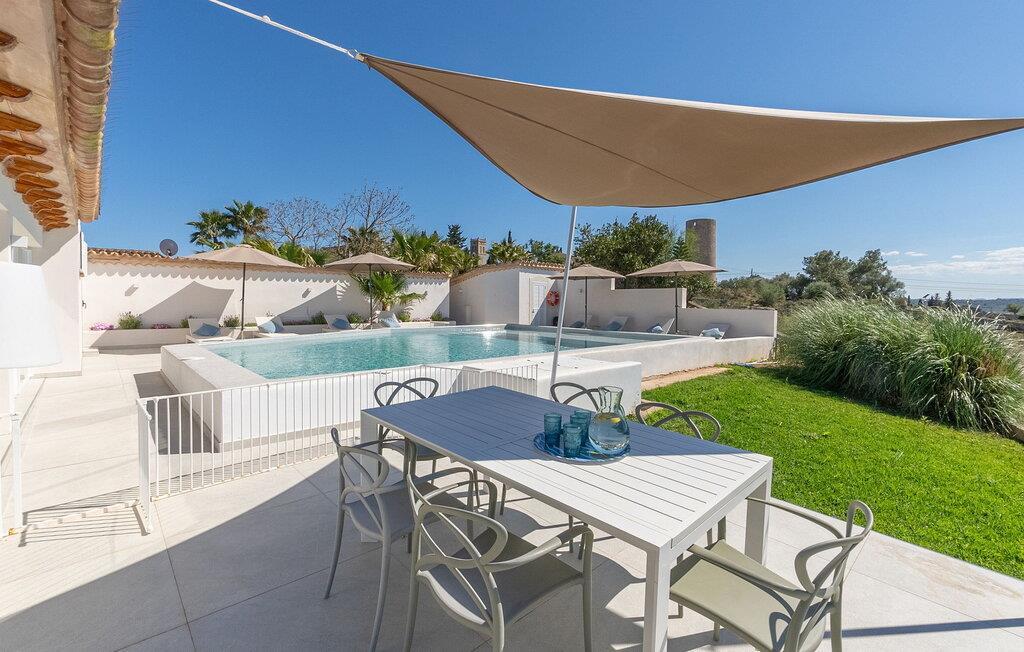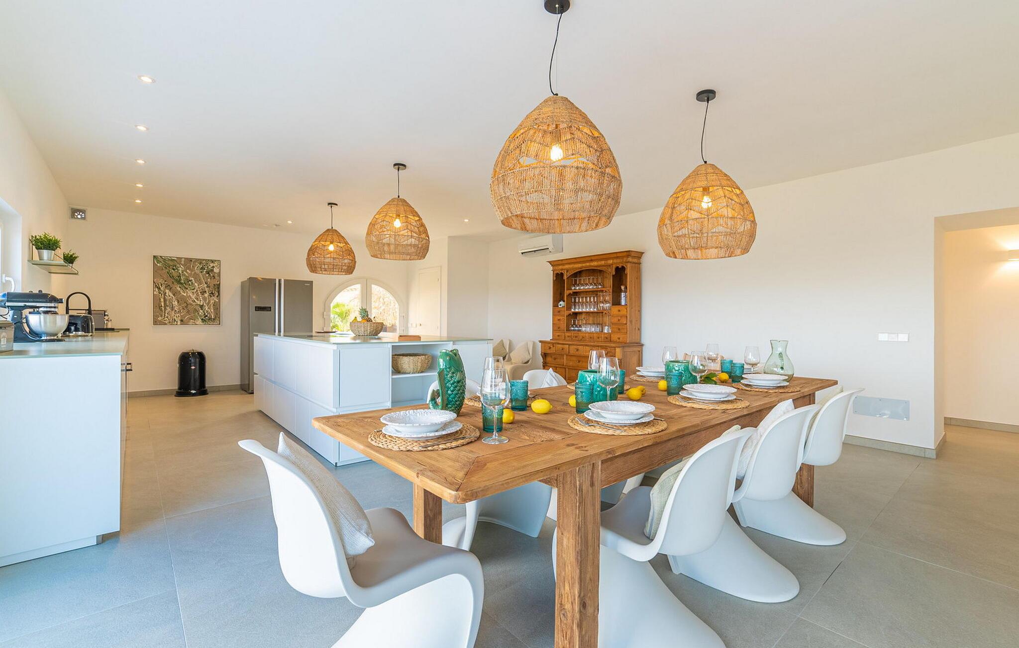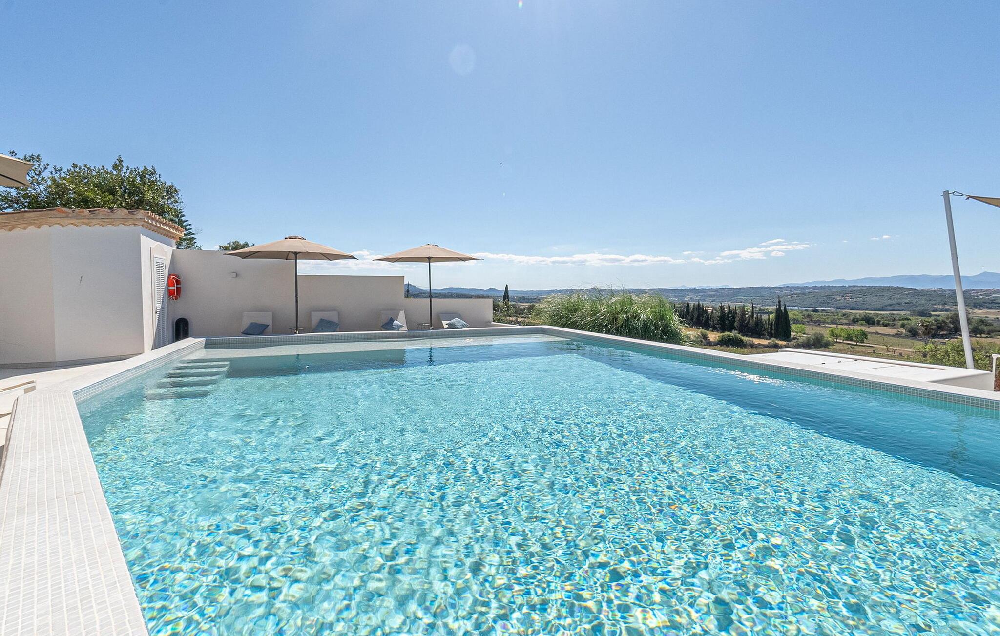 Stuehuset "Es Moli Ariany" er et usædvanligt æstetisk feriehus på Mallorca. Med hensyn til beliggenhed, indretning og stil opfylder denne ejendom selv de højeste standarder. En flot hvid stil præger poolen og solterrassen, hvorfra man kan nyde en vidunderlig udsigt over det brede landskab mod Tramuntana. Smukke daybeds og komfortable liggestole er tilgængelige for afslappende timer under middelhavshimlen. I kan også nyde den smukke udsigt fra den 11 m lange pool. I kan forberede selskabelige grillaftener i det overdækkede udekøkken med grill. Bagefter kan I spise lige ved siden af ved det dekorative langbord under det naturlige tag. Sportsentusiaster vil elske basketballkurven og tennisbanen. Det oprindelige mølletårn med en omgivende terrasse var dygtigt iscenesat. Bag flere gulv-til-loft-vinduer afslører interiøret et trendy, eftertrykkeligt stilrent boligmiljø. Lyse, harmoniske farver kendetegner det elegante interiør, som består af smarte møbler og originalt tilbehør. Alt finder en fremragende plads i den behagelige rummelighed. Den store stue byder ikke kun på maksimal komfort, men også en fantastisk udsigt over husets vidder. I det store køkken, fuldt udstyret til en høj standard med Bora-induktion, luksuriøse elektriske apparater, stenbordplader osv., kan I tilberede måltider sammen og spise ved det store spisebord med en fantastisk udsigt over Tramuntana-bjergene. Tre komfortable dobbeltværelser (med luksuriøse boxmadrasser), to af dem med private badeværelser, og et andet badeværelse fuldender husets indbydende rum. Der er yderligere to helt uafhængige områder, hver med et soveværelse med dobbeltseng, en privat opholdsstue med stilfuld morgenmadsbar, et moderne brusebad og et privat udendørs område til afslapning. Dette hus er ideelt for en større gruppe rejsende, der værdsætter en god beliggenhed, omfattende faciliteter af høj kvalitet og et højt niveau af stil og privatliv. Dette stilfulde bondehus på Mallorca ligger i den vestlige udkant af landsbyen Ariany i centrum af øen. Den meget velmoderniserede historiske feriebolig med et smukt udendørsområde og en sensationel panoramaudsigt ligger også i en attraktiv infrastrukturel beliggenhed: I kan gøre jeres indkøb i Santa Margalida (8 km) og Petra (7 km), den nærmeste strand er Can Picafort - er ca. 17 km væk. Bemærk venligst, at denne ejendom ikke accepterer ungdomsgrupper eller polterabender. En ungdomsgruppe på denne ejendom består af personer på 25 år eller derunder. Book ikke denne ejendom, hvis I er en ungdomsgruppe eller en polterabendgruppe, da jeres reservation vil blive afvist, når den er booket, hvilket også kan være tilfældet ved ankomst til ejendommen eller under jeres ophold, og I vil ikke modtage en refusion.