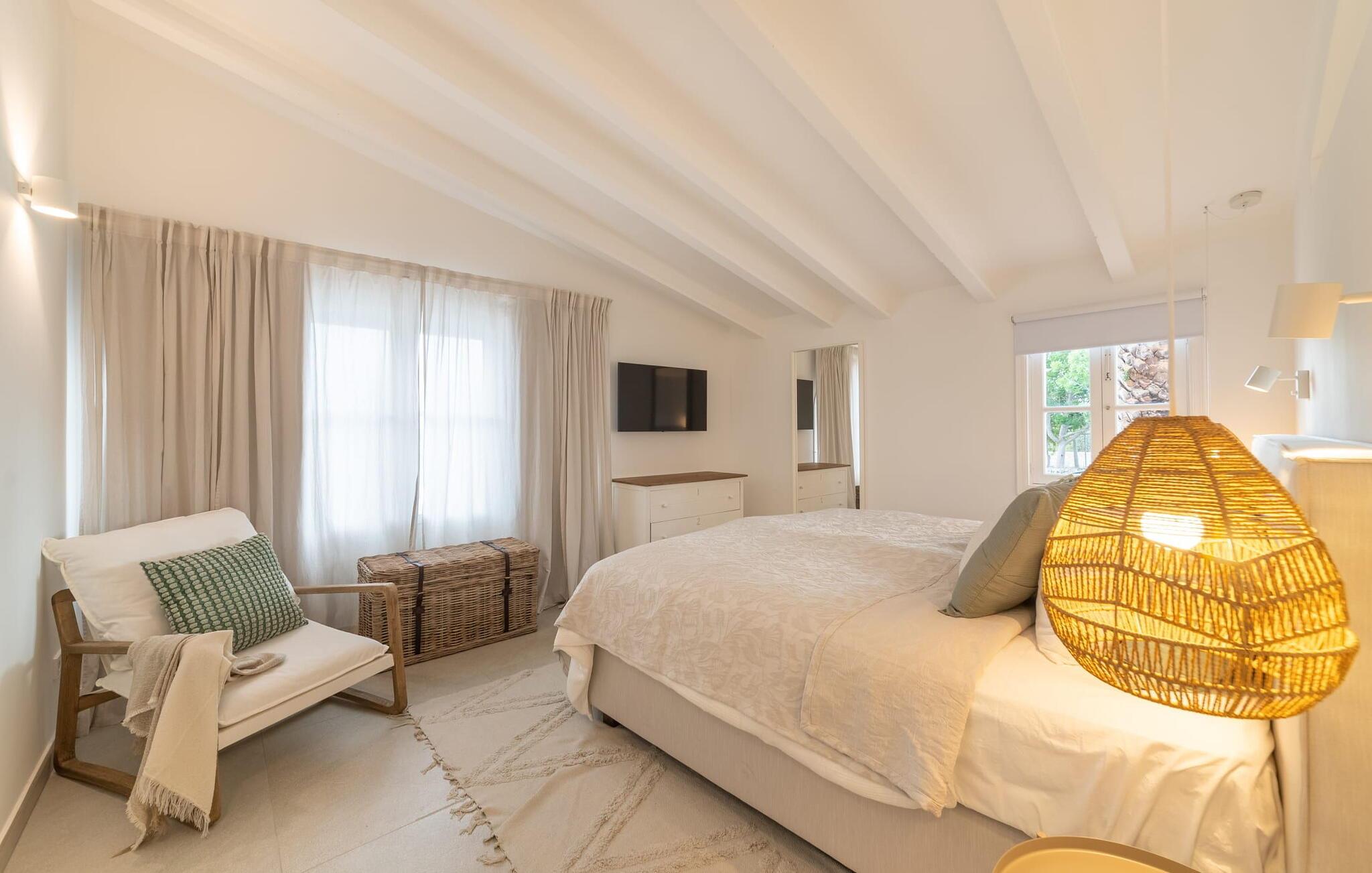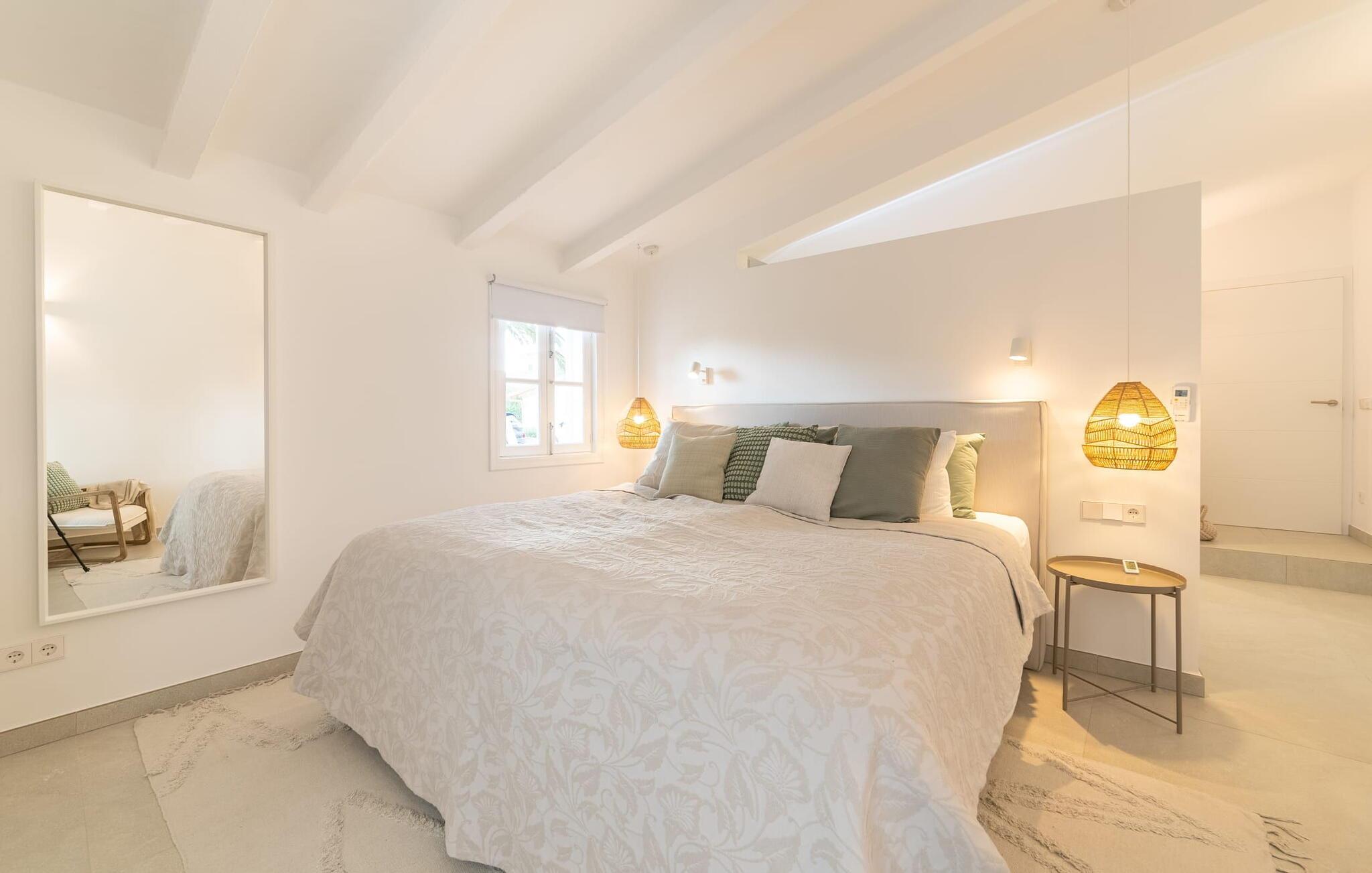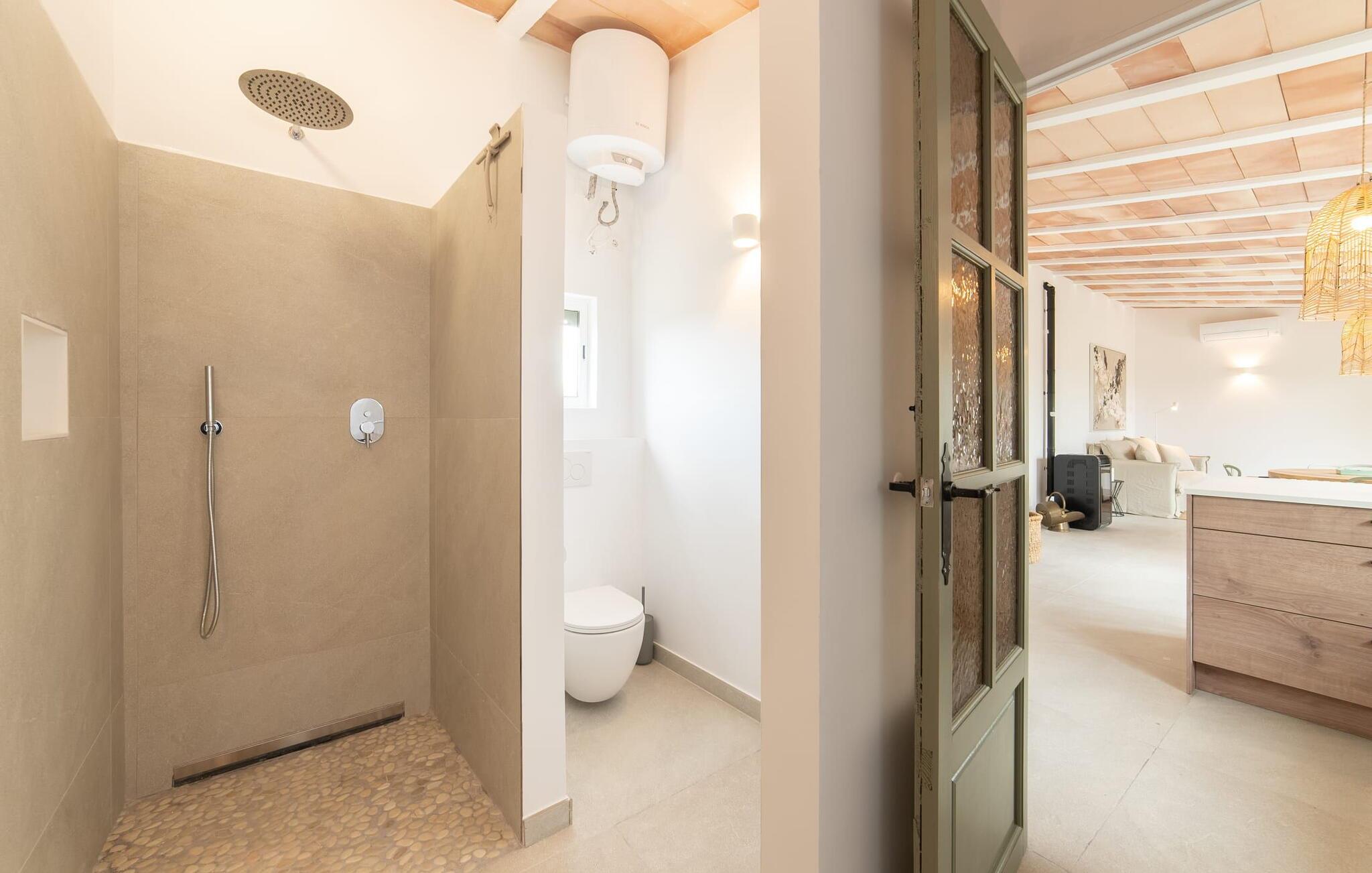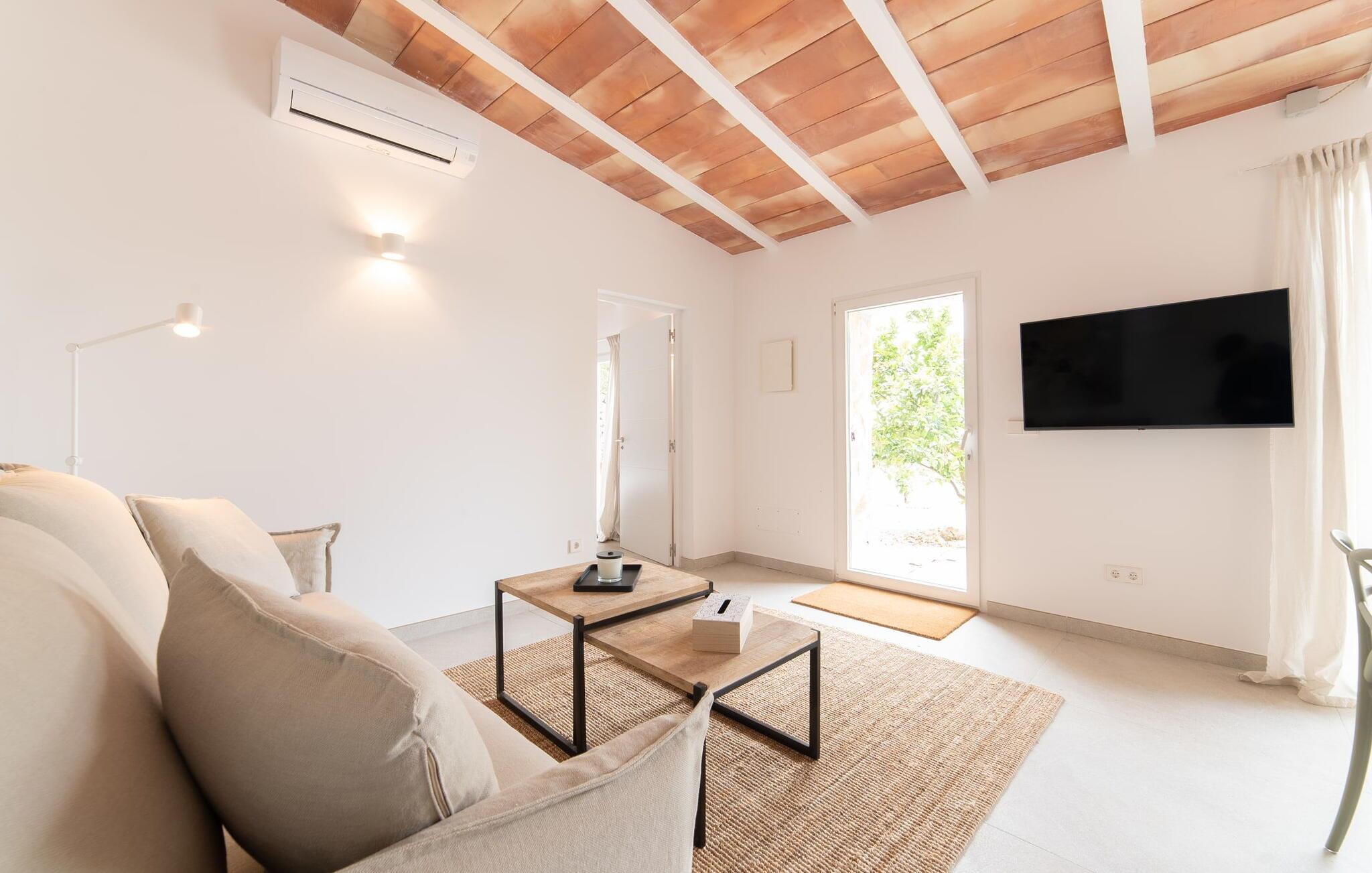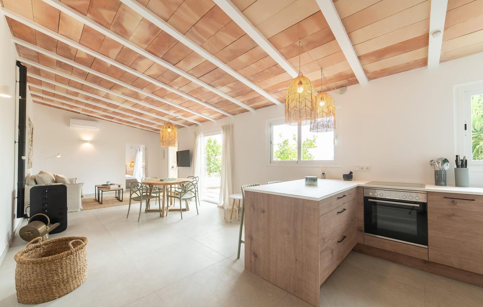 Stuehuset "Es Moli Ariany" er et usædvanligt æstetisk feriehus på Mallorca. Med hensyn til beliggenhed, indretning og stil opfylder denne ejendom selv de højeste standarder. En flot hvid stil præger poolen og solterrassen, hvorfra man kan nyde en vidunderlig udsigt over det brede landskab mod Tramuntana. Smukke daybeds og komfortable liggestole er tilgængelige for afslappende timer under middelhavshimlen. I kan også nyde den smukke udsigt fra den 11 m lange pool. I kan forberede selskabelige grillaftener i det overdækkede udekøkken med grill. Bagefter kan I spise lige ved siden af ved det dekorative langbord under det naturlige tag. Sportsentusiaster vil elske basketballkurven og tennisbanen. Det oprindelige mølletårn med en omgivende terrasse var dygtigt iscenesat. Bag flere gulv-til-loft-vinduer afslører interiøret et trendy, eftertrykkeligt stilrent boligmiljø. Lyse, harmoniske farver kendetegner det elegante interiør, som består af smarte møbler og originalt tilbehør. Alt finder en fremragende plads i den behagelige rummelighed. Den store stue byder ikke kun på maksimal komfort, men også en fantastisk udsigt over husets vidder. I det store køkken, fuldt udstyret til en høj standard med Bora-induktion, luksuriøse elektriske apparater, stenbordplader osv., kan I tilberede måltider sammen og spise ved det store spisebord med en fantastisk udsigt over Tramuntana-bjergene. Tre komfortable dobbeltværelser (med luksuriøse boxmadrasser), to af dem med private badeværelser, og et andet badeværelse fuldender husets indbydende rum. Der er yderligere to helt uafhængige områder, hver med et soveværelse med dobbeltseng, en privat opholdsstue med stilfuld morgenmadsbar, et moderne brusebad og et privat udendørs område til afslapning. Dette hus er ideelt for en større gruppe rejsende, der værdsætter en god beliggenhed, omfattende faciliteter af høj kvalitet og et højt niveau af stil og privatliv. Dette stilfulde bondehus på Mallorca ligger i den vestlige udkant af landsbyen Ariany i centrum af øen. Den meget velmoderniserede historiske feriebolig med et smukt udendørsområde og en sensationel panoramaudsigt ligger også i en attraktiv infrastrukturel beliggenhed: I kan gøre jeres indkøb i Santa Margalida (8 km) og Petra (7 km), den nærmeste strand er Can Picafort - er ca. 17 km væk. Bemærk venligst, at denne ejendom ikke accepterer ungdomsgrupper eller polterabender. En ungdomsgruppe på denne ejendom består af personer på 25 år eller derunder. Book ikke denne ejendom, hvis I er en ungdomsgruppe eller en polterabendgruppe, da jeres reservation vil blive afvist, når den er booket, hvilket også kan være tilfældet ved ankomst til ejendommen eller under jeres ophold, og I vil ikke modtage en refusion.