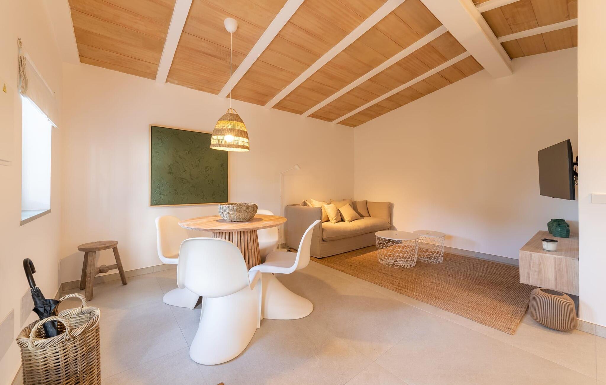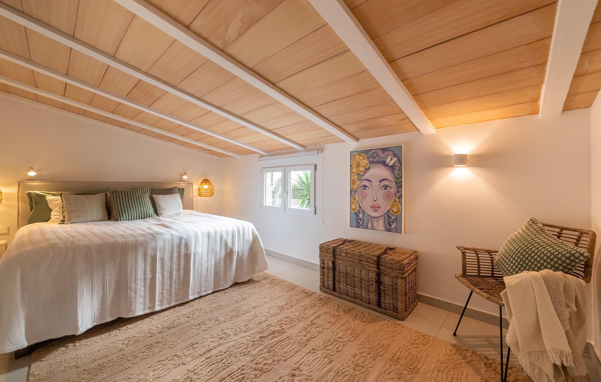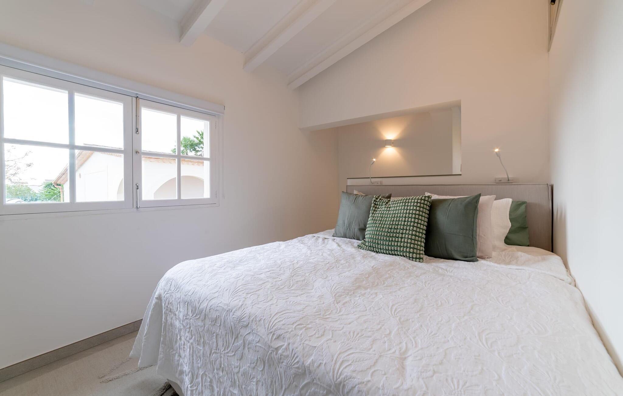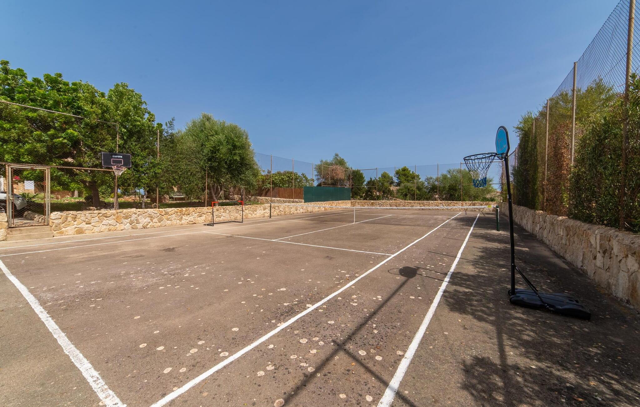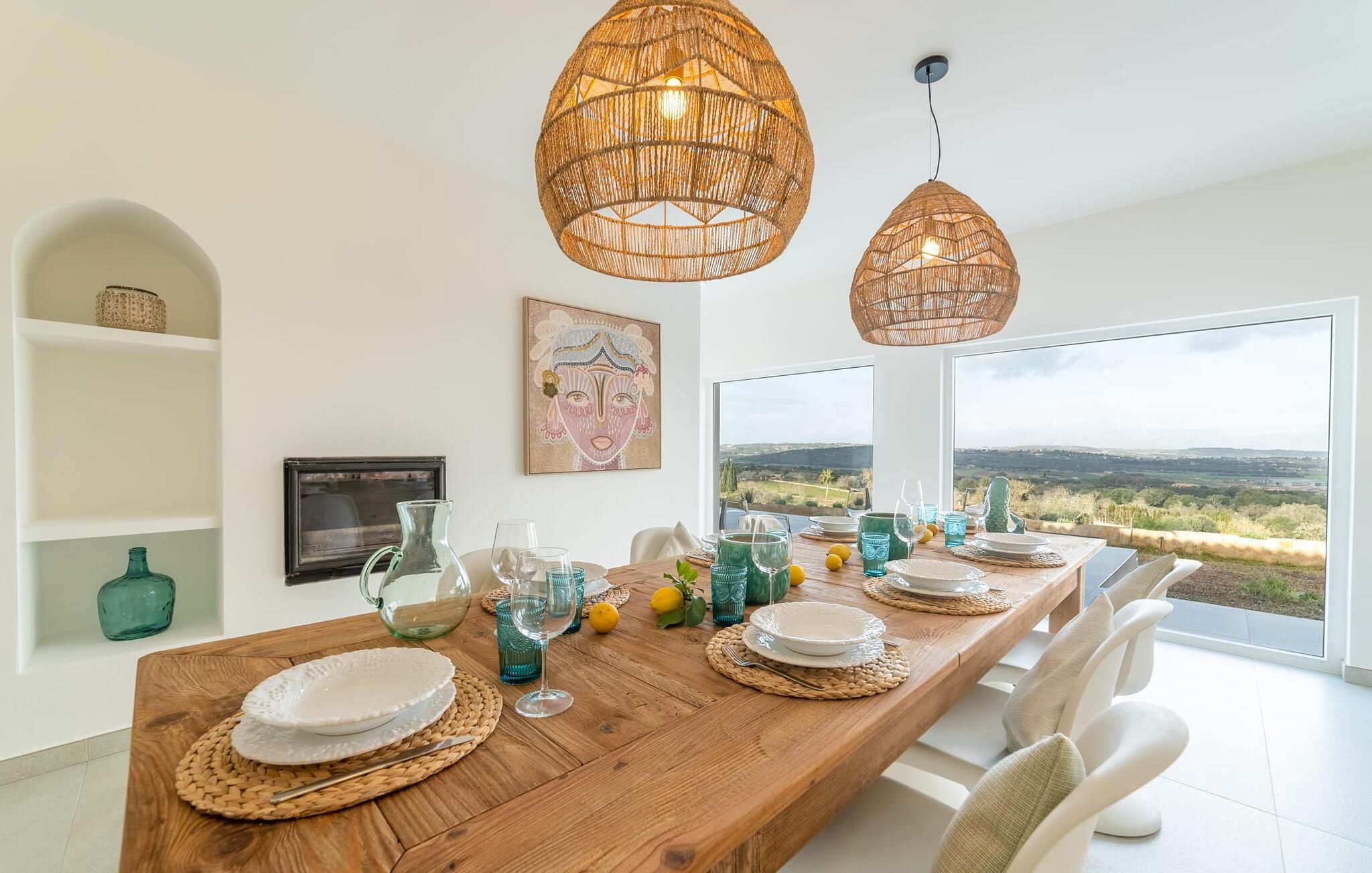 Stuehuset "Es Moli Ariany" er et usædvanligt æstetisk feriehus på Mallorca. Med hensyn til beliggenhed, indretning og stil opfylder denne ejendom selv de højeste standarder. En flot hvid stil præger poolen og solterrassen, hvorfra man kan nyde en vidunderlig udsigt over det brede landskab mod Tramuntana. Smukke daybeds og komfortable liggestole er tilgængelige for afslappende timer under middelhavshimlen. I kan også nyde den smukke udsigt fra den 11 m lange pool. I kan forberede selskabelige grillaftener i det overdækkede udekøkken med grill. Bagefter kan I spise lige ved siden af ved det dekorative langbord under det naturlige tag. Sportsentusiaster vil elske basketballkurven og tennisbanen. Det oprindelige mølletårn med en omgivende terrasse var dygtigt iscenesat. Bag flere gulv-til-loft-vinduer afslører interiøret et trendy, eftertrykkeligt stilrent boligmiljø. Lyse, harmoniske farver kendetegner det elegante interiør, som består af smarte møbler og originalt tilbehør. Alt finder en fremragende plads i den behagelige rummelighed. Den store stue byder ikke kun på maksimal komfort, men også en fantastisk udsigt over husets vidder. I det store køkken, fuldt udstyret til en høj standard med Bora-induktion, luksuriøse elektriske apparater, stenbordplader osv., kan I tilberede måltider sammen og spise ved det store spisebord med en fantastisk udsigt over Tramuntana-bjergene. Tre komfortable dobbeltværelser (med luksuriøse boxmadrasser), to af dem med private badeværelser, og et andet badeværelse fuldender husets indbydende rum. Der er yderligere to helt uafhængige områder, hver med et soveværelse med dobbeltseng, en privat opholdsstue med stilfuld morgenmadsbar, et moderne brusebad og et privat udendørs område til afslapning. Dette hus er ideelt for en større gruppe rejsende, der værdsætter en god beliggenhed, omfattende faciliteter af høj kvalitet og et højt niveau af stil og privatliv. Dette stilfulde bondehus på Mallorca ligger i den vestlige udkant af landsbyen Ariany i centrum af øen. Den meget velmoderniserede historiske feriebolig med et smukt udendørsområde og en sensationel panoramaudsigt ligger også i en attraktiv infrastrukturel beliggenhed: I kan gøre jeres indkøb i Santa Margalida (8 km) og Petra (7 km), den nærmeste strand er Can Picafort - er ca. 17 km væk. Bemærk venligst, at denne ejendom ikke accepterer ungdomsgrupper eller polterabender. En ungdomsgruppe på denne ejendom består af personer på 25 år eller derunder. Book ikke denne ejendom, hvis I er en ungdomsgruppe eller en polterabendgruppe, da jeres reservation vil blive afvist, når den er booket, hvilket også kan være tilfældet ved ankomst til ejendommen eller under jeres ophold, og I vil ikke modtage en refusion.