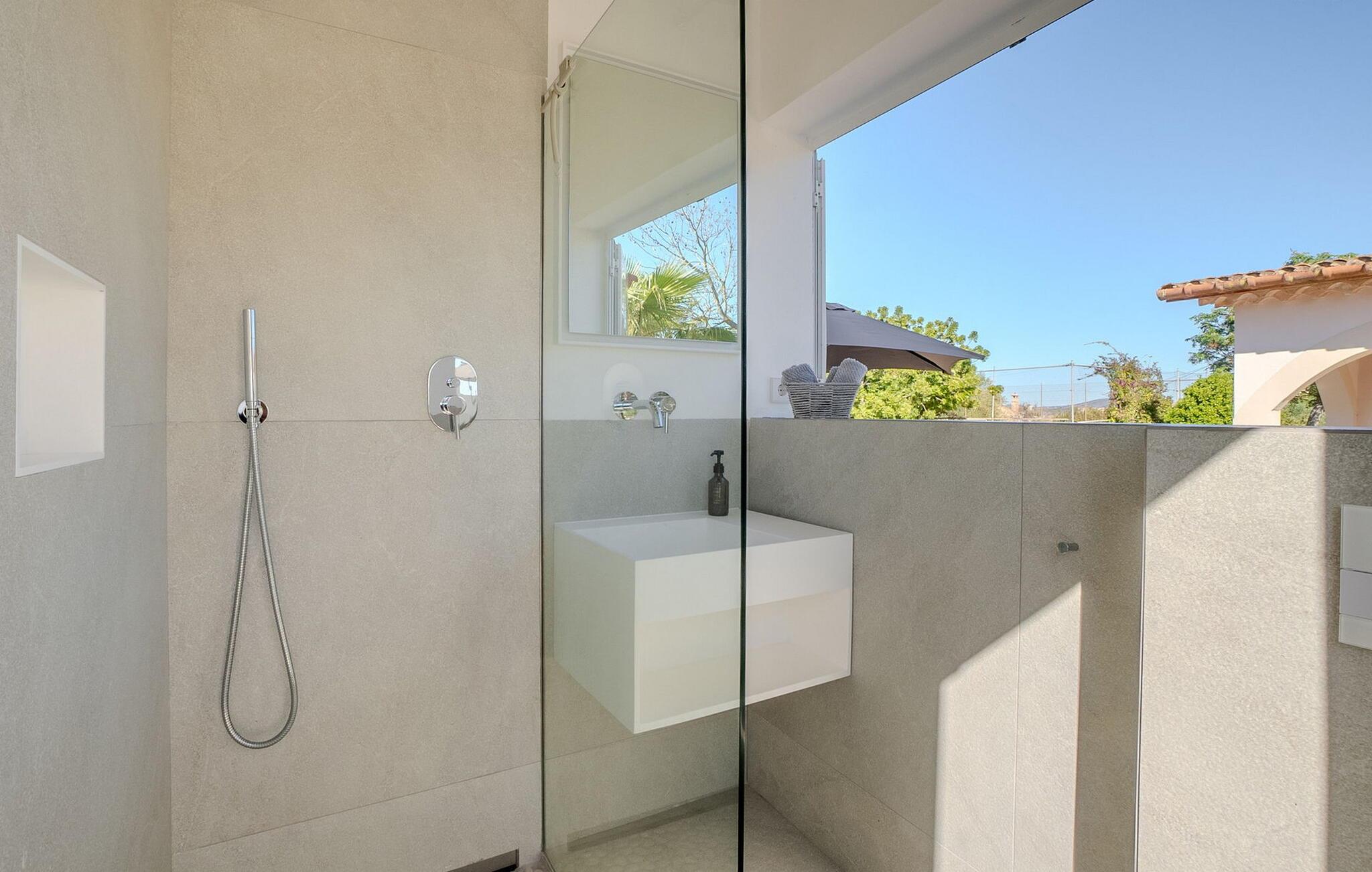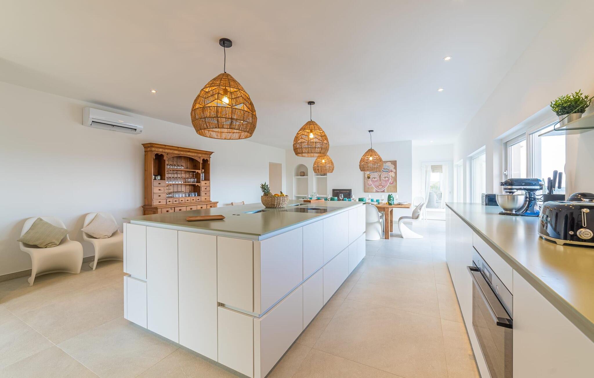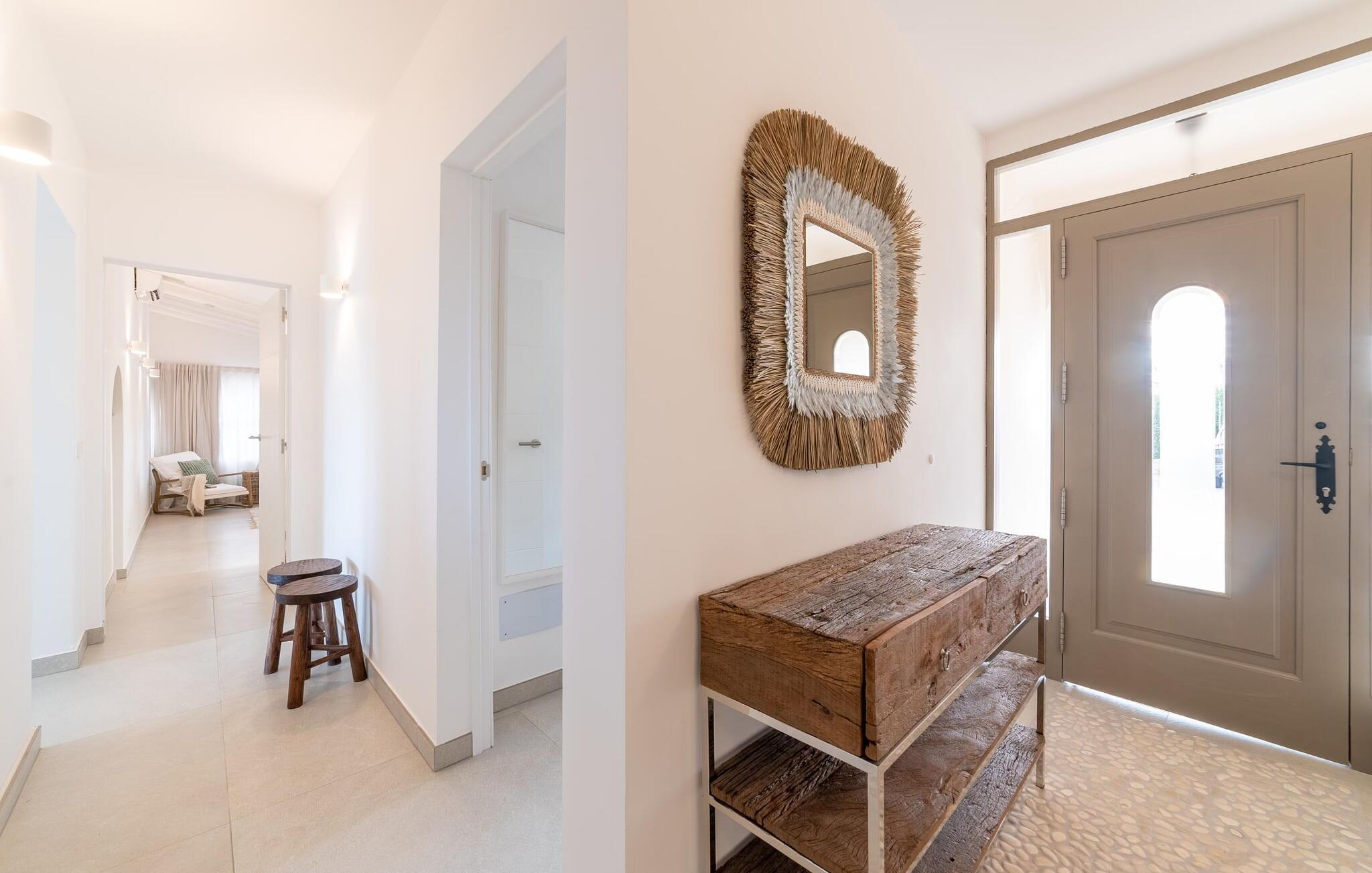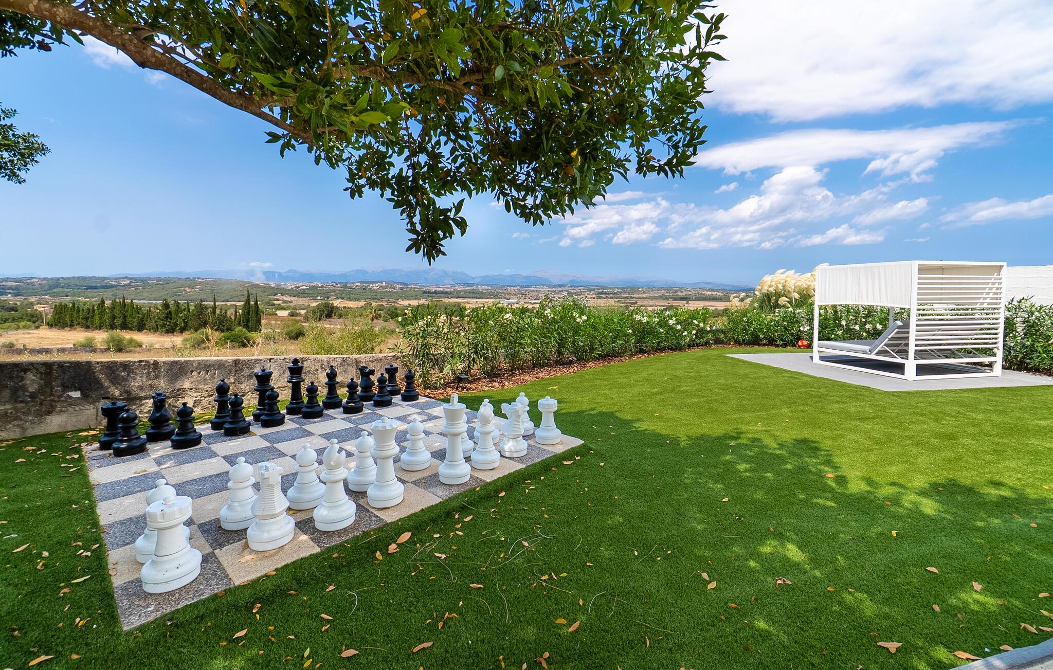 Stuehuset "Es Moli Ariany" er et usædvanligt æstetisk feriehus på Mallorca. Med hensyn til beliggenhed, indretning og stil opfylder denne ejendom selv de højeste standarder. En flot hvid stil præger poolen og solterrassen, hvorfra man kan nyde en vidunderlig udsigt over det brede landskab mod Tramuntana. Smukke daybeds og komfortable liggestole er tilgængelige for afslappende timer under middelhavshimlen. I kan også nyde den smukke udsigt fra den 11 m lange pool. I kan forberede selskabelige grillaftener i det overdækkede udekøkken med grill. Bagefter kan I spise lige ved siden af ved det dekorative langbord under det naturlige tag. Sportsentusiaster vil elske basketballkurven og tennisbanen. Det oprindelige mølletårn med en omgivende terrasse var dygtigt iscenesat. Bag flere gulv-til-loft-vinduer afslører interiøret et trendy, eftertrykkeligt stilrent boligmiljø. Lyse, harmoniske farver kendetegner det elegante interiør, som består af smarte møbler og originalt tilbehør. Alt finder en fremragende plads i den behagelige rummelighed. Den store stue byder ikke kun på maksimal komfort, men også en fantastisk udsigt over husets vidder. I det store køkken, fuldt udstyret til en høj standard med Bora-induktion, luksuriøse elektriske apparater, stenbordplader osv., kan I tilberede måltider sammen og spise ved det store spisebord med en fantastisk udsigt over Tramuntana-bjergene. Tre komfortable dobbeltværelser (med luksuriøse boxmadrasser), to af dem med private badeværelser, og et andet badeværelse fuldender husets indbydende rum. Der er yderligere to helt uafhængige områder, hver med et soveværelse med dobbeltseng, en privat opholdsstue med stilfuld morgenmadsbar, et moderne brusebad og et privat udendørs område til afslapning. Dette hus er ideelt for en større gruppe rejsende, der værdsætter en god beliggenhed, omfattende faciliteter af høj kvalitet og et højt niveau af stil og privatliv. Dette stilfulde bondehus på Mallorca ligger i den vestlige udkant af landsbyen Ariany i centrum af øen. Den meget velmoderniserede historiske feriebolig med et smukt udendørsområde og en sensationel panoramaudsigt ligger også i en attraktiv infrastrukturel beliggenhed: I kan gøre jeres indkøb i Santa Margalida (8 km) og Petra (7 km), den nærmeste strand er Can Picafort - er ca. 17 km væk. Bemærk venligst, at denne ejendom ikke accepterer ungdomsgrupper eller polterabender. En ungdomsgruppe på denne ejendom består af personer på 25 år eller derunder. Book ikke denne ejendom, hvis I er en ungdomsgruppe eller en polterabendgruppe, da jeres reservation vil blive afvist, når den er booket, hvilket også kan være tilfældet ved ankomst til ejendommen eller under jeres ophold, og I vil ikke modtage en refusion.
