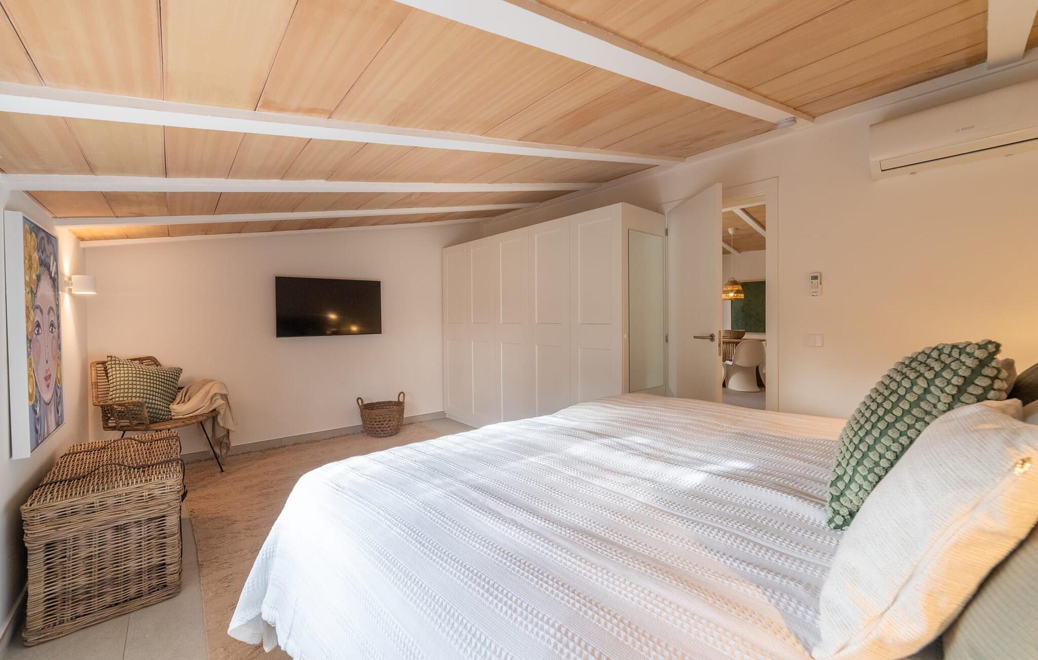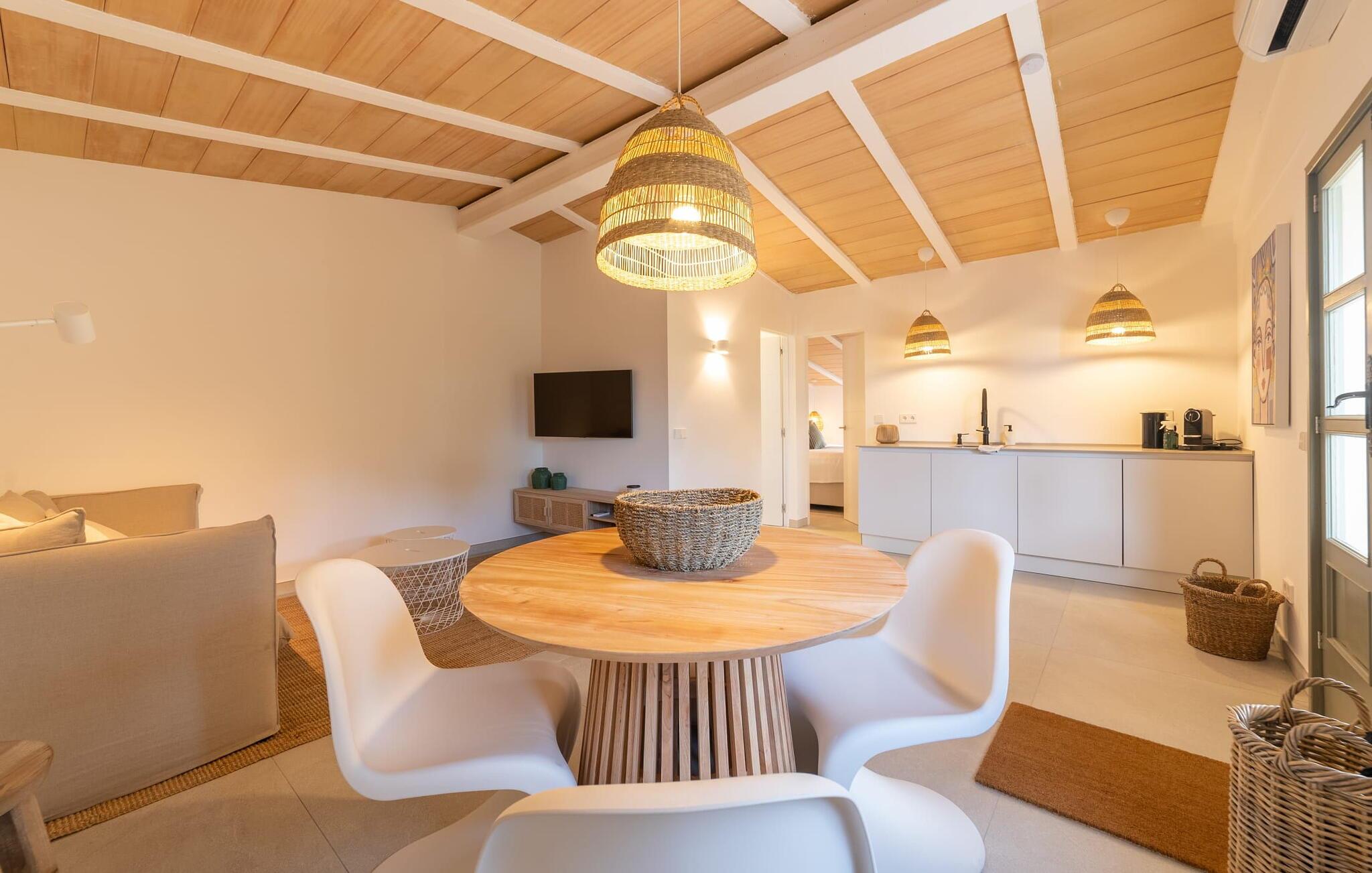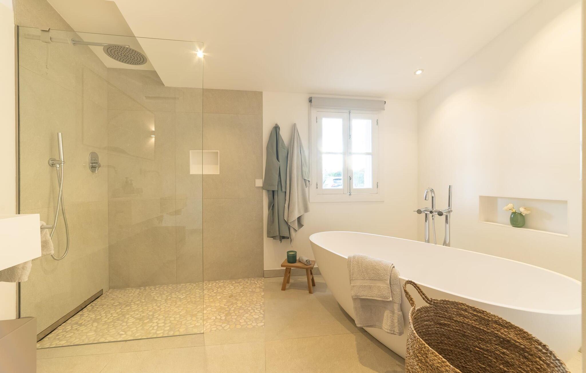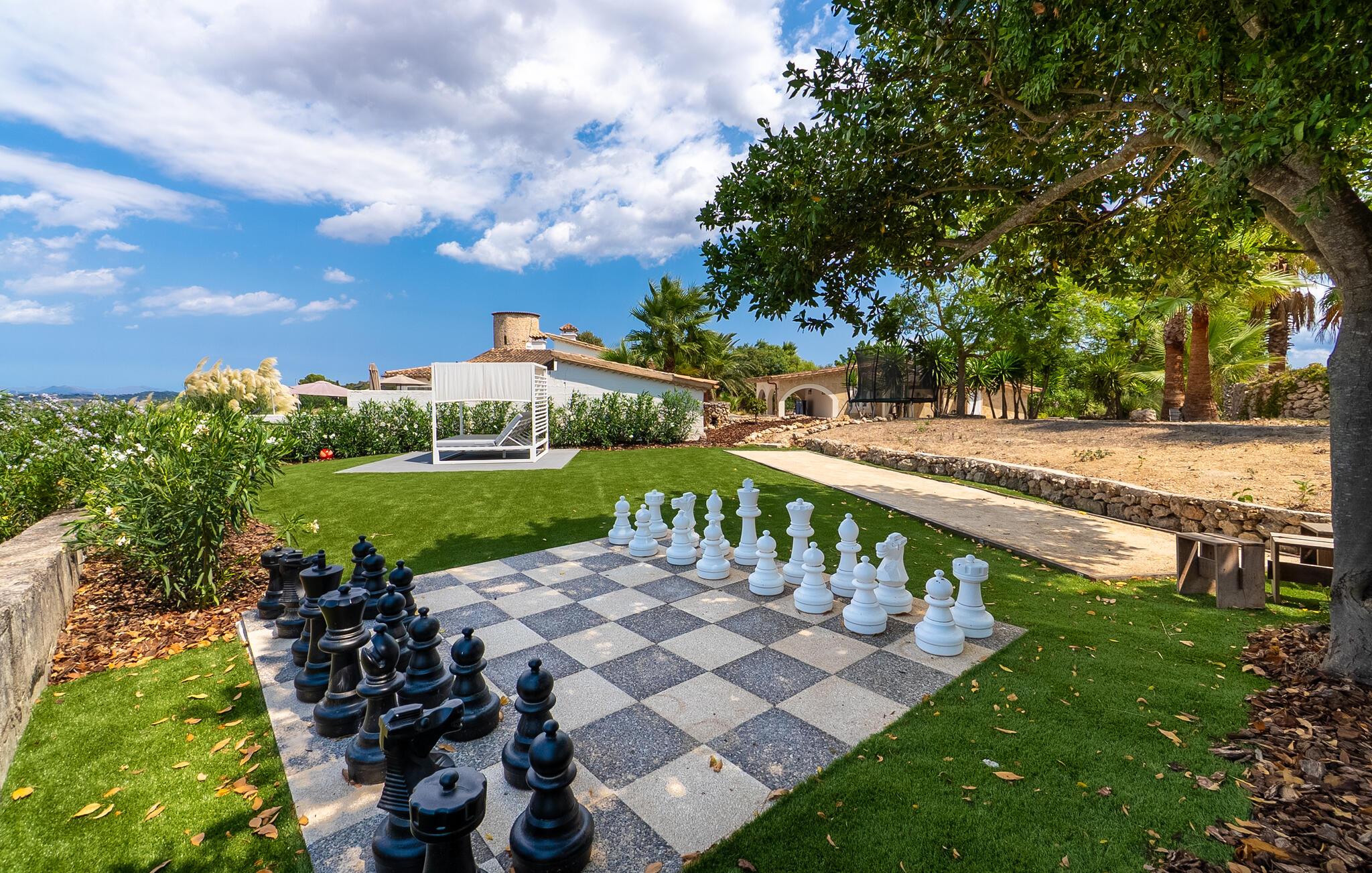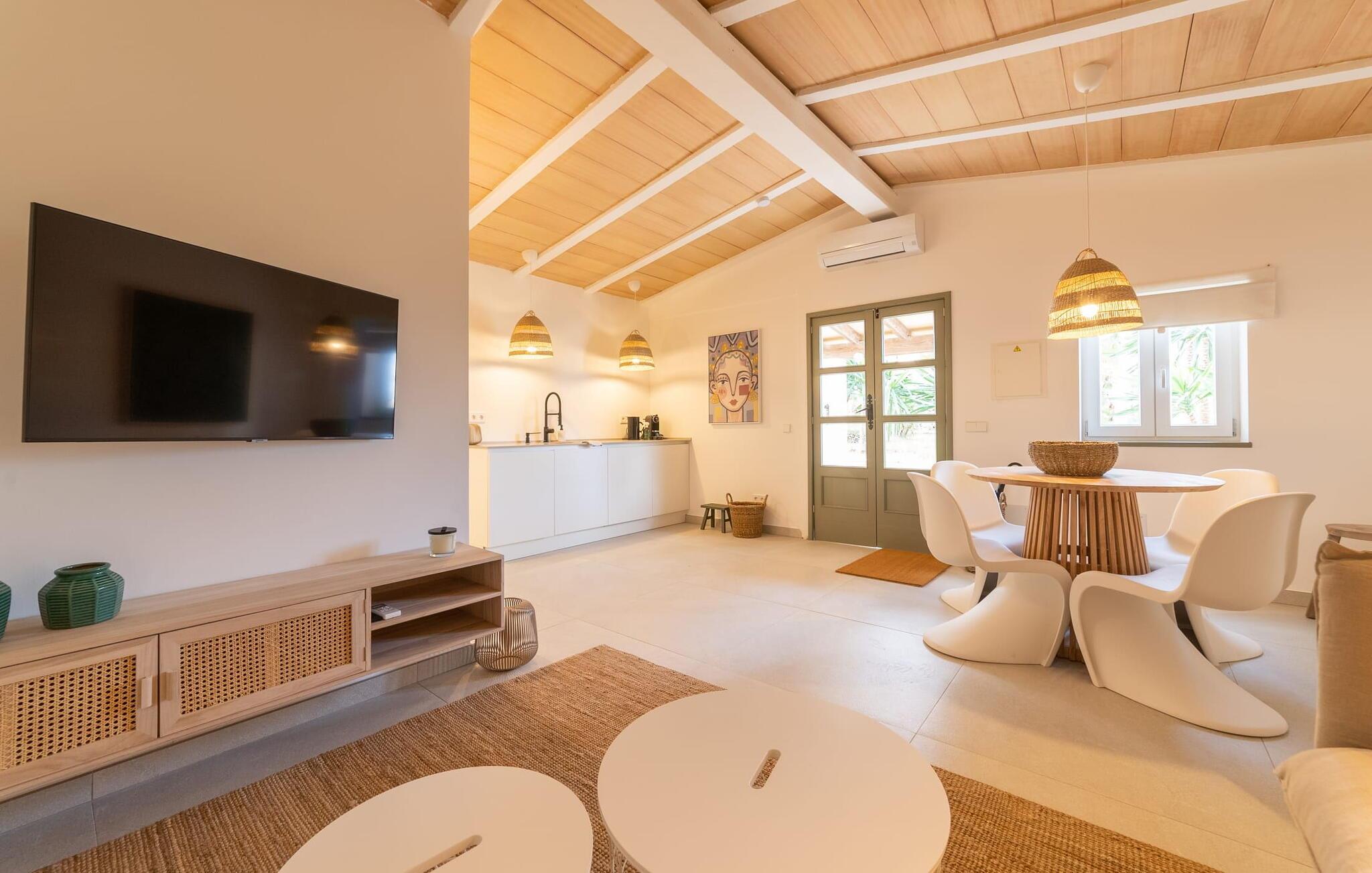 Stuehuset "Es Moli Ariany" er et usædvanligt æstetisk feriehus på Mallorca. Med hensyn til beliggenhed, indretning og stil opfylder denne ejendom selv de højeste standarder. En flot hvid stil præger poolen og solterrassen, hvorfra man kan nyde en vidunderlig udsigt over det brede landskab mod Tramuntana. Smukke daybeds og komfortable liggestole er tilgængelige for afslappende timer under middelhavshimlen. I kan også nyde den smukke udsigt fra den 11 m lange pool. I kan forberede selskabelige grillaftener i det overdækkede udekøkken med grill. Bagefter kan I spise lige ved siden af ved det dekorative langbord under det naturlige tag. Sportsentusiaster vil elske basketballkurven og tennisbanen. Det oprindelige mølletårn med en omgivende terrasse var dygtigt iscenesat. Bag flere gulv-til-loft-vinduer afslører interiøret et trendy, eftertrykkeligt stilrent boligmiljø. Lyse, harmoniske farver kendetegner det elegante interiør, som består af smarte møbler og originalt tilbehør. Alt finder en fremragende plads i den behagelige rummelighed. Den store stue byder ikke kun på maksimal komfort, men også en fantastisk udsigt over husets vidder. I det store køkken, fuldt udstyret til en høj standard med Bora-induktion, luksuriøse elektriske apparater, stenbordplader osv., kan I tilberede måltider sammen og spise ved det store spisebord med en fantastisk udsigt over Tramuntana-bjergene. Tre komfortable dobbeltværelser (med luksuriøse boxmadrasser), to af dem med private badeværelser, og et andet badeværelse fuldender husets indbydende rum. Der er yderligere to helt uafhængige områder, hver med et soveværelse med dobbeltseng, en privat opholdsstue med stilfuld morgenmadsbar, et moderne brusebad og et privat udendørs område til afslapning. Dette hus er ideelt for en større gruppe rejsende, der værdsætter en god beliggenhed, omfattende faciliteter af høj kvalitet og et højt niveau af stil og privatliv. Dette stilfulde bondehus på Mallorca ligger i den vestlige udkant af landsbyen Ariany i centrum af øen. Den meget velmoderniserede historiske feriebolig med et smukt udendørsområde og en sensationel panoramaudsigt ligger også i en attraktiv infrastrukturel beliggenhed: I kan gøre jeres indkøb i Santa Margalida (8 km) og Petra (7 km), den nærmeste strand er Can Picafort - er ca. 17 km væk. Bemærk venligst, at denne ejendom ikke accepterer ungdomsgrupper eller polterabender. En ungdomsgruppe på denne ejendom består af personer på 25 år eller derunder. Book ikke denne ejendom, hvis I er en ungdomsgruppe eller en polterabendgruppe, da jeres reservation vil blive afvist, når den er booket, hvilket også kan være tilfældet ved ankomst til ejendommen eller under jeres ophold, og I vil ikke modtage en refusion.