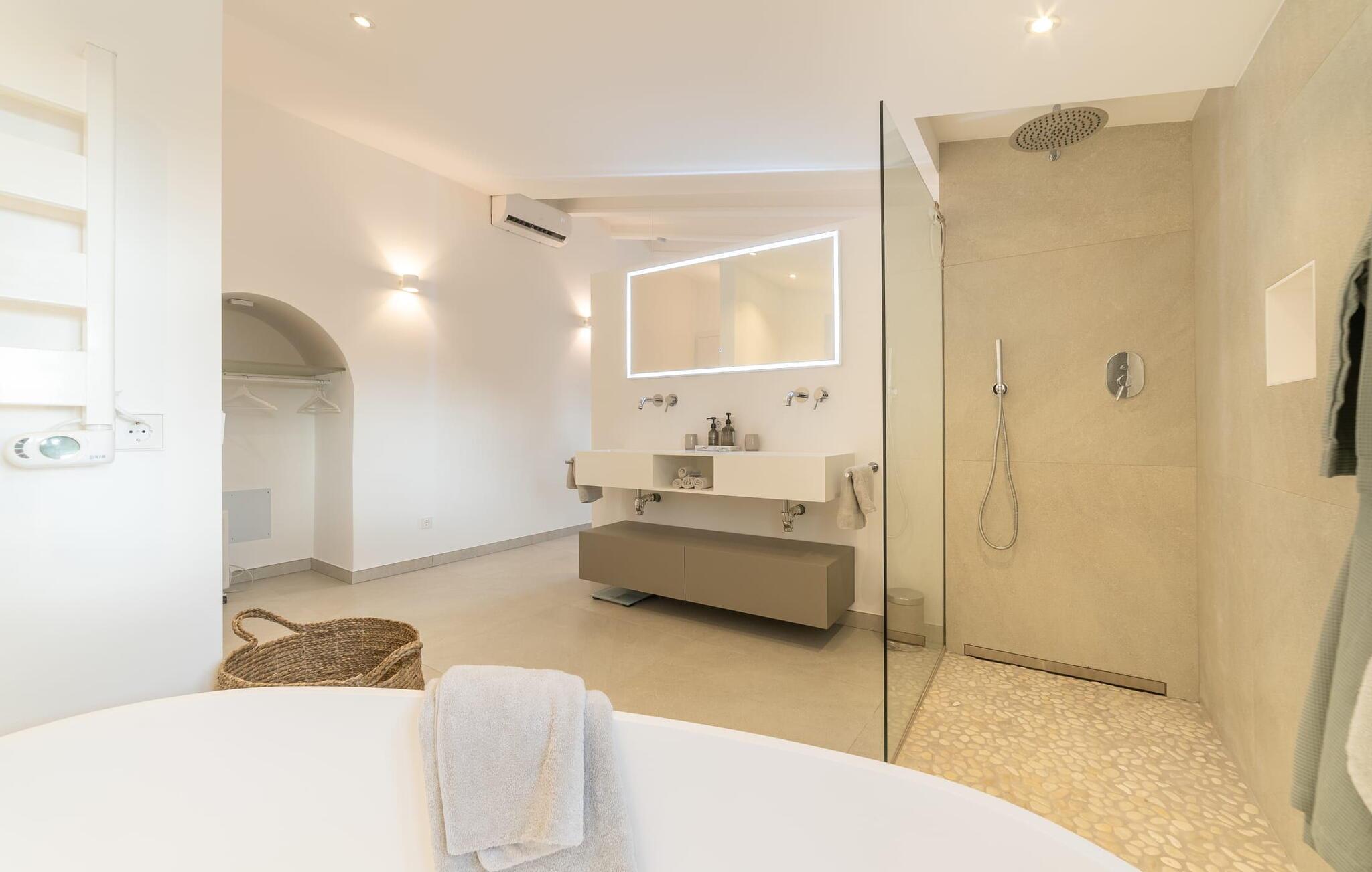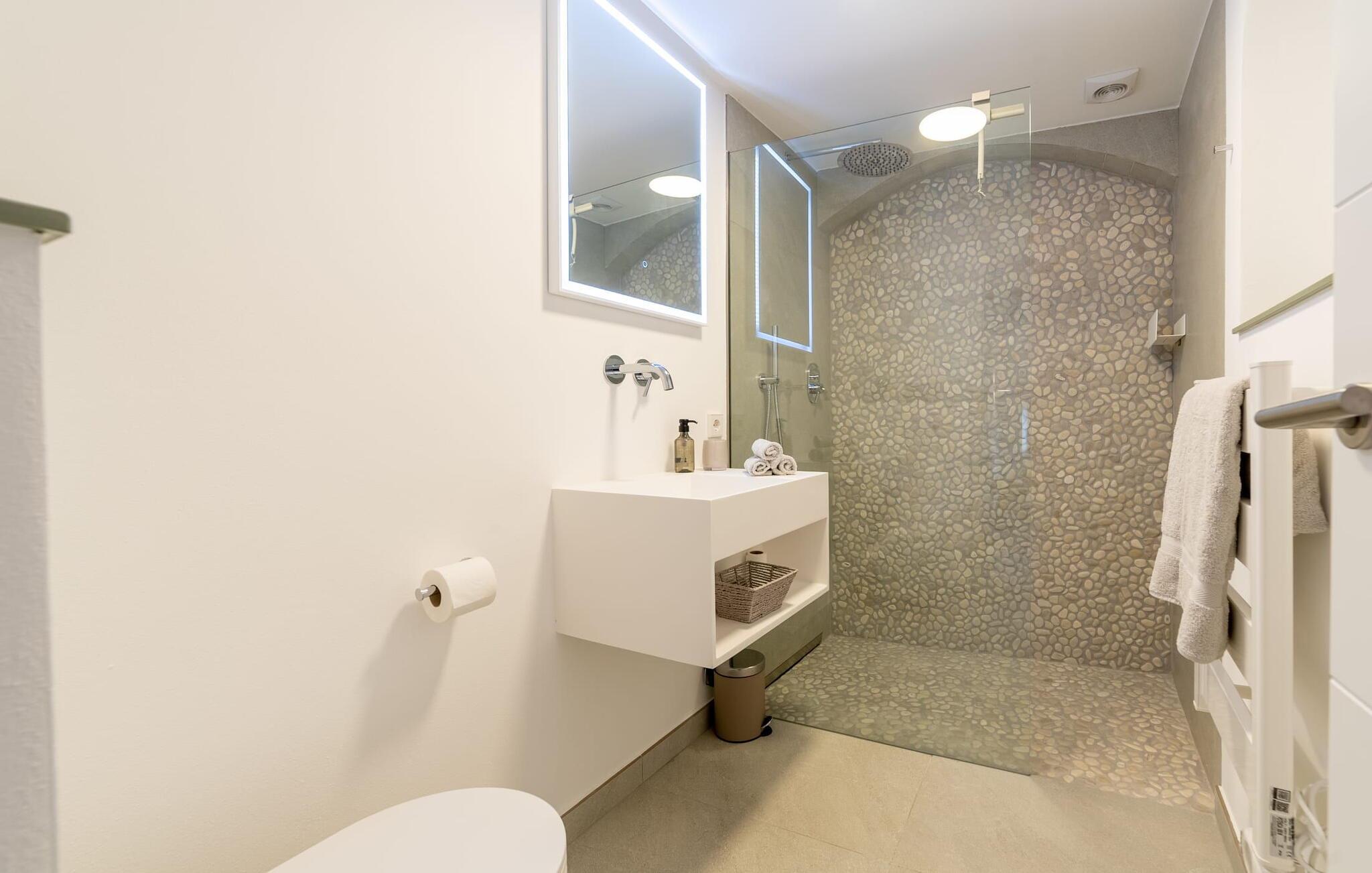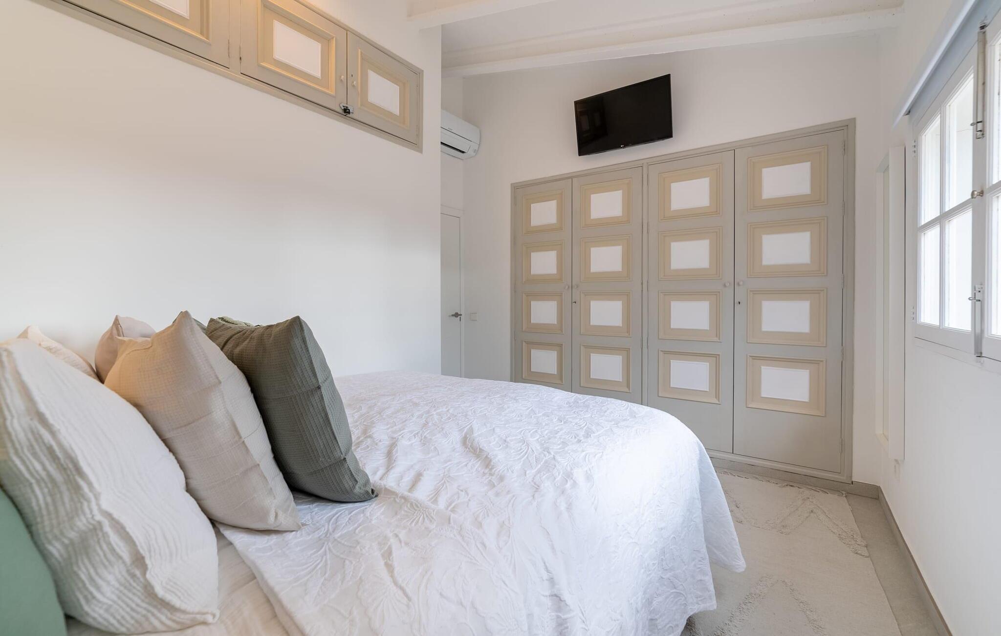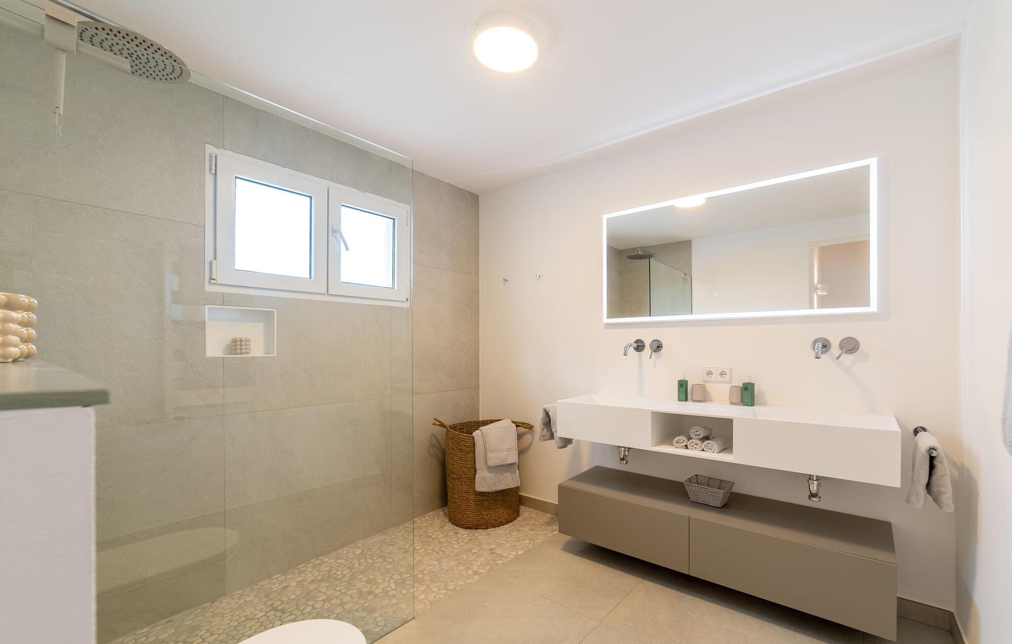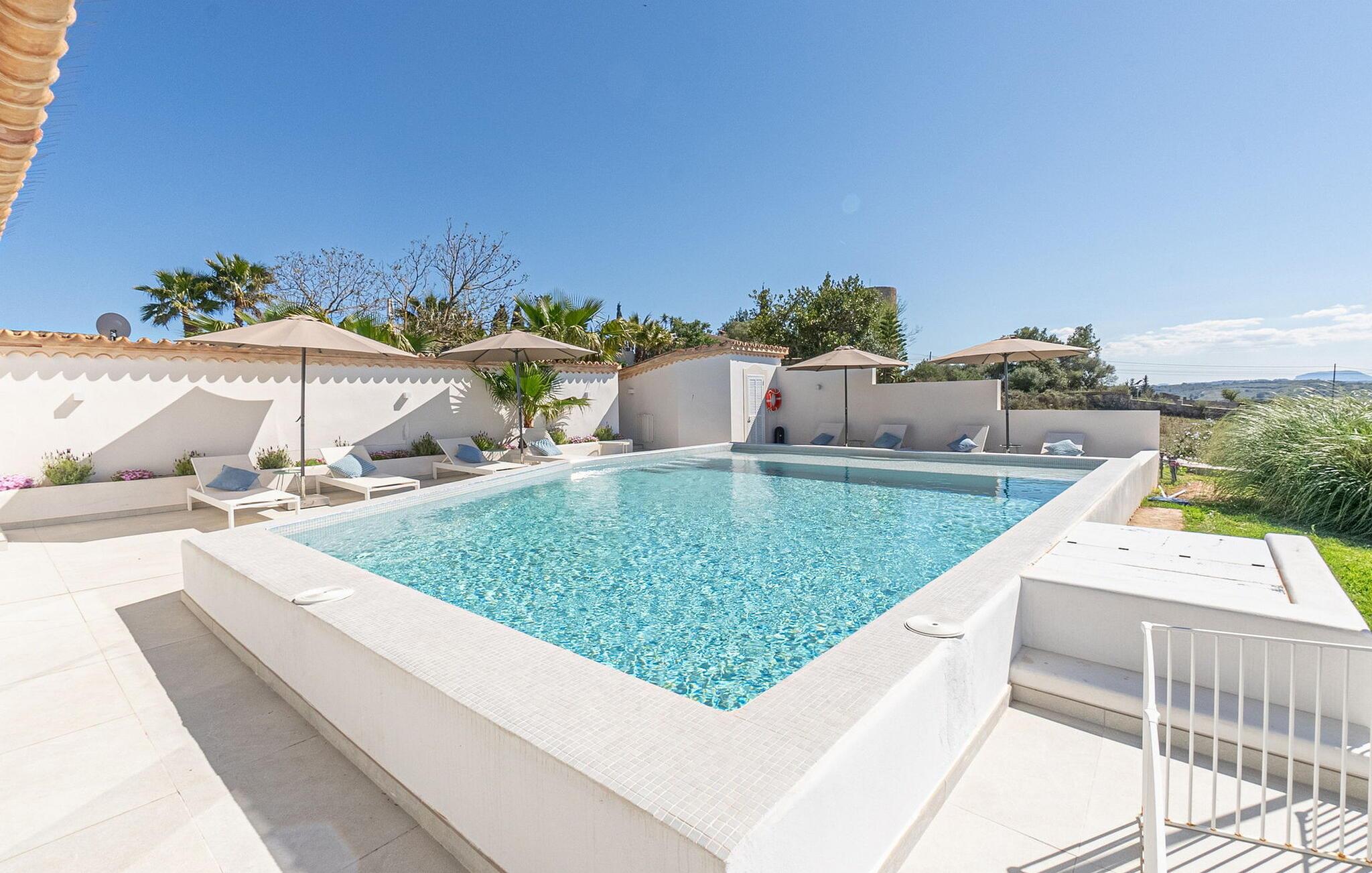 Stuehuset "Es Moli Ariany" er et usædvanligt æstetisk feriehus på Mallorca. Med hensyn til beliggenhed, indretning og stil opfylder denne ejendom selv de højeste standarder. En flot hvid stil præger poolen og solterrassen, hvorfra man kan nyde en vidunderlig udsigt over det brede landskab mod Tramuntana. Smukke daybeds og komfortable liggestole er tilgængelige for afslappende timer under middelhavshimlen. I kan også nyde den smukke udsigt fra den 11 m lange pool. I kan forberede selskabelige grillaftener i det overdækkede udekøkken med grill. Bagefter kan I spise lige ved siden af ved det dekorative langbord under det naturlige tag. Sportsentusiaster vil elske basketballkurven og tennisbanen. Det oprindelige mølletårn med en omgivende terrasse var dygtigt iscenesat. Bag flere gulv-til-loft-vinduer afslører interiøret et trendy, eftertrykkeligt stilrent boligmiljø. Lyse, harmoniske farver kendetegner det elegante interiør, som består af smarte møbler og originalt tilbehør. Alt finder en fremragende plads i den behagelige rummelighed. Den store stue byder ikke kun på maksimal komfort, men også en fantastisk udsigt over husets vidder. I det store køkken, fuldt udstyret til en høj standard med Bora-induktion, luksuriøse elektriske apparater, stenbordplader osv., kan I tilberede måltider sammen og spise ved det store spisebord med en fantastisk udsigt over Tramuntana-bjergene. Tre komfortable dobbeltværelser (med luksuriøse boxmadrasser), to af dem med private badeværelser, og et andet badeværelse fuldender husets indbydende rum. Der er yderligere to helt uafhængige områder, hver med et soveværelse med dobbeltseng, en privat opholdsstue med stilfuld morgenmadsbar, et moderne brusebad og et privat udendørs område til afslapning. Dette hus er ideelt for en større gruppe rejsende, der værdsætter en god beliggenhed, omfattende faciliteter af høj kvalitet og et højt niveau af stil og privatliv. Dette stilfulde bondehus på Mallorca ligger i den vestlige udkant af landsbyen Ariany i centrum af øen. Den meget velmoderniserede historiske feriebolig med et smukt udendørsområde og en sensationel panoramaudsigt ligger også i en attraktiv infrastrukturel beliggenhed: I kan gøre jeres indkøb i Santa Margalida (8 km) og Petra (7 km), den nærmeste strand er Can Picafort - er ca. 17 km væk. Bemærk venligst, at denne ejendom ikke accepterer ungdomsgrupper eller polterabender. En ungdomsgruppe på denne ejendom består af personer på 25 år eller derunder. Book ikke denne ejendom, hvis I er en ungdomsgruppe eller en polterabendgruppe, da jeres reservation vil blive afvist, når den er booket, hvilket også kan være tilfældet ved ankomst til ejendommen eller under jeres ophold, og I vil ikke modtage en refusion.