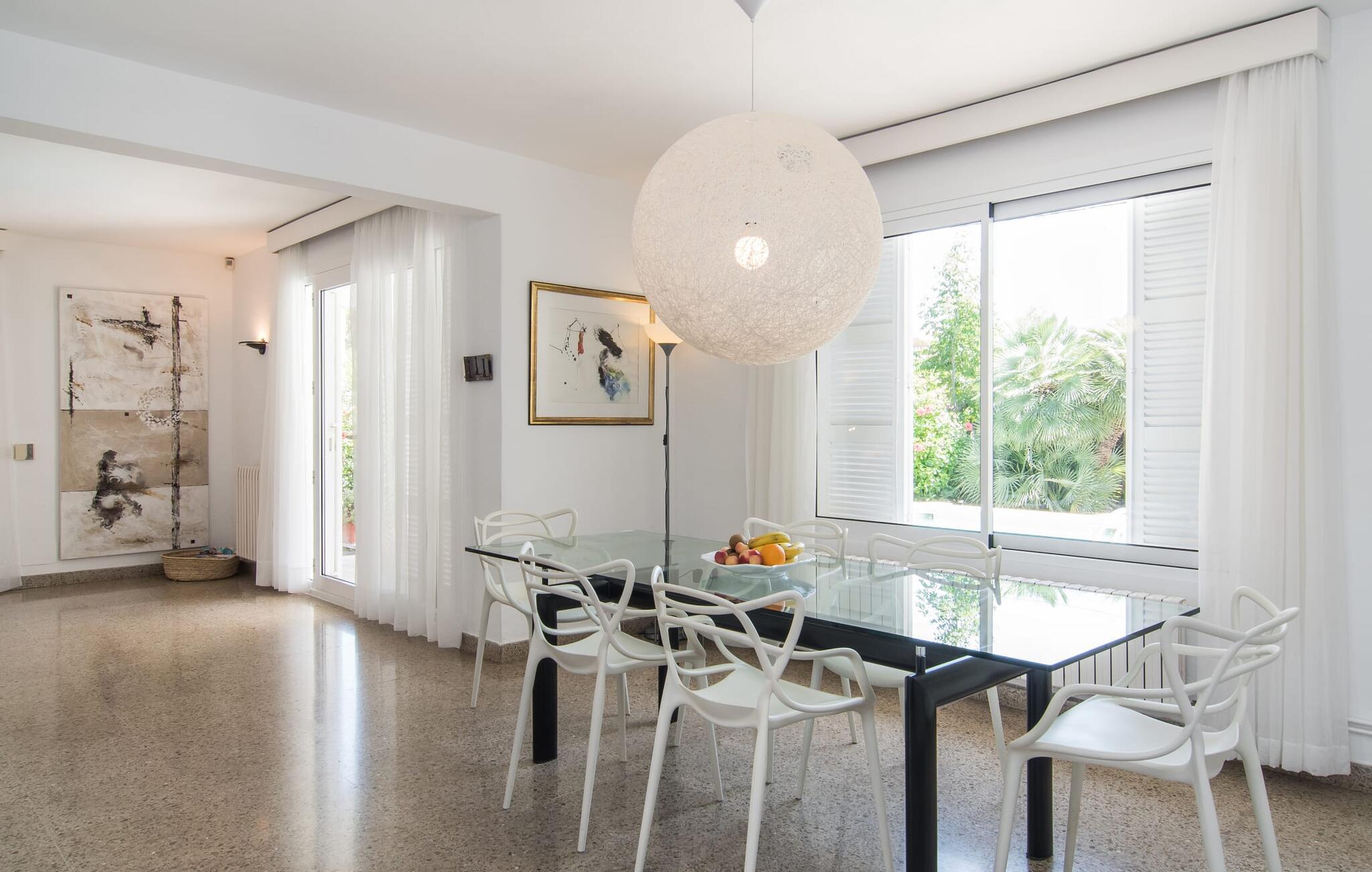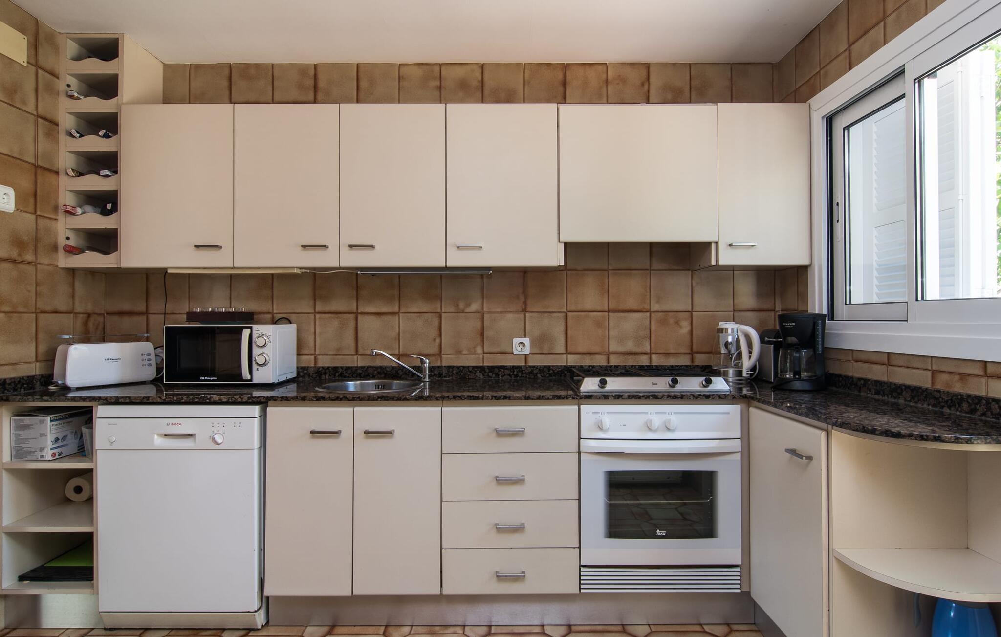 Villaen "Es Norai" ligger på en 700 m² stor grund, kun 500 m fra centrum af Cala Ratjada. Udearealet består af et smukt designet og rummeligt terrasselandskab, der byder på forskellige zoner og er designet til at være absolut indbydende med alle slags middelhavsplanter i små bede eller krukker. Der er også en lille græsplæne - her er liggestolene allerede lige ved hånden, hvor I kan slappe skønt af efter en forfriskende svømmetur i poolen. Omkring feriehuset Mallorca finder I flere andre attraktive steder at slappe af. Det drejer sig om skønne liggearealer samt luftige skyggeområder, fx i det pavillonlignende område, der kan bruges som udendørs spisestue. Et langt spisebord inviterer jer til at nyde middelhavsdelikatesser i en hyggelig atmosfære. I kan nyde en lækker morgenmad her en sommermorgen. Eller en kulinarisk grill på en varm aften, inden I senere går en tur på promenaden eller slutter aftenen af i fred derhjemme. Huset er renoveret i 2013 og omdannet til et skønt sommerhus. Det tilbyder tre soveværelser med aircondition og varme, to badeværelser, et fuldt udstyret køkken, en spisestue og en stue. I stuen er der en kæmpe afslapningssofa, hvor I kan krølle jer sammen og læse en god bog eller se en underholdende film. I de køligere årstider giver pejsen jer mulighed for at varme op og nyde den hygge, som et bål skaber. I det letplejede køkken finder I alt, hvad I skal bruge til hverdagsbrug. Rummeligheden giver mulighed for et lille spisebord, hvor I kan sidde komfortabelt med fire-fem personer, hvis det er nødvendigt. Selve den indendørs spiseplads ligger ved siden af stuen og er meget indbydende med den smukke glasbordplade, den originale lampe og den smukke udsigt udenfor. I de tre soveværelser finder I en behagelig klarhed, der fremmer fred og ro. Lyse stoffer og diskret belysning understreger denne atmosfære. Badeværelserne er funktionelt udstyret og individuelt designet. Den ene er udstyret med bruser, den anden med badekar. Villaen "Es Norai", renoveret i 2013, er ideelt beliggende i udkanten af Cala Ratjada. Havet er mindre end 200 m væk herfra. Udover velassorterede supermarkeder finder I fremragende restauranter og barer langs den livlige kystpromenade. På grund af sin beliggenhed på den lille, akustisk mærkbare gade, er omkringliggende byer og udflugtsmål nemme at nå fra dette feriehus på Mallorca.