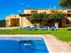 Den charmerende naturstensvilla "Es Palmi" er beliggende i en smukt vedligeholdt have med frodige græsplæner og middelhavsplanter. Dens jordbrune skodder blander sig problemfrit ind i omgivelserne. Villaen består af to boligenheder: en renoveret traditionel villa, der rummer soveværelserne og en senere bygget enhed. Et indbydende udendørs opholdsområde har et træbord perfekt til spisning, i skyggen af et tag og bougainvillea. Midtpunktet er en pool, tilgængelig via trin, som giver en forfriskende forandring på varme dage og suppleres af to parasoller til solbeskyttelse. På hyggelige sommeraftener kan gæsterne nyde grillaftener med friske lokale råvarer. Ejendommen har plads til tre biler. I stueetagen er der et fuldt udstyret køkken, en hyggelig stue, et badeværelse og et soveværelse, mens den øverste etage byder på et ekstra badeværelse og to soveværelser, hvor det større soveværelse har aircondition. Den separate enhed har endnu et fuldt udstyret køkken, stue og toilet, samt en pejs til køligere nætter. Villaens indretning med afstemte farver og traditionelle træbjælker skaber en hyggelig atmosfære. Med et layout, der sikrer privatliv og plads, er denne villa perfekt til større grupper eller to familier, der ønsker at holde ferie sammen, mens de nyder privatlivets fred på den omfattende ejendom. Den smukke stenbrudsvilla "Es Palm" ligger på en vidunderlig landlig grund på 550 m², ca. 4 km nordøst for kystbyen Ses Covetes. Der er restauranter og et lille supermarked her. Den berømte Es Trenc-strand ligger kun 10 minutter væk i bil.
