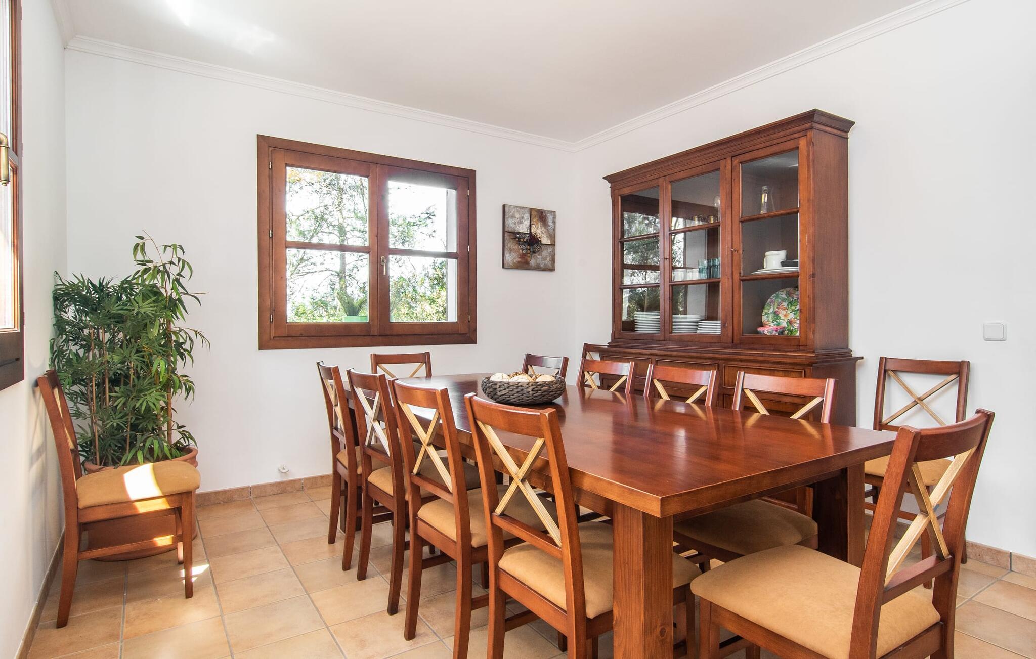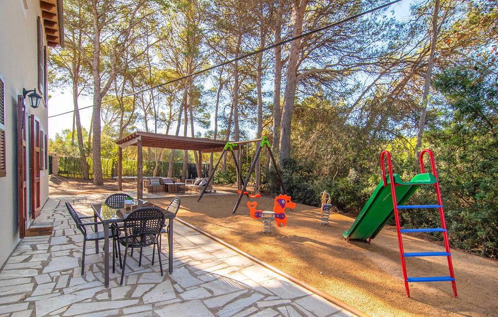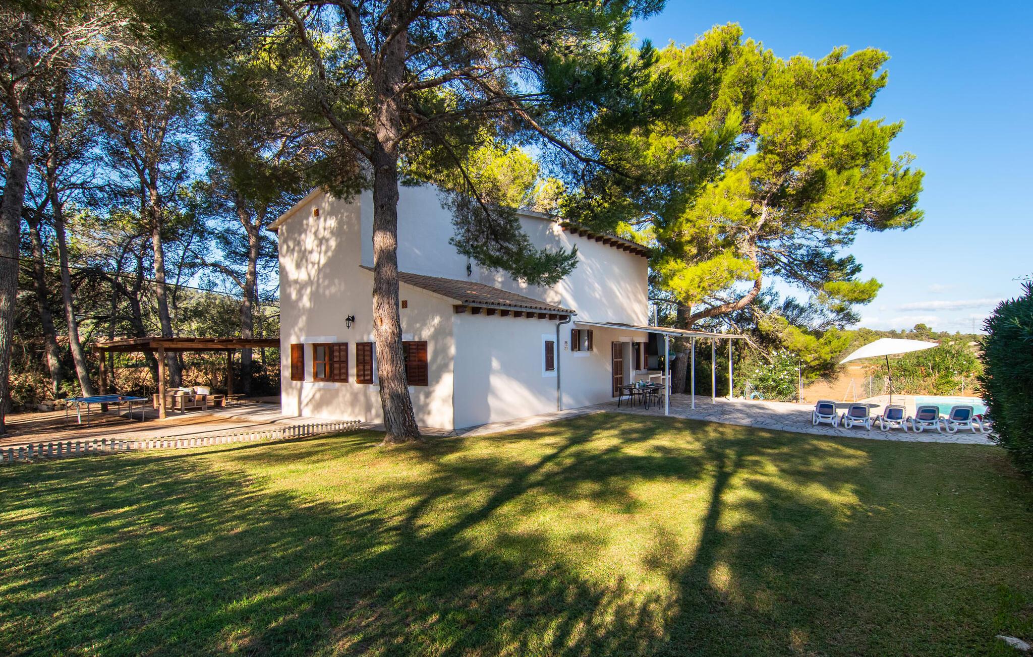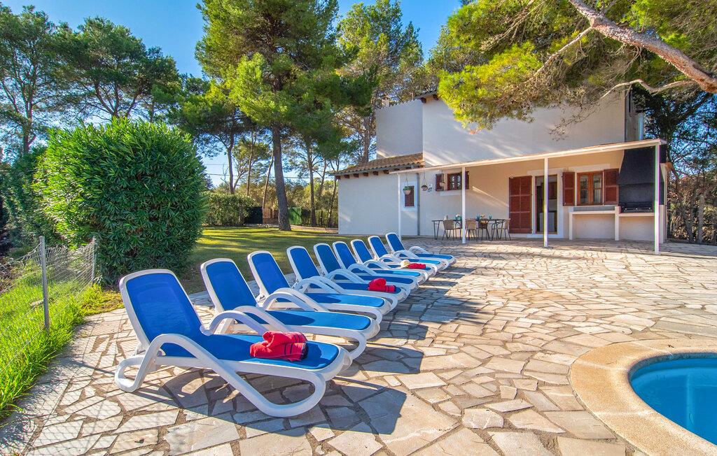 "Es Pinaro" skylder sit navn til den omkringliggende flora. Den meget hyggelige landlige ejendom er indrammet af en granskov. Det indbydende feriehus på Mallorca er omgivet af store græsplæner og få naboer, så I kan nyde en dejlig privat ferie med jeres familie eller venner. Haven er ikke kun stor, men byder også på adskillige højdepunkter. Udover den store pool med omgivende solbadningsområde, som også omfatter liggestole og parasol, er der også to terrasser og en fritstående dagseng. Det udendørs siddeområde med en afslappende følelse er omgivet af delikate klude. Udover vind- og solafskærmning opfylder de også æstetiske krav. Denne behagelig lounge ligger lige ved siden af sandlegepladsen - de små kan nyde deres private paradis, mens I slapper af! Bordtennisbordet er en ekstra udfordring på tværs af generationer. En anden overdækket terrasse ligger direkte på det familievenlige havehus og rummer en udendørs spiseplads. Ideel til morgenmad, men også til at grille om aftenen. Det praktisk indrettede feriehus har naturligvis også en spisestue. Det fuldt udstyrede køkken giver jer mulighed for at opleve bevidst valgt selvforsyning som en fælles feriefornøjelse. I stuen er der to komfortable sofaer foran fjernsynet og skaber en klassisk mallorcansk stemning med træ og terracotta. Samtidig er indretningen praktisk, moderne og komfortabel. De tre rummelige soveværelser er desuden udstyret med enten to enkeltsenge eller en dobbeltseng. Der er et afslapningsrum i stueetagen. Det tilhørende badeværelse kan benyttes af alle gæster i dagtimerne. De to soveværelser på øverste etage (hvoraf det ene har et walk-in-closet) tilbyder også tidløst moderne en-suite badeværelser med badekar. I fincaen "Es Pinaro" kan I forvente eksemplarisk familievenlighed, som lover jer en dejlig ferie på Mallorca. Den nybyggede finca "Es Pinaro" er kendetegnet ved sit familievenlige design både inde og ude. Det indbydende feriehus ligger centralt midt på øen mellem Manacor og havet. På grund af nærheden til landevejen, som kun er hørbar, når der er vind, kan I meget hurtigt nå Manacor, 6 km væk. Samtidig er I kun omkring 13 minutter væk fra det smukke Calas de Mallorca, herunder Cala Mendes.