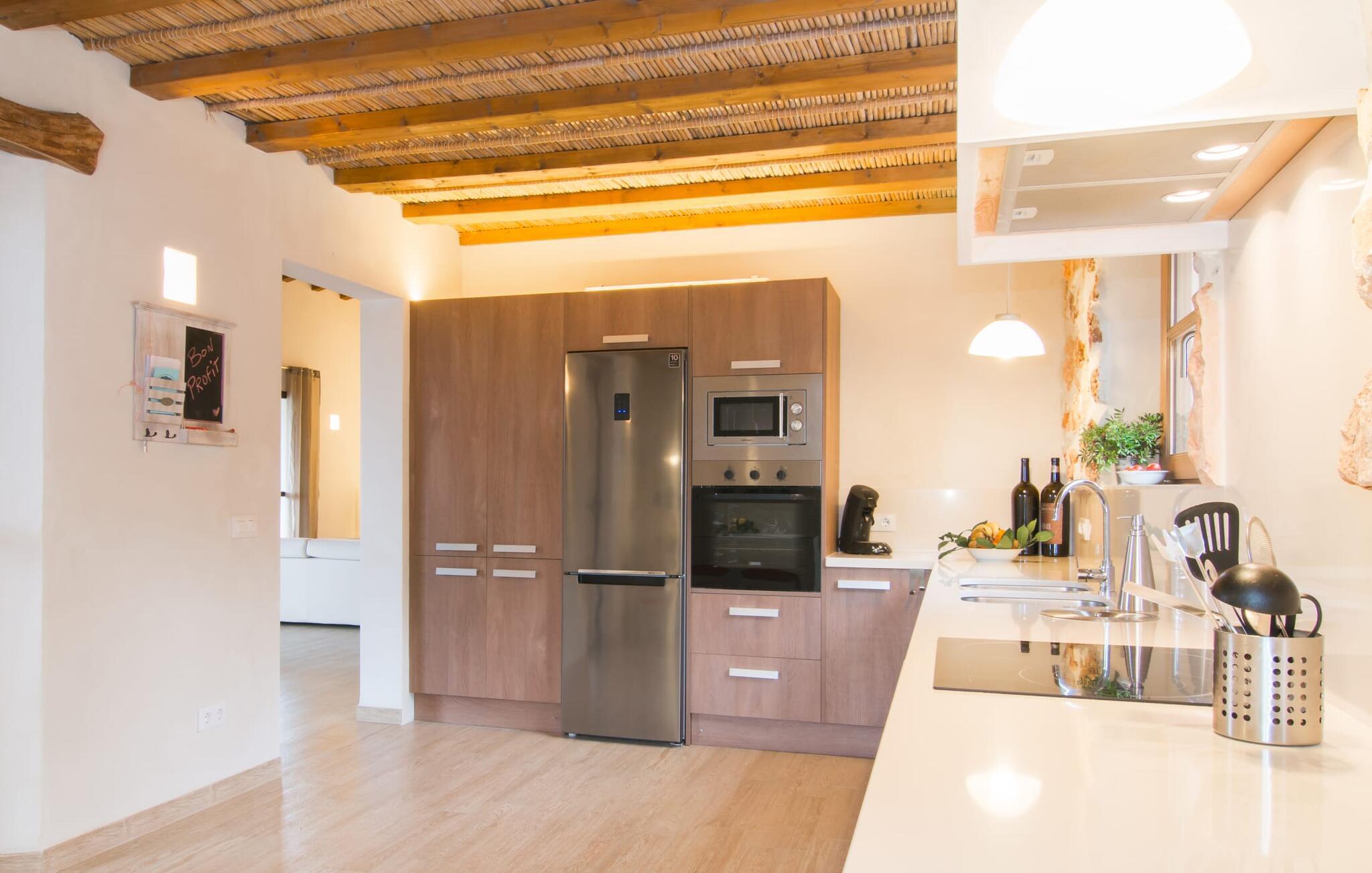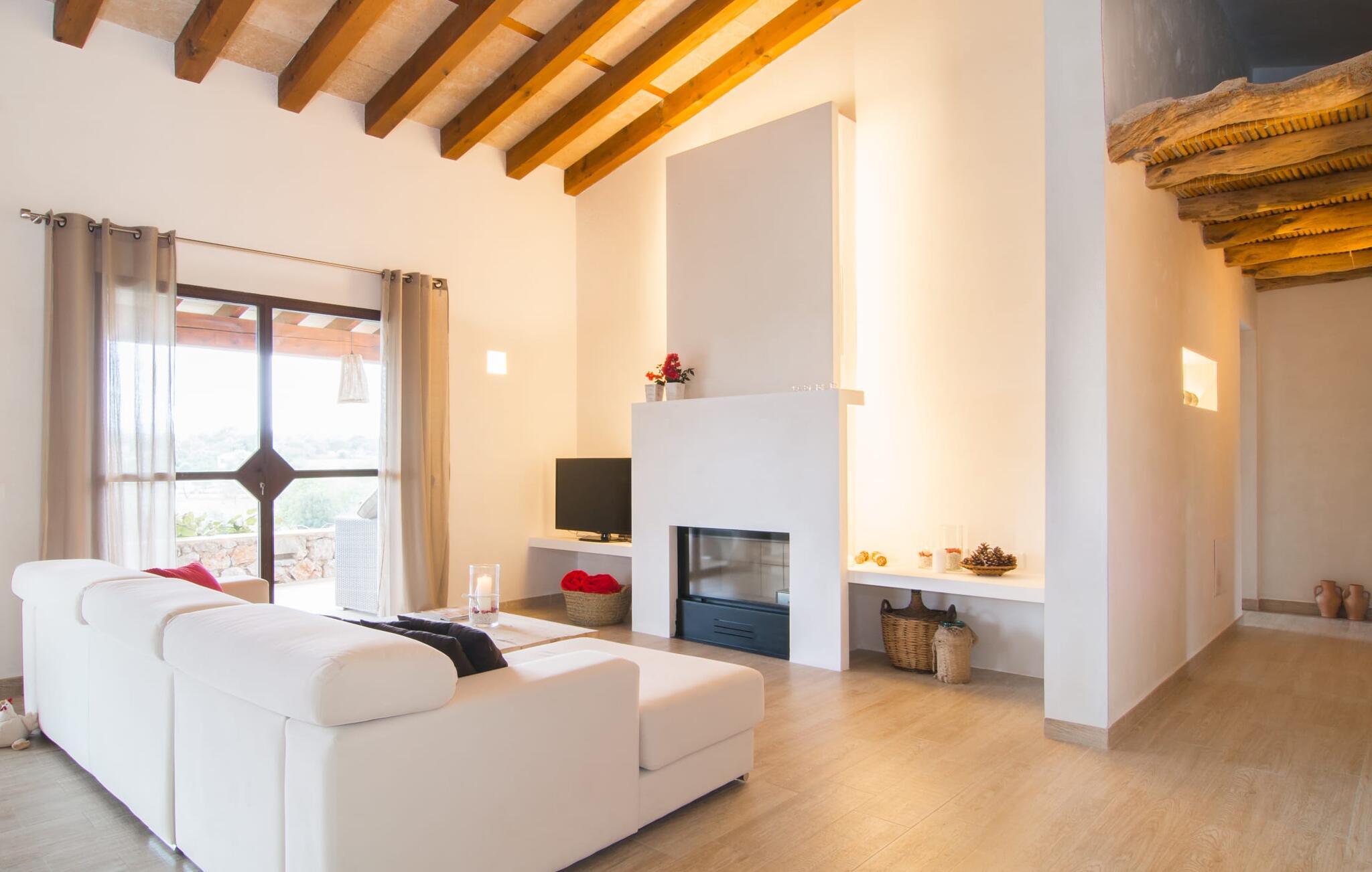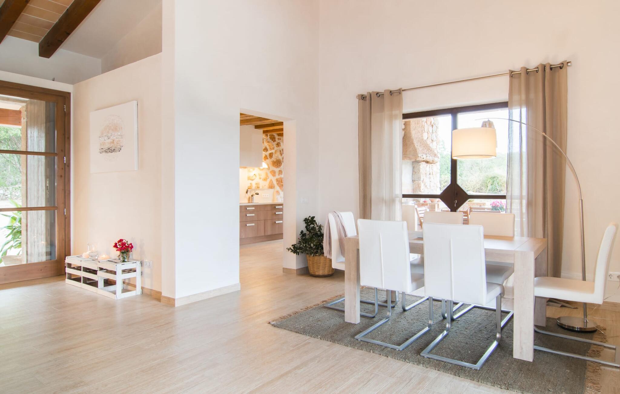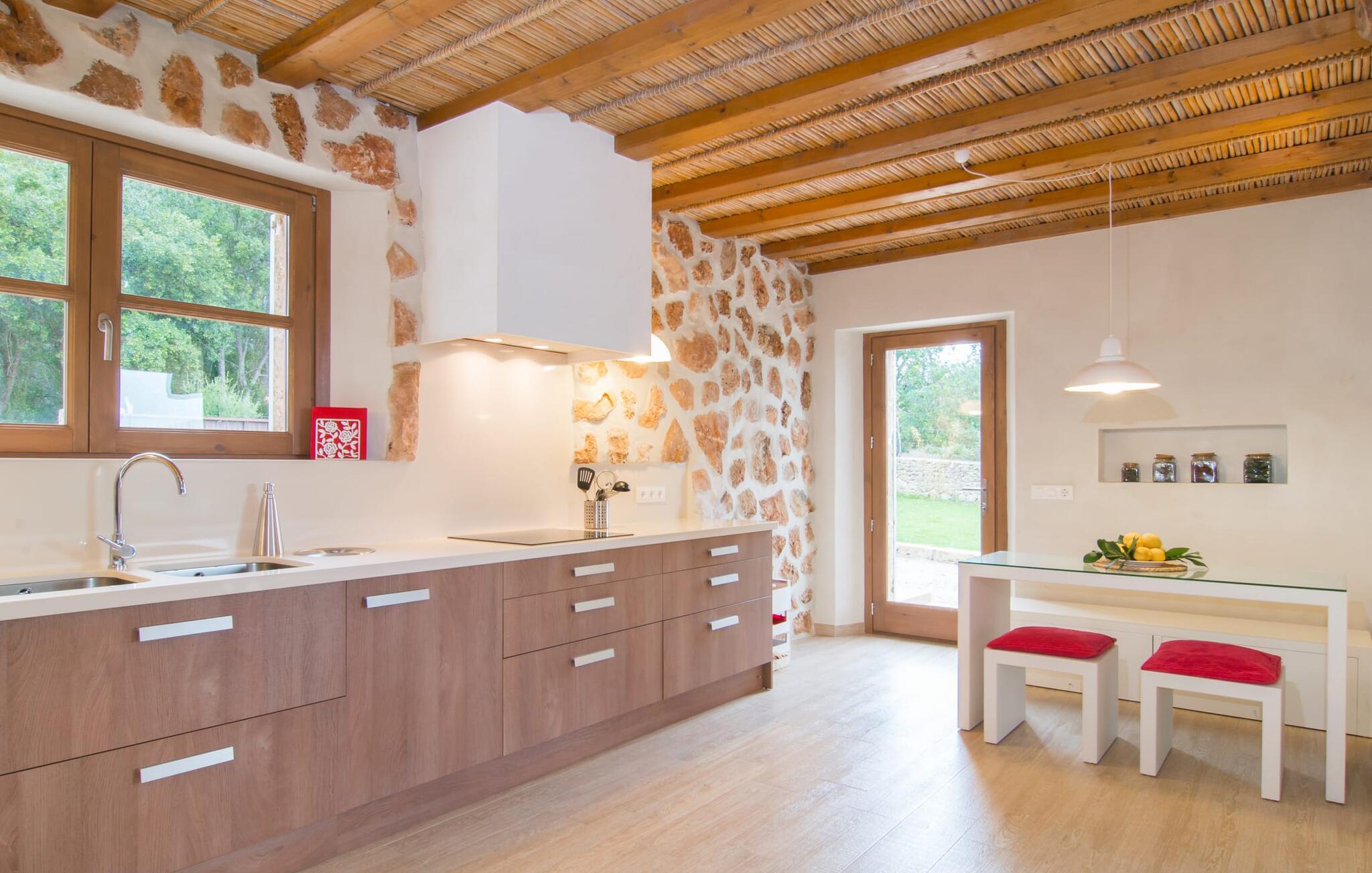 Den smukke, nye villa "Es Pins" (bygget i 2014) byder på en fantastisk blanding af typisk mallorcansk tradition og nutidig modernitet. Ejendommen er omkranset af en mur; Beboelsesbygningen udgør hjertet af denne ejendom med panoramaudsigt over de maleriske bakker omkring Artà. Enhver, der har besøgt den østlige kystregion, vil helt sikkert efterlade varige indtryk af det rustikke bakkelandskab og den fjerne udsigt over frodige grønne områder hele vejen til Tramuntana-bjergene og havet udenfor. Den solbeskinnede ejendom putter sig vidunderligt ind i landskabet - til en afvekslende ferie. Den børnevenlige bolig har et udendørs område med en stor pool (1,50 m dyb) og græske trapper. Bare slap af og forfrisk jer selv et stykke tid på trappen eller tag en dukkert i det kølige blå vand. Poolen er dels omgivet af græsplæne og dels af en muret solterrasse. Her finder I otte liggestole, hvor I kan slappe af og nyde den beroligende udsigt over den smukke natur. En trappe fører til den overdækkede terrasse ved siden af huset. Udnyt en af de mange siddemuligheder: et stort spisebord til op til otte personer og et meget afslappet loungeområde med kurvemøbler. Nyd jeres kop kaffe til en god start på dagen på den anden terrasse ved siden af huset ved det lille sofabord med to stole. Faktisk er det nemt at få en god start på dagen efter at have sovet i et af de tre markante soveværelser. De hvide værelser er indrettet i en moderne landlig stil. Det store soveværelse har eget badeværelse. Det er blevet udstyret med storslåede detaljer og understreger den moderne stemning gennem brug af naturlige materialer. Gulvene har et lyst trælook og væggene er delvist udført i upudset brudstensmurværk. Små gæster vil elske deres soveværelse med en seng fra gulv til loft. Sengen er foret med gamle træbjælker, hvilket skaber et ekstra andet niveau tilgængeligt via en trappe. Et godt sted at løbe rundt. Også her understreger naturlige brune og hvide toner den hyggelige atmosfære. Den store og lyse opholdsstue er udstyret med en hvid siddegruppe foran pejsen. Klare linjer dominerer formerne. Trælooket på gulvene i dette rum og i soveværelserne sikrer et meget lyst og stilfuldt puristisk look. Den åbne spiseplads har et bredt spisebord i træ med hvide udkragningsstole. Terrassedøre støder op til spisestuen og fører til det tidligere beskrevne udeareal på den overdækkede terrasse. Designet af denne boligareal er både lyst og venligt og byder på en smuk udsigt over det naturlige landskab. Så er der det fantastiske spisekøkken. Trækøkkenet står i kontrast til rustfrit stål. Den fritlagte stenmur over bordpladerne giver ekstra pizzazz. Det fuldt udstyrede køkken med opvaskemaskine, keramisk kogeplade, mikroovn og separat ovn i komforthøjde, kaffemaskine, elkedel og meget mere gør madlavningen til en fornøjelse. Nyd en afslappet middag ved den indbyggede grill. Den stilfulde designvilla med puristiske designpræg er også det perfekte feriehus for golfspillere. Pula og Capdepera Golf er i umiddelbar nærhed. Feriegæster, der kan lide at slappe af ved vandet, vil glæde sig over, at mange naturlige sandstrande kan nås hurtigt og nemt med lejebil. Om aftenen kan I sove med stil og måske endda tage på klubklubber i Cala Ratjada. Uanset hvordan I ønsker at tilbringe jeres ferie, garanterer den trendy villa "Es Pins" jer en vidunderlig tid. Det er vi hos Fincallorca helt sikre på og ønsker jer et afslappende ophold og store eventyr. Den stilfulde nye villa "Es Pins" (bygget i 2014) kombinerer dygtigt modernitet og tradition. Den storslåede, solbeskinnede ejendom ligger i bakkerne omkring Artà. Den smukke by Artà kan nemt nås til shopping eller slentreture. Der er også nogle autentiske barer og restauranter med gode internationale retter. De smukke sandstrande i Cala Torta, Sa Marjal og Cala Bona er også kun en kort køretur væk med lejebil.