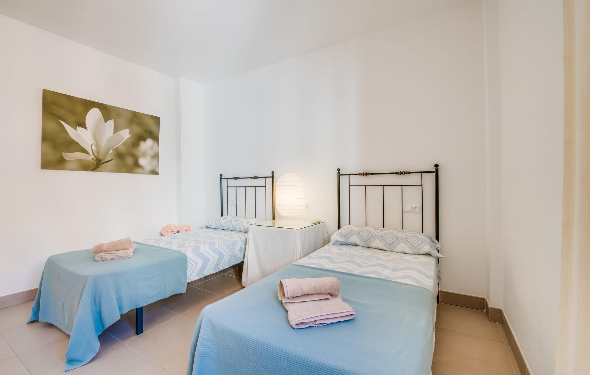 "Es Port Penthouse" tilbyder en luksuriøs ferieoplevelse på Mallorca og har en solbeskinnet tagterrasse med en fantastisk havudsigt. Designet til komfort og bekvemmelighed, har dette stilfulde feriehus et rummeligt terrasse, der er ideelt til spisning og afslapning, komplet med liggestole og en bærbar gasgrill til aftensammenkomster. Interiøret har gulv-til-loft-vinduer, der problemfrit forbinder boligarealet med omverdenen, hvilket forbedrer den overordnede stemning. Den åbne stue og spisestue har et komfortabelt sofahjørne, et fladskærms-tv og et spisebord, mens det fuldt udstyrede køkken opfylder alle kulinariske ønsker. Møblerne med lyse farver og nøje udvalgte accenter skaber en indbydende atmosfære. Til afslappende nætter har penthouse-lejligheden hyggelige soveværelser og to badeværelser, hvoraf det ene har eget bad. Derudover har gæster nem adgang til nærliggende butikker og strande, hvilket gør det til et perfekt tilflugtssted for en uforglemmelig ferie. I bor lige ved siden af den maleriske havn i denne ferielejlighed, som virkelig er uovertruffen, når det kommer til udsigt! Det ligger direkte på en lille vej i Portopetro-bugten, kun omkring 1 km syd for Cala d'Or, en af Mallorcas mest populære badebyer. Fra jeres ferielejlighed kan I nå restauranter, butikker og caféer til fods. Portocolom og Santanyí er fremragende til udflugter, ligesom de smukke strande i nærheden. Aircondition i denne ejendom er inkluderet i prisen, med forbehold for rimeligt forbrug. Ved overskridelse skal I betale kontant på stedet.