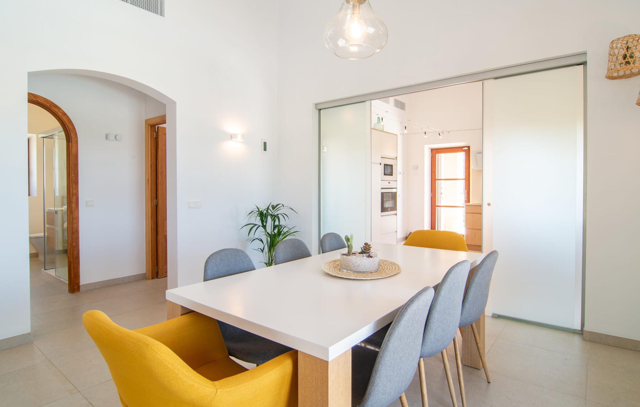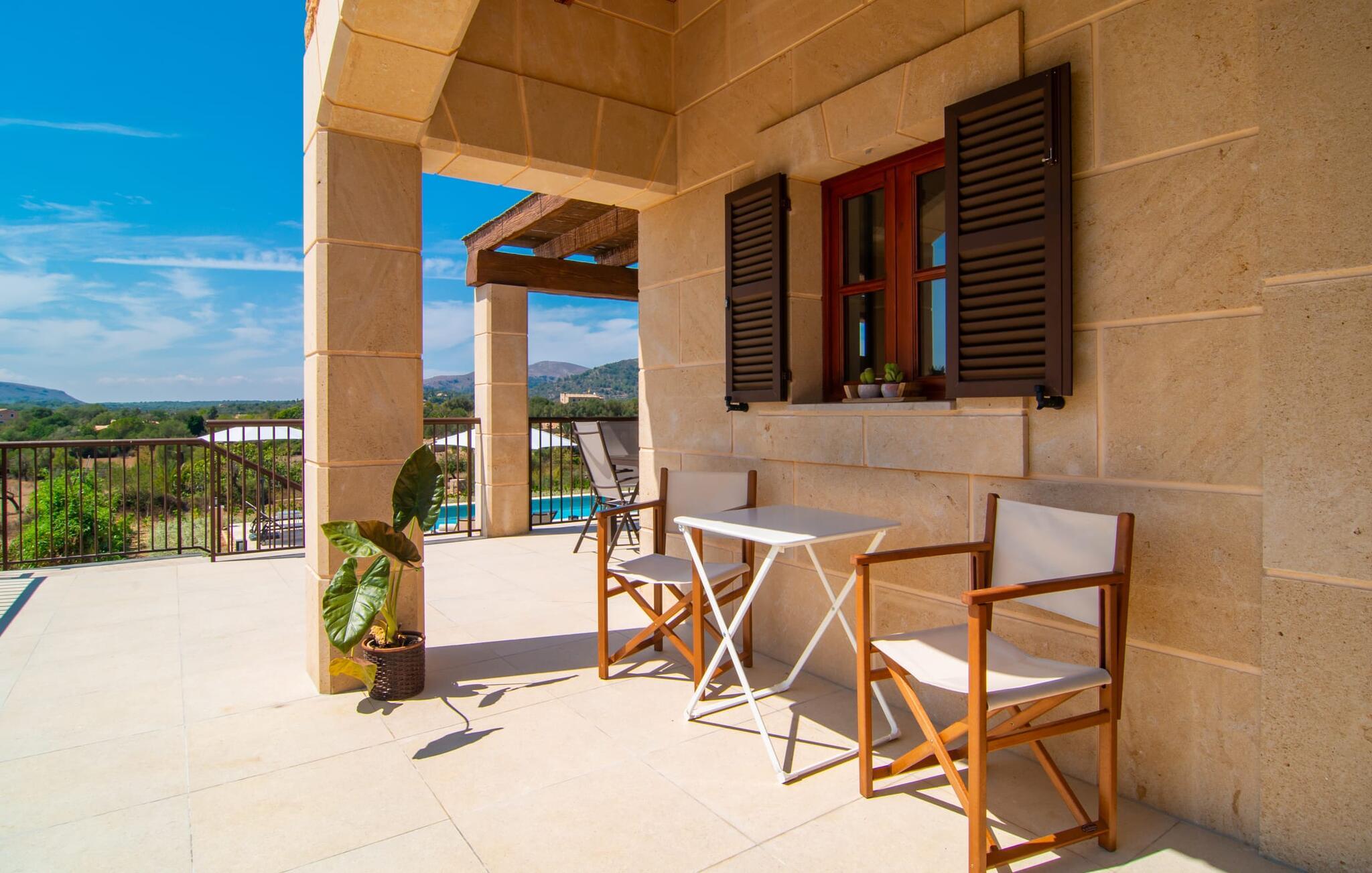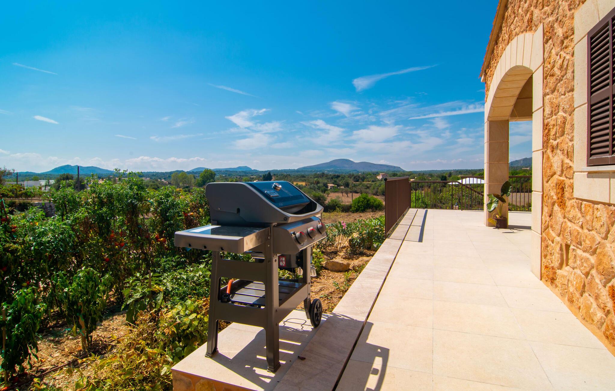 Villaen "Es Pou des Rafal" i den østlige del af Mallorca byder på vidunderlige kontraster: Stueetagen, let hævet naturstensvilla ser rustik ud udefra, men er meget chik og moderne og udstyret med alle de bekvemmeligheder, I kan ønske jer på ferien . Det imponerer med sin smukke landlige beliggenhed uden umiddelbare naboer på en kæmpe ejendom, der inviterer jer til at udforske meget. Lige bag huset, som har en stor, overdækket terrasse med spisebord med tilhørende stole og behagelige udendørs siddepladser, venter poolen på jer og byder på forfriskende kølighed. Efter jeres svømmetur kan I nyde en velfortjent siesta med en lækker drink eller en god bog på en af de komfortable liggestole, hvorfra I kan nyde en fantastisk udsigt over det omkringliggende landskab. Interiøret i jeres sommerhus er muntert og moderne: enkle møbler af høj kvalitet, lyse farver, stilfulde lamper samt trævinduer og dørkarme, der bevarer villaens landlige karakter - en overbevisende kombination! Alle værelser er i ét plan - her finder I ingen trapper. Opholds- og spiseafdelingen strækker sig over et enkelt, stort værelse: Den komfortable sofa med masser af hynder indbyder til hyggelige aftener med at se tv, mens I og jeres medrejsende kan nyde kulinariske delikatesser med et glas eller to vin i den elegante spisning. bord og polstrede designerstole. Det stilfulde køkken er et praktisk sted at tilberede måltider - I behøver ikke at bøje jer for at nå ovnen eller mikrobølgeovnen. Alle tre soveværelser lover søde drømme, alle hyggeligt diskret indrettet, hver med et stort skab, TV og gulv til loft vinduer, der giver en vidunderlig udsigt over naturen omkring huset. Boligkomforten suppleres af to moderne badeværelser, hvoraf det ene er en-suite. Her bor I idyllisk midt ude på landet - så I skal ikke gå glip af lange gåture eller en cykeltur! Dette hjørne af øen imponerer med sin frodige, typiske middelhavsvegetation, oliven-, mandel- og figentræslundene og de enorme gamle rosmarinbuske i siden af vejen. Foretrækker I at køre ind til byen, hvad enten det er til daglige indkøb, for at gå på restaurant eller bare for en hurtig indkøbstur, kan I køre de 1,5 km på landevejen, som afhængig af trafikken kan være hørbar vind ind i smukke by Arta. Smalle gader, masser af interessant arkitektur, kunst og kultur – Artà har bevaret sine traditioner. To forskellige markeder finder sted her hver tirsdag. Men der er heller ikke langt til stranden "Es Pou des Rafal": den fine sandstrand Canyamel, som er omgivet af natur, men som stadig byder på rigtig god infrastruktur, kan nås efter 11,5 km kørsel. Landliv med forbindelse til byen: Dette er den uovertrufne kombination, som naturstensvillaen i stueetagen "Es Pou de Rafal", kun 1,5 km fra Artàs porte, tilbyder. Huset ligger let forhøjet på en kæmpe grund i den østlige del af Mallorca. Der er en pool foran den overdækkede terrasse, som byder på en vidunderlig udsigt over det omkringliggende landskab, men I kan også bruge jeres tid på liggestolene omkring den. Canyamel Strand ligger kun 11,5 km derfra.