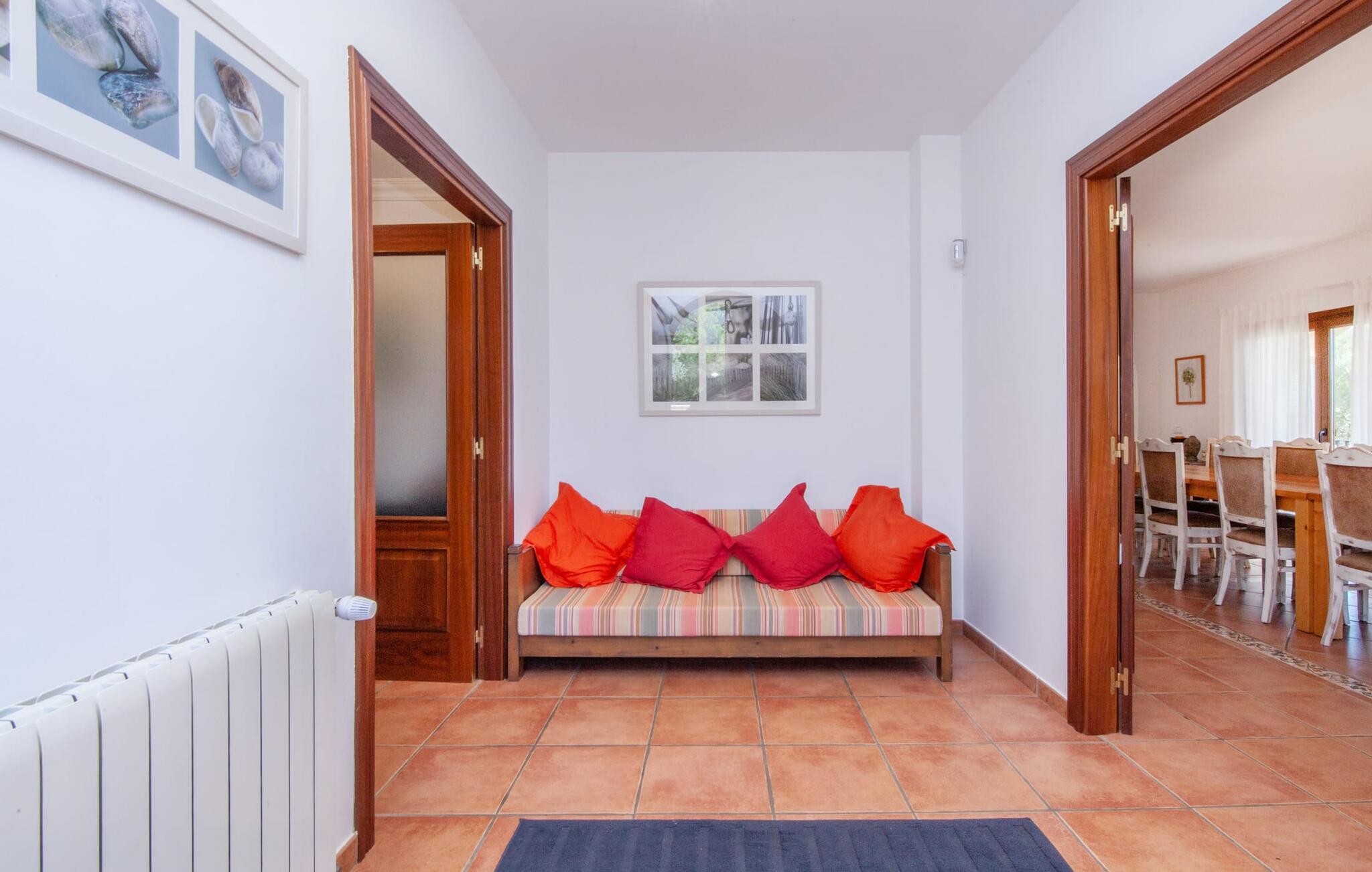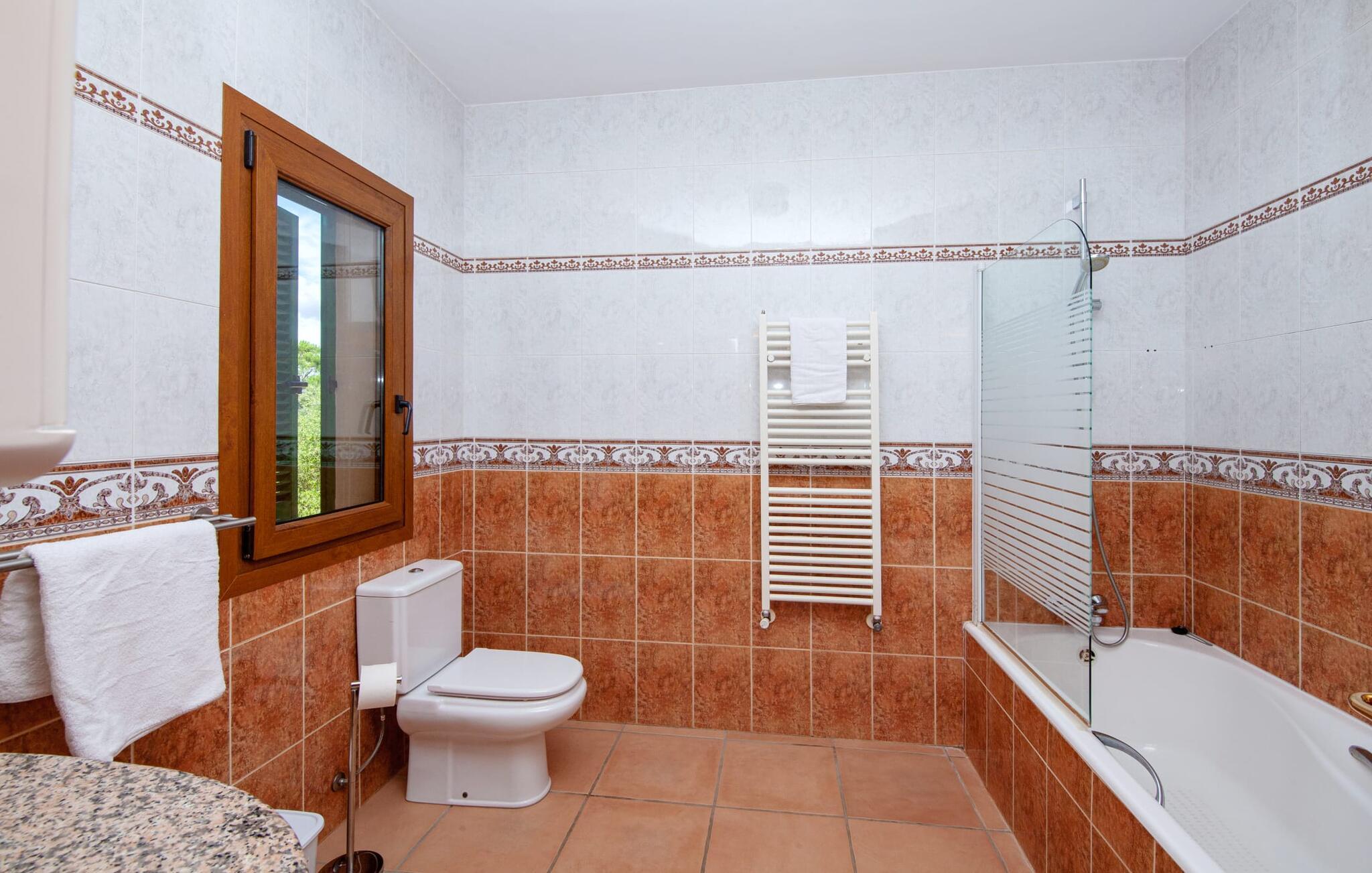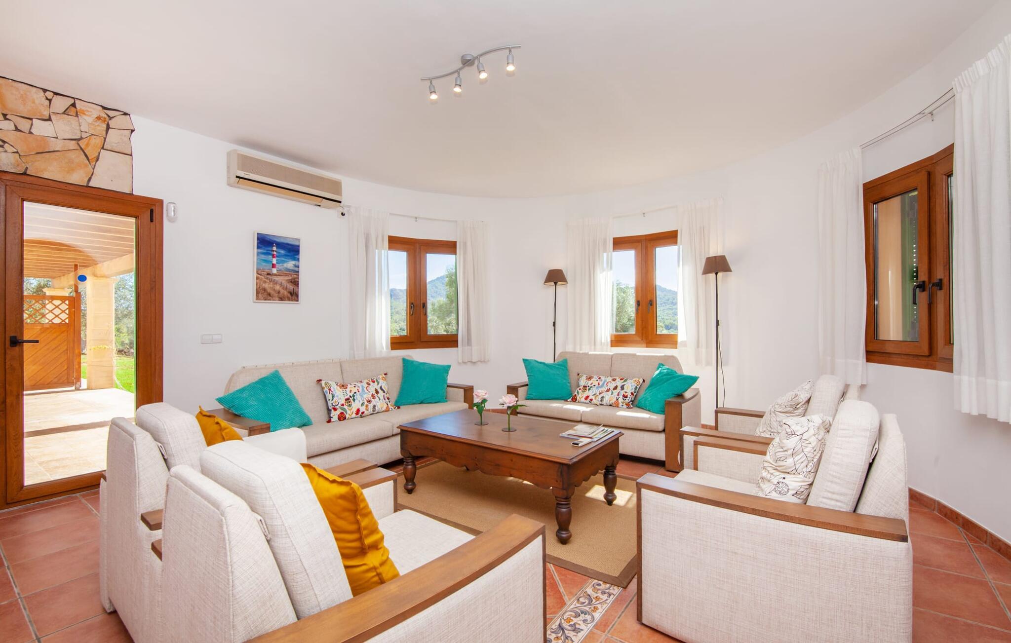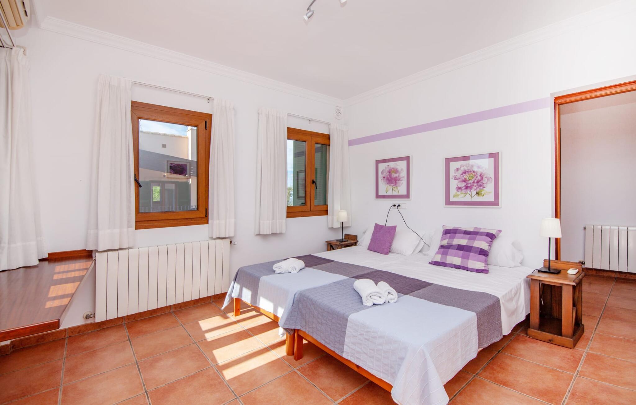 Oplev en uforglemmelig bondegårdsferie på "Es Puig d'es Call" på Mallorca, perfekt for familie og venner. Dette rummelige bondehus kan rumme op til atten gæster og ligger på en smukt vedligeholdt bjergskråning nær Felanitx. Udendørsområdet har store græsplæner til børn, charmerende brolagte terrasser og balkoner med en fantastisk udsigt over landskabet. Nyd en stor pool omgivet af komfortable liggestole og en fantastisk rustik grillplads, ideel til at nyde Mallorcas solrige klima. Parkeringspladser er tilgængelige ved huset i skyggen af træer. Stuehuset byder på masser af plads til privatlivets fred og masser af naturligt lys kommer gennem adskillige vinduer. Interiøret udstråler en varm, sommerlig atmosfære, forstærket af lyse farver og nøje udvalgt indretning, samt rustikke mallorcanske elementer som en muret pejs og en naturstensvæg. Fællesarealer, herunder en hyggelig spisestue, stue og veludstyret køkken, er designet til komfort. Ejendommen har ni stilfulde soveværelser med dobbeltsenge fordelt på to etager, suppleret med ni moderne badeværelser, hvoraf syv er en suite, herunder et med jacuzzi for ultimativ afslapning. Det store, velholdte bondehus "Es Puig d'es Call" ligger på en rummelig, grøn grund på den sydlige del af øen. På trods af den landlige beliggenhed kan den næste by med butikker og restauranter hurtigt nås: Felanitx ligger kun 2,5 km væk med lejebil på den nærliggende landevej. Smukke strande som Cala Gran eller Cala d'Or ligger kun omkring 14 km væk.