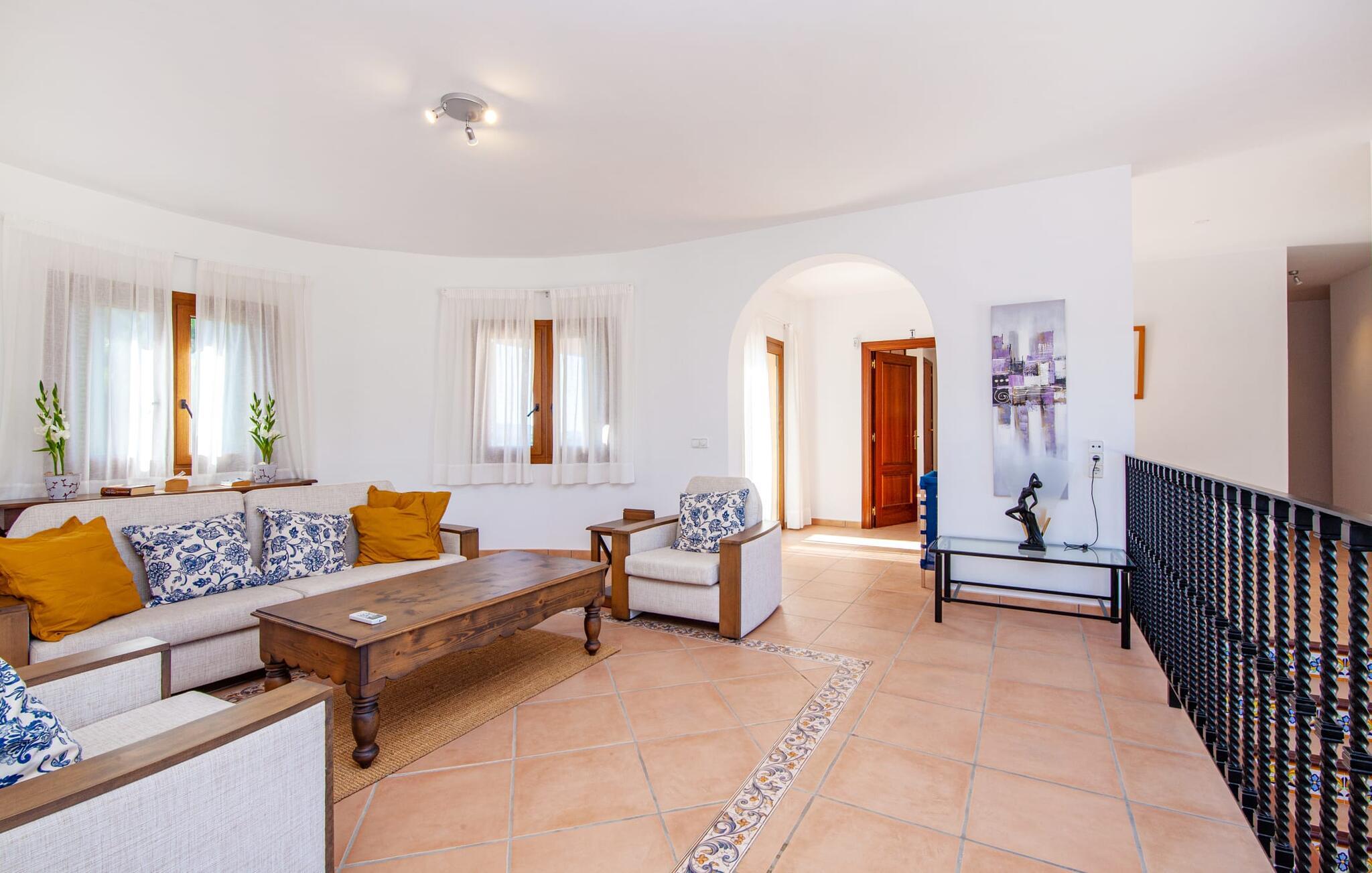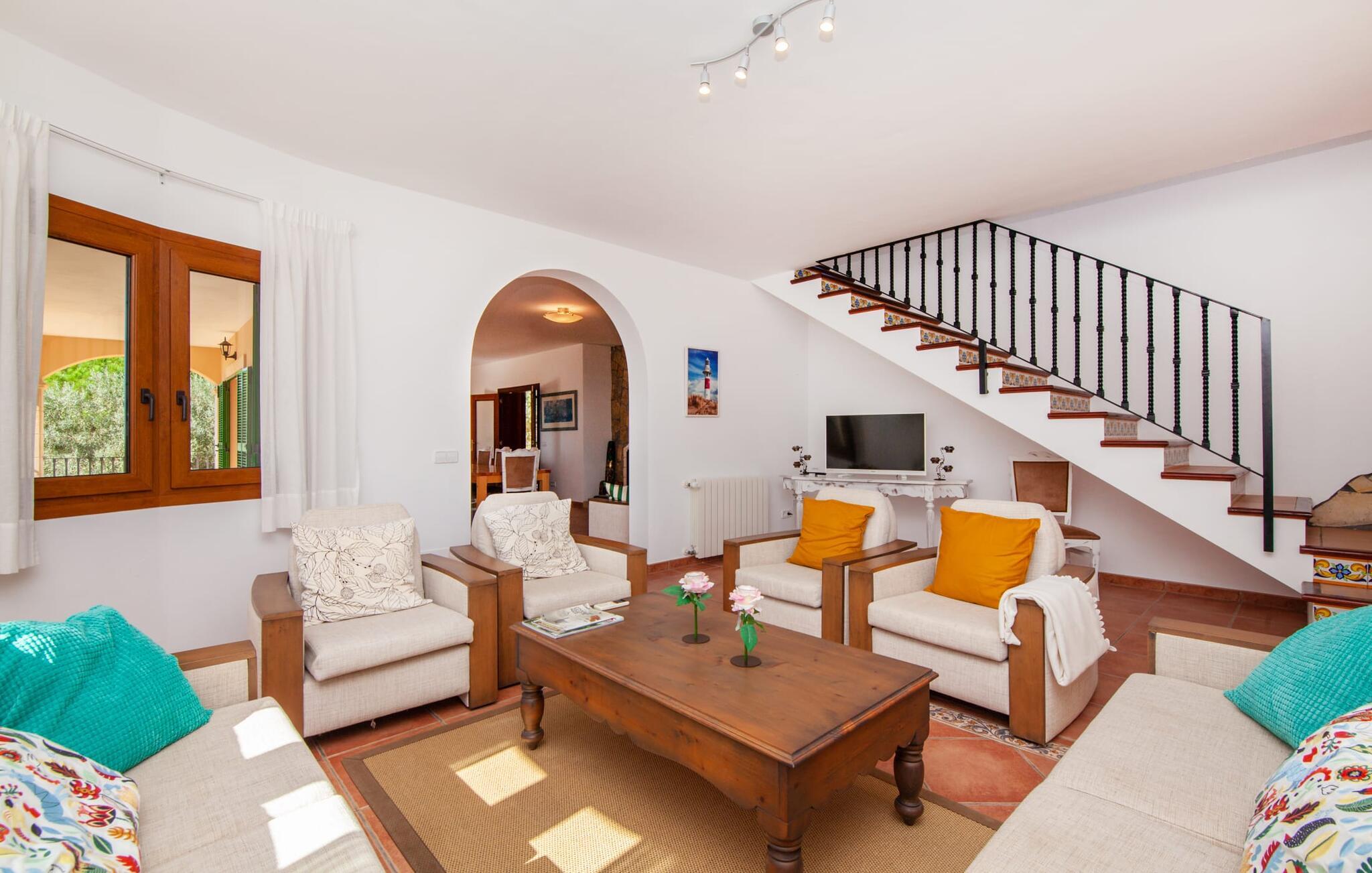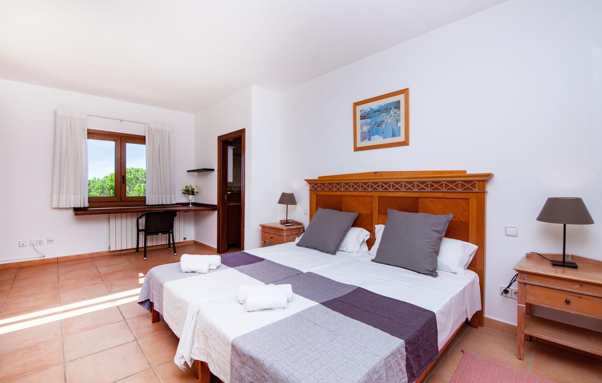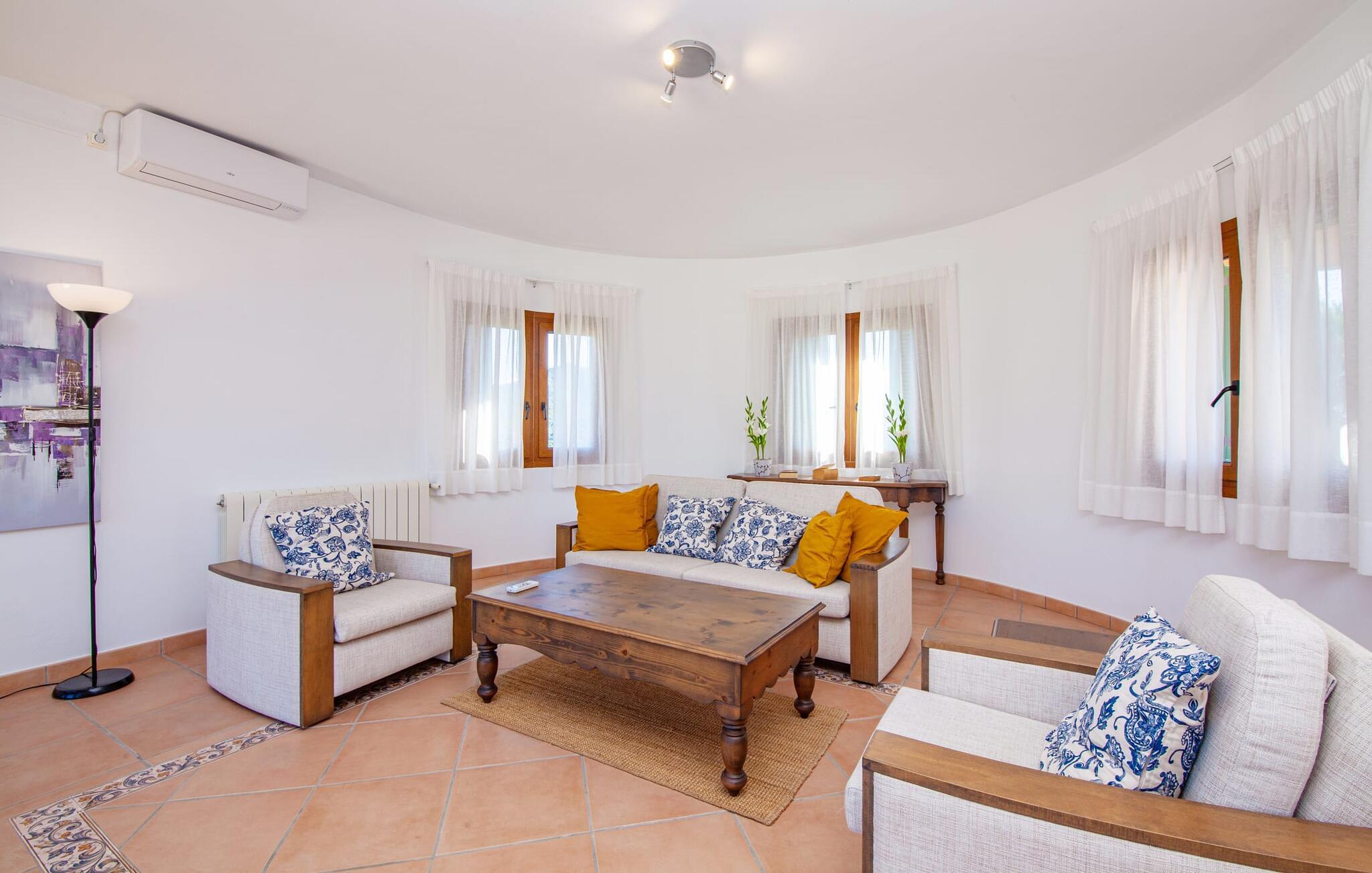 Oplev en uforglemmelig bondegårdsferie på "Es Puig d'es Call" på Mallorca, perfekt for familie og venner. Dette rummelige bondehus kan rumme op til atten gæster og ligger på en smukt vedligeholdt bjergskråning nær Felanitx. Udendørsområdet har store græsplæner til børn, charmerende brolagte terrasser og balkoner med en fantastisk udsigt over landskabet. Nyd en stor pool omgivet af komfortable liggestole og en fantastisk rustik grillplads, ideel til at nyde Mallorcas solrige klima. Parkeringspladser er tilgængelige ved huset i skyggen af træer. Stuehuset byder på masser af plads til privatlivets fred og masser af naturligt lys kommer gennem adskillige vinduer. Interiøret udstråler en varm, sommerlig atmosfære, forstærket af lyse farver og nøje udvalgt indretning, samt rustikke mallorcanske elementer som en muret pejs og en naturstensvæg. Fællesarealer, herunder en hyggelig spisestue, stue og veludstyret køkken, er designet til komfort. Ejendommen har ni stilfulde soveværelser med dobbeltsenge fordelt på to etager, suppleret med ni moderne badeværelser, hvoraf syv er en suite, herunder et med jacuzzi for ultimativ afslapning. Det store, velholdte bondehus "Es Puig d'es Call" ligger på en rummelig, grøn grund på den sydlige del af øen. På trods af den landlige beliggenhed kan den næste by med butikker og restauranter hurtigt nås: Felanitx ligger kun 2,5 km væk med lejebil på den nærliggende landevej. Smukke strande som Cala Gran eller Cala d'Or ligger kun omkring 14 km væk.